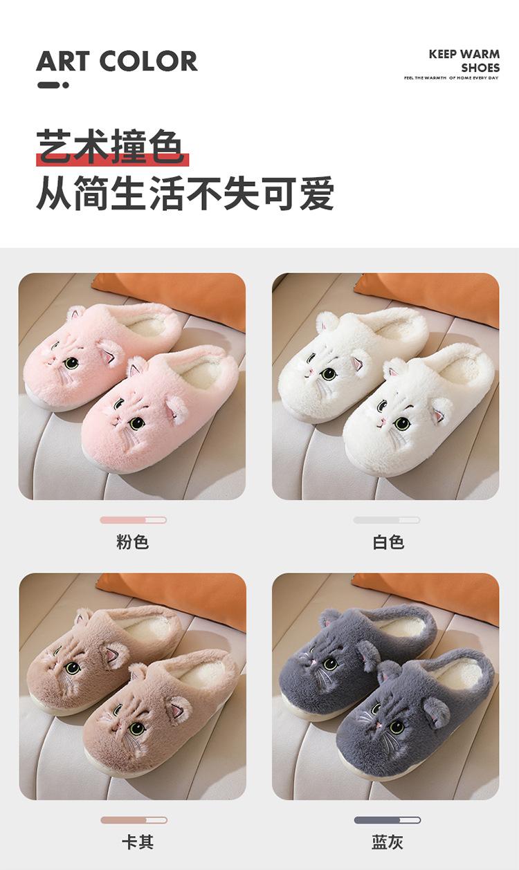 Pantuflas de algodón nuevas de otoño e invierno para hombre y mujer, pantuflas de felpa para interior de gatito de dibujos animados para pareja, cálidas para el hogar