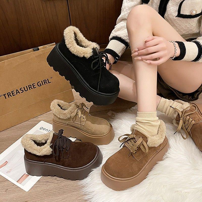 Zapatos de Mujer con Forro Polar Zapatos Nuevos Vintage de Suela Gruesa Mocasines con Aumento Zapatos de Algodón para Nieve Invierno 2024 Zapatos Birkennedy de Suela Gruesa para Mujer
