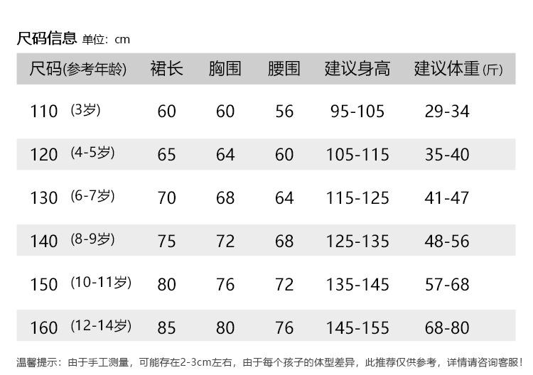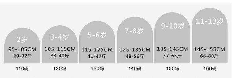 110cm, 120cm, 130cm, 140cm, 150cm, 160cm