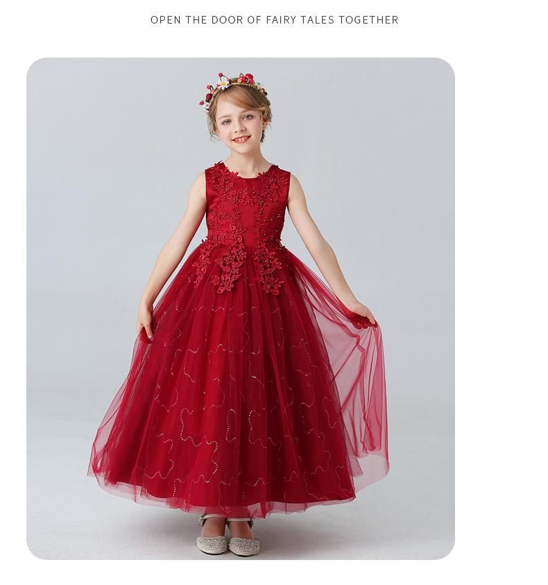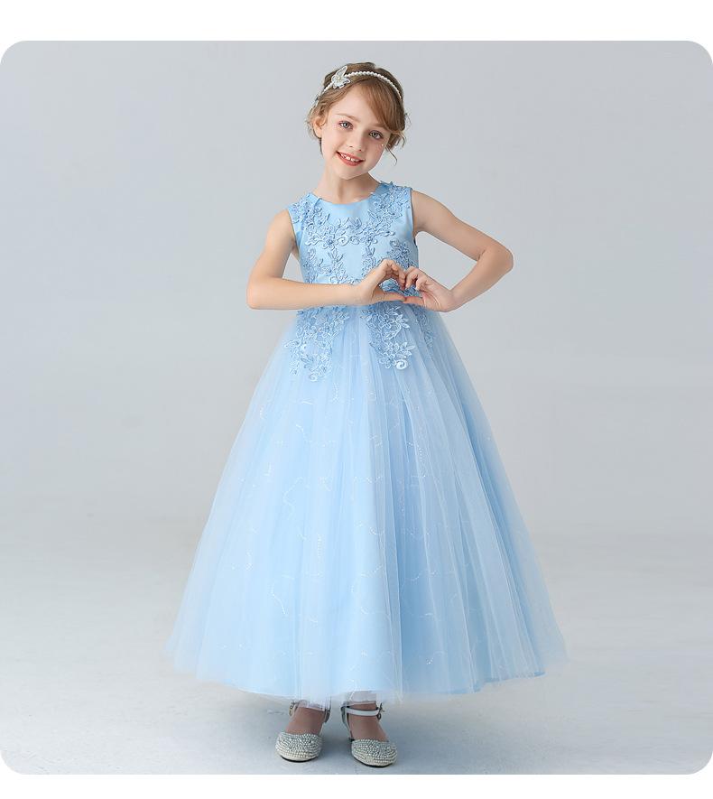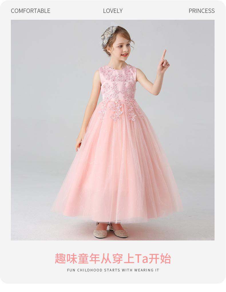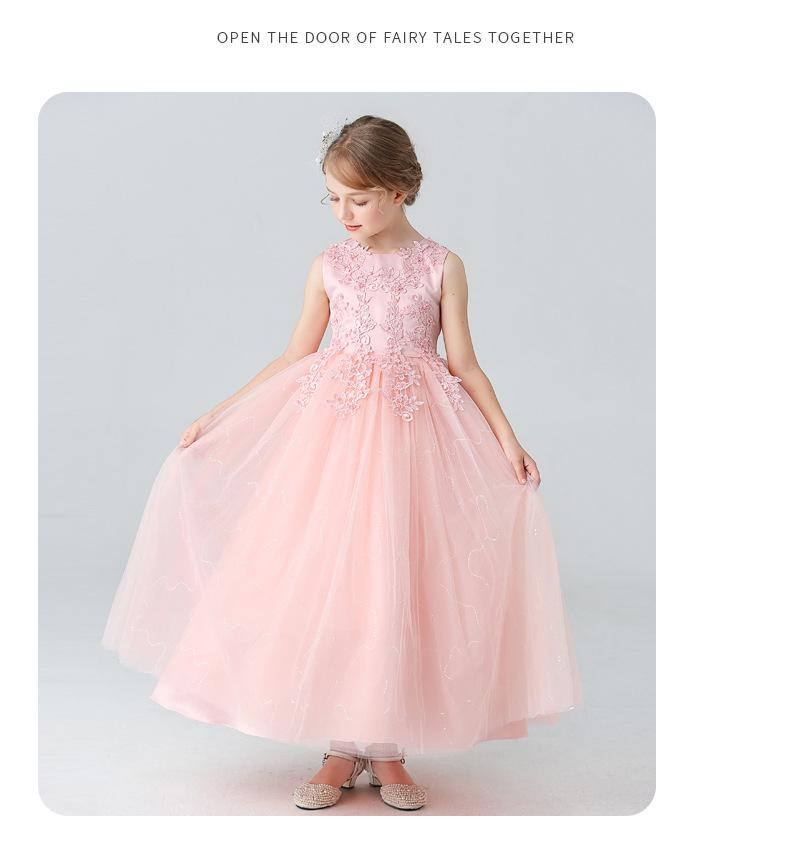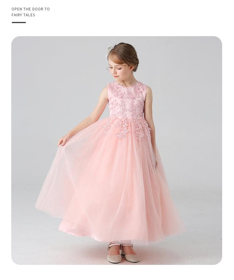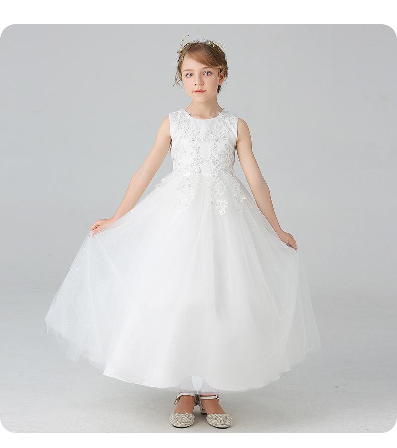 Vestido de princesa infantil transfronterizo, vestido de alta gama, vestido de novia hinchado sin mangas para niñas europeas y americanas, vestido de actuación de piano