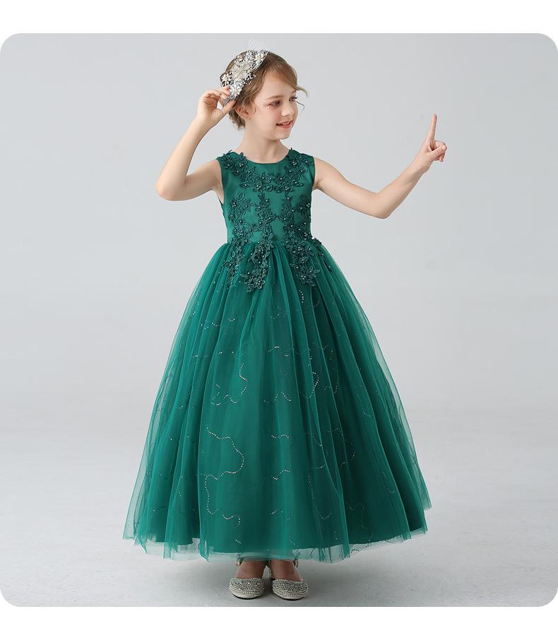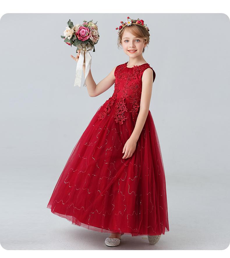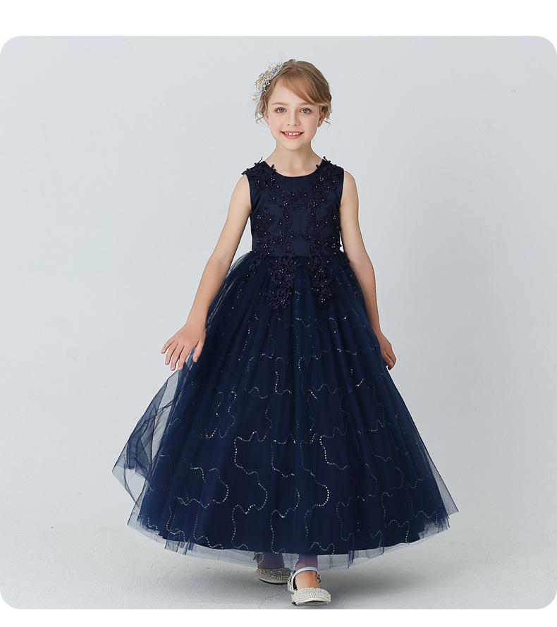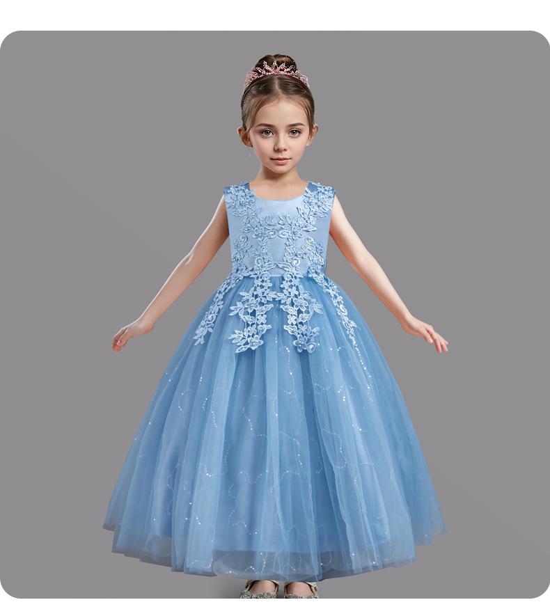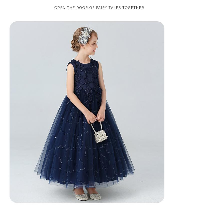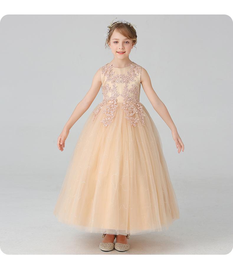 Vestido de princesa infantil transfronterizo, vestido de alta gama, vestido de novia hinchado sin mangas para niñas europeas y americanas, vestido de actuación de piano