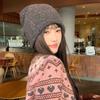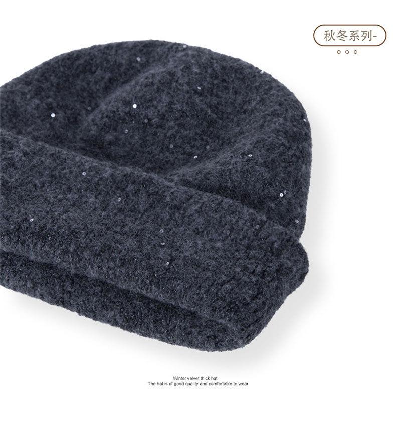 Otoño e invierno cálido para la cara sombrero de pelo corto moderno brillante flash sombrero de lana de punto sombrero envolvente para cabeza grande para niños marea