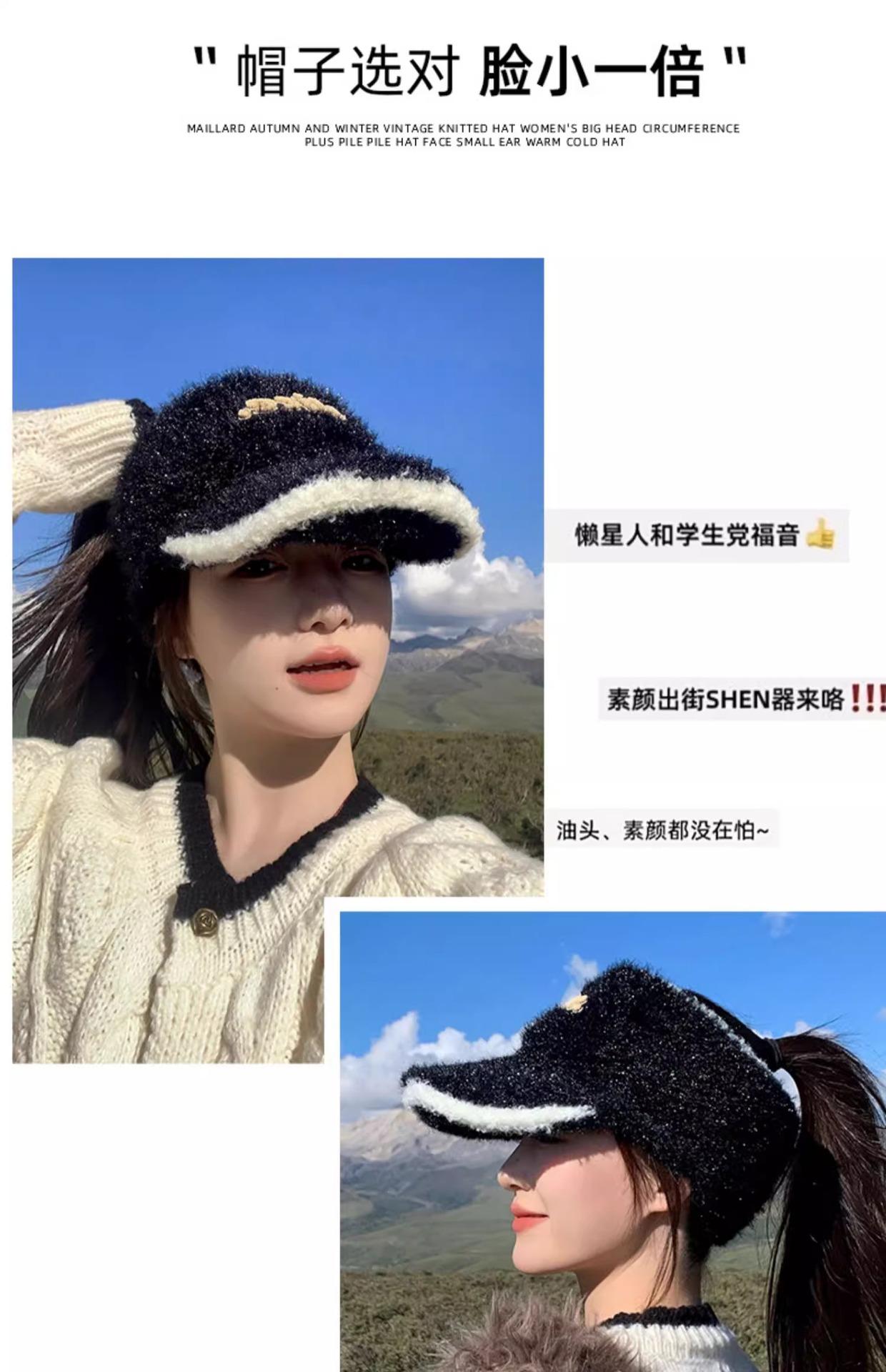 Gorro Pájaro Carpintero para Mujer Invierno 2024 Gorro de Punto Grueso de Felpa Casual Combinable Protección para las Orejas Cálido Gorro Vacío