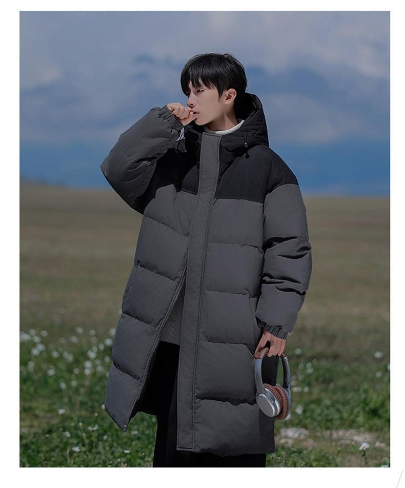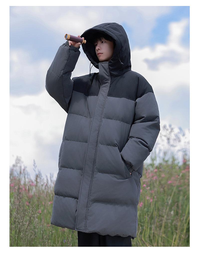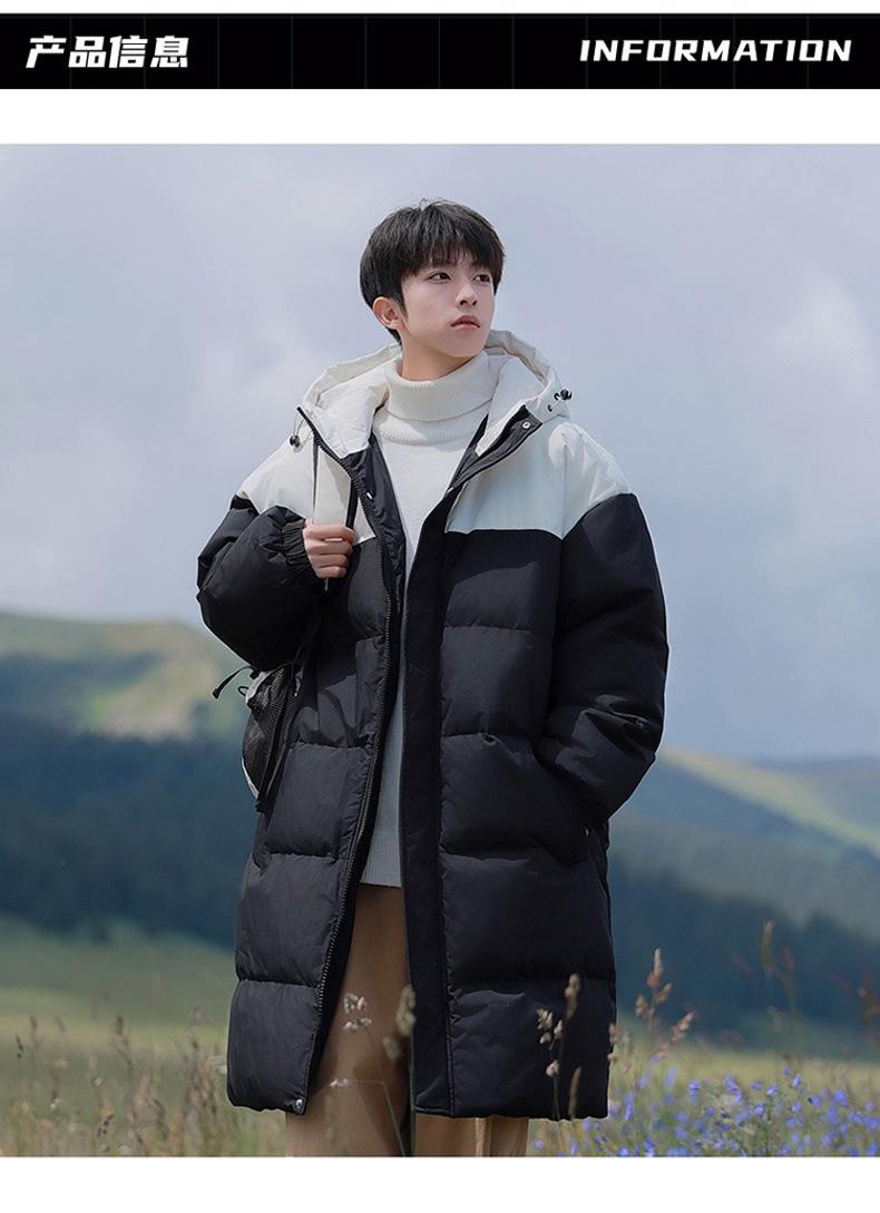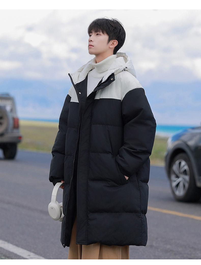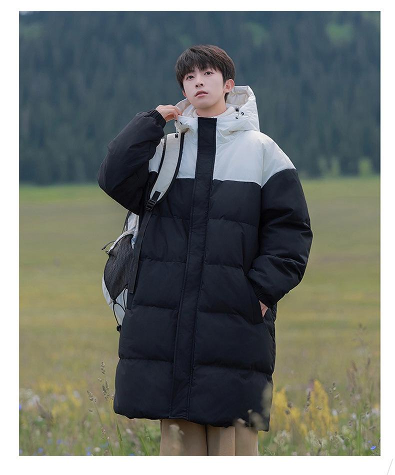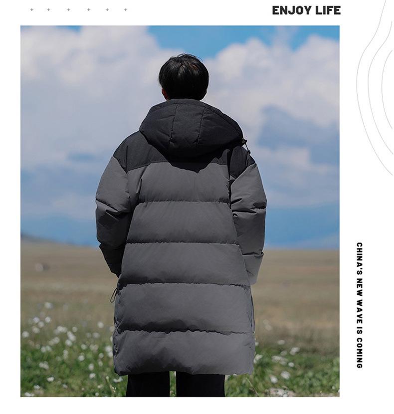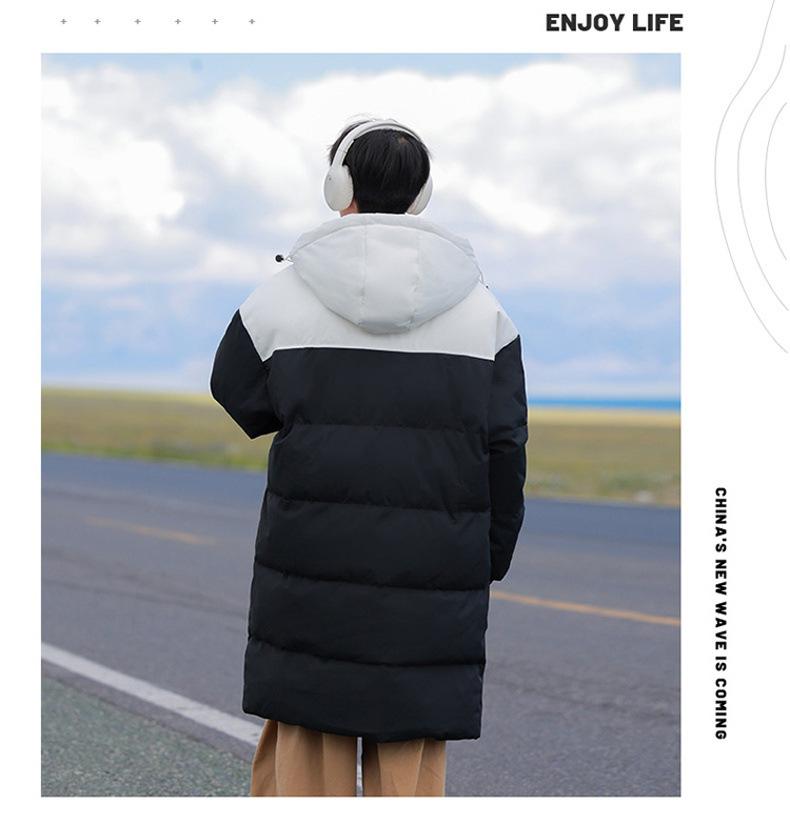 Abrigo Grueso Invierno Largo Medio Engrosado Cálido Chaqueta de Algodón Moda Hombre Holgado Combinable con Todo Capucha Combinación de Colores Chaqueta Acolchada de Algodón