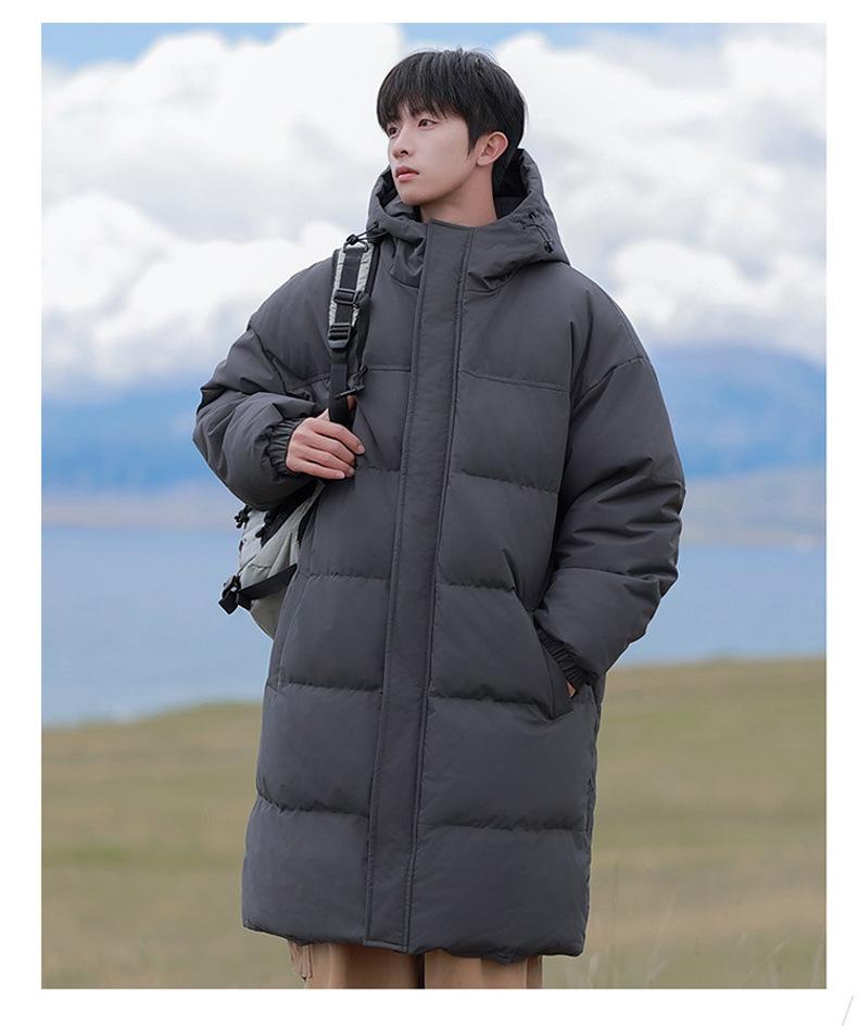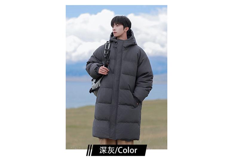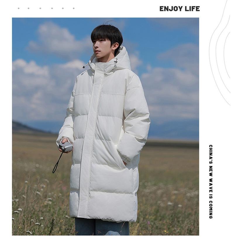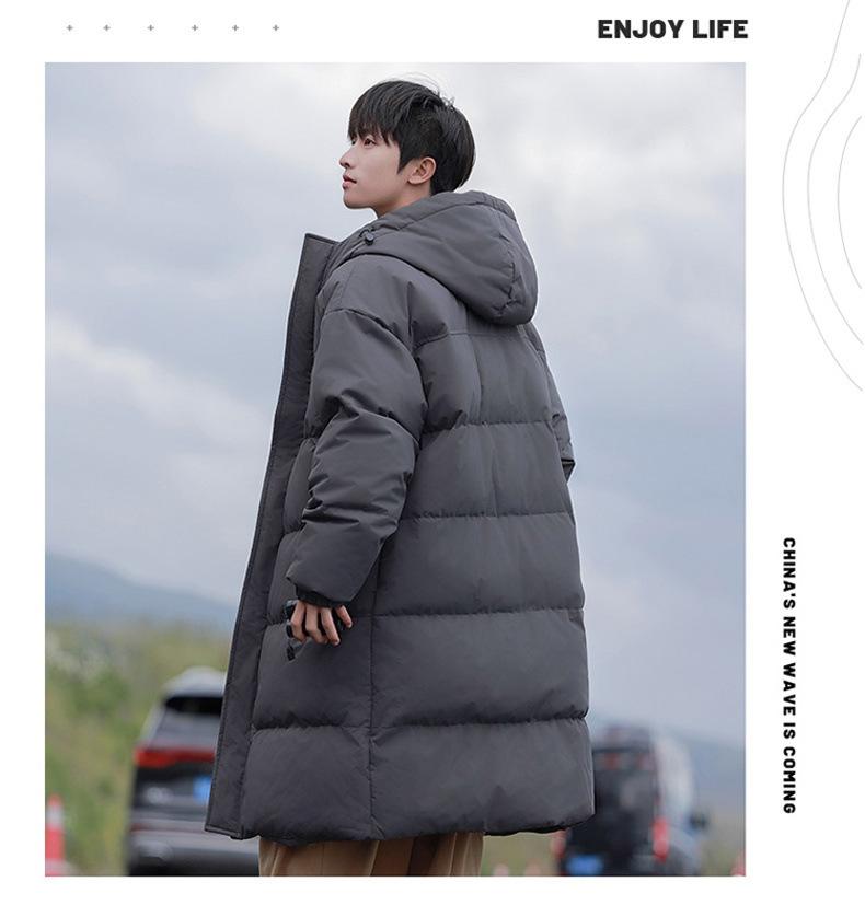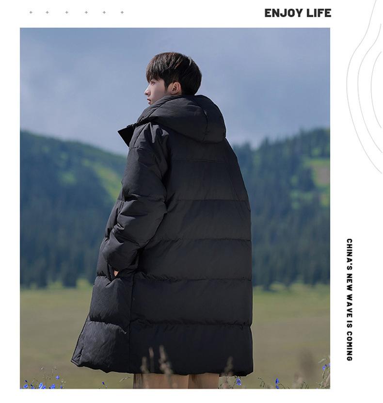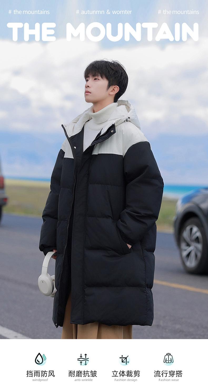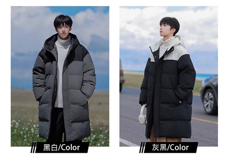 Abrigo Grueso Invierno Largo Medio Engrosado Cálido Chaqueta de Algodón Moda Hombre Holgado Combinable con Todo Capucha Combinación de Colores Chaqueta Acolchada de Algodón