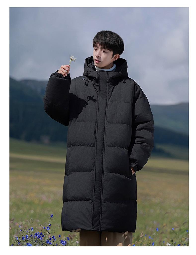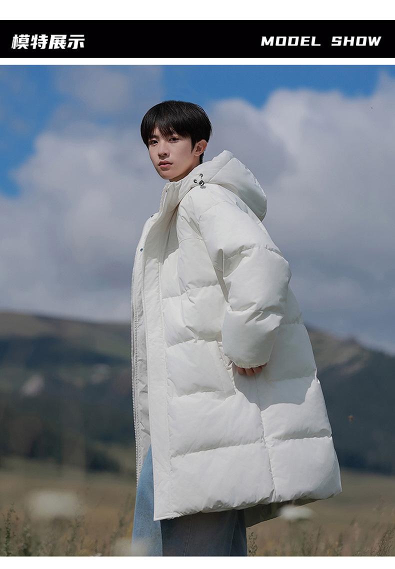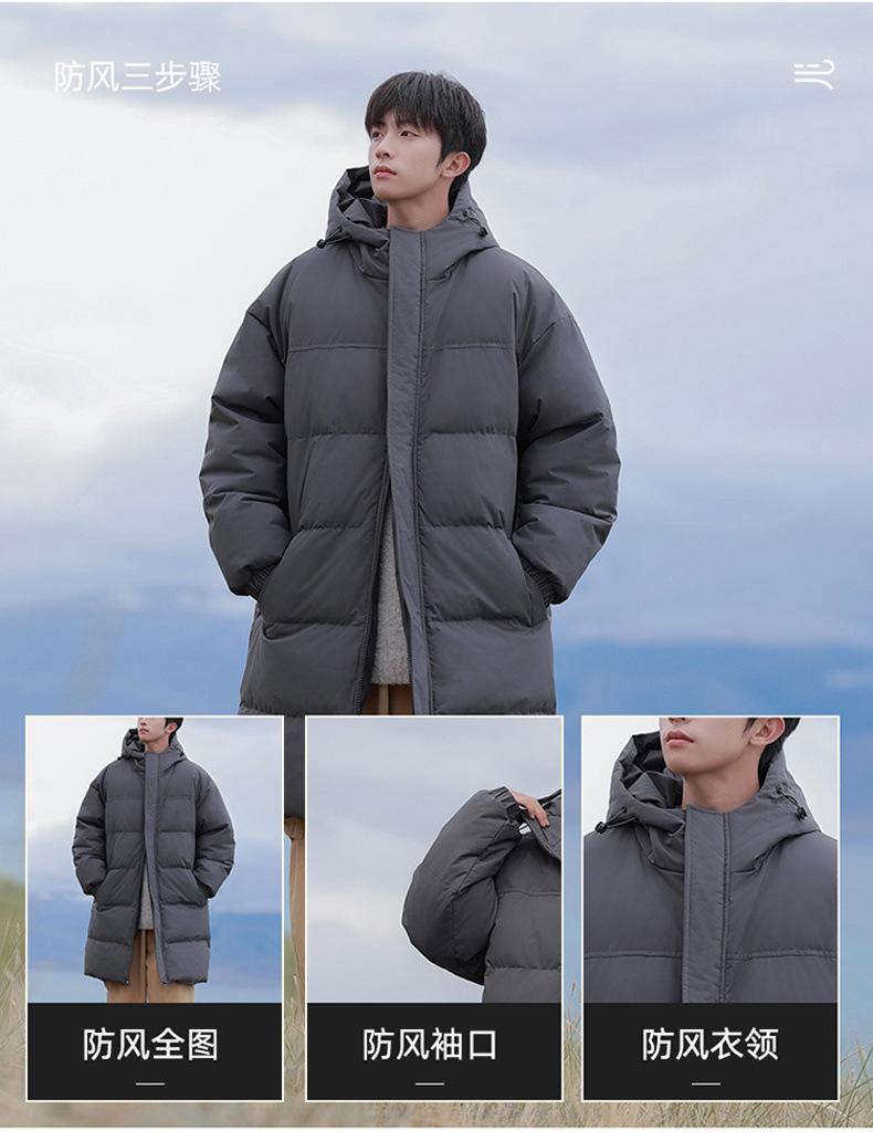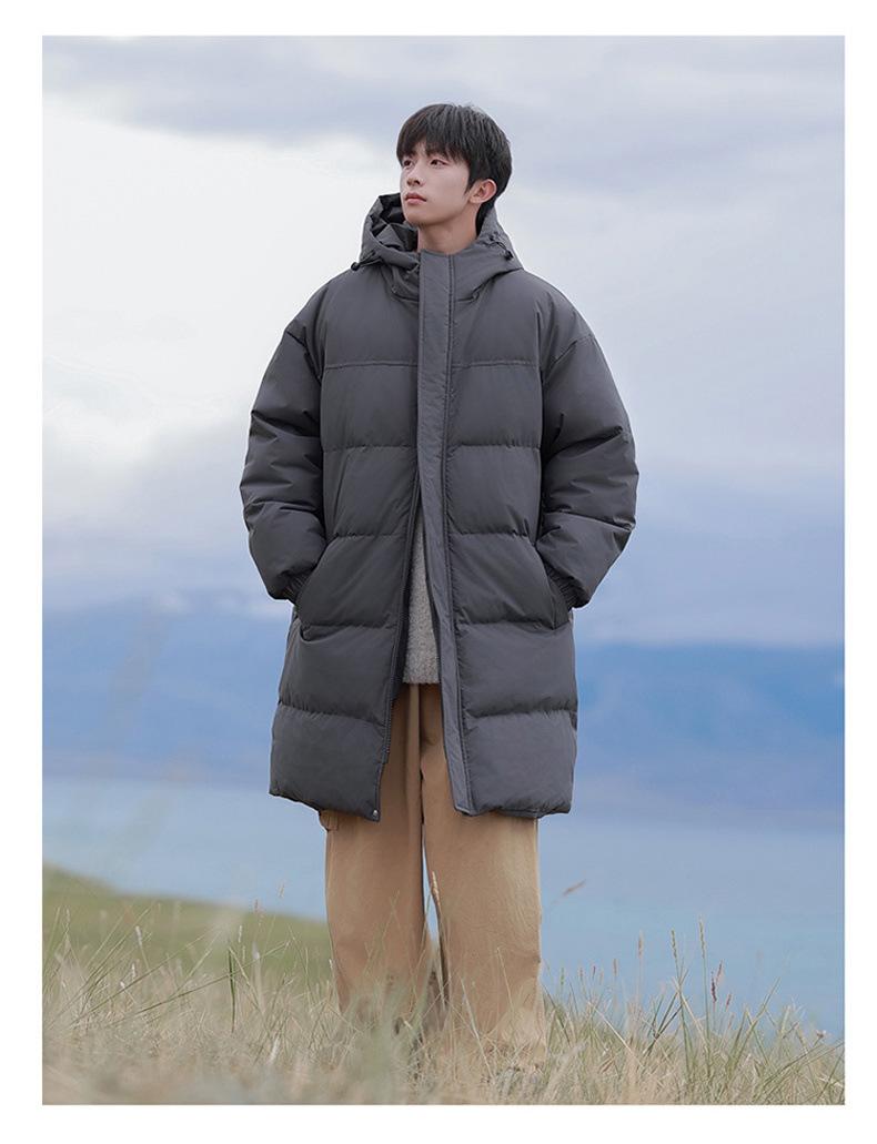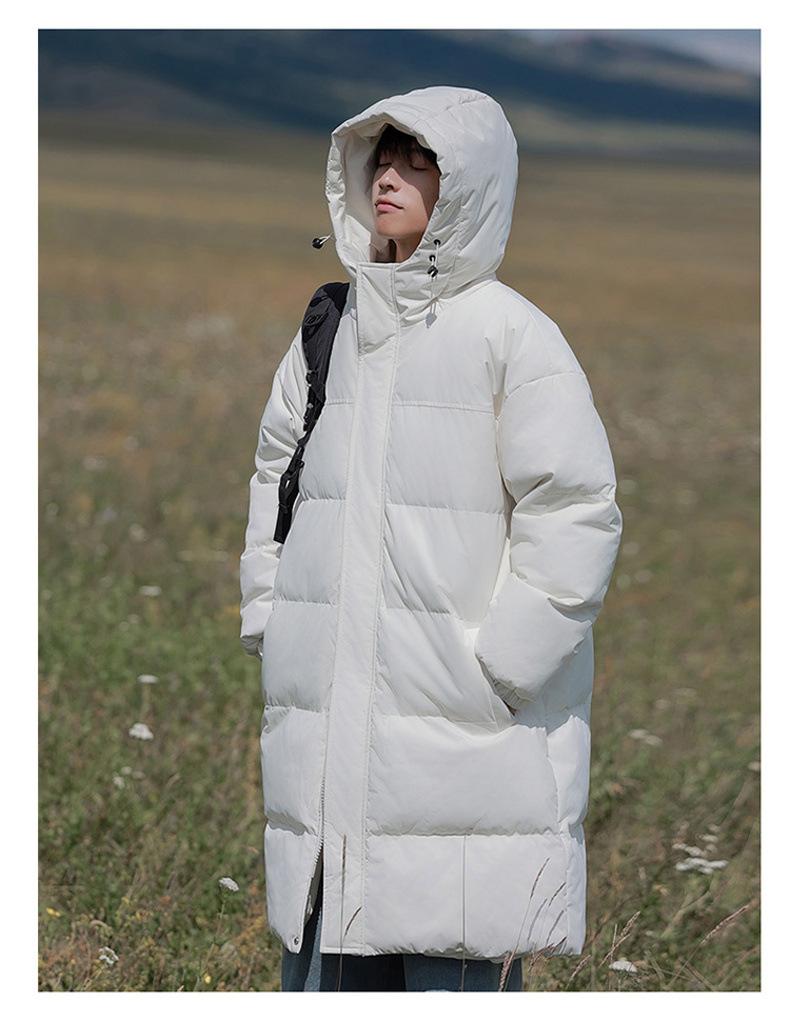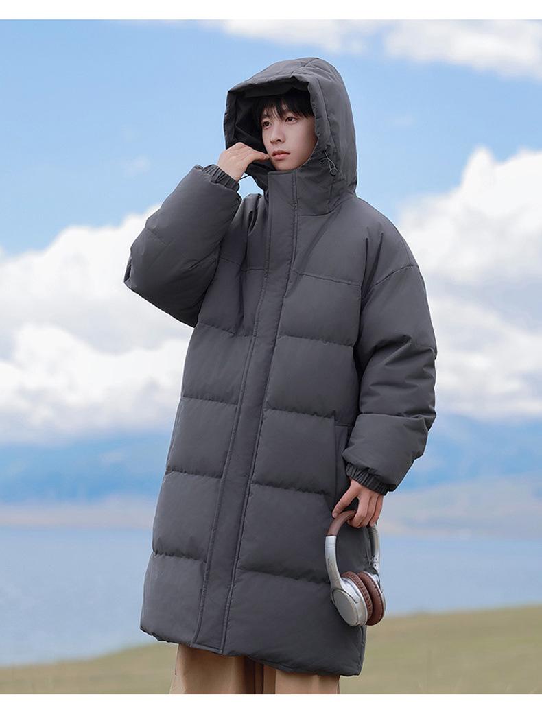 Abrigo Grueso Invierno Largo Medio Engrosado Cálido Chaqueta de Algodón Moda Hombre Holgado Combinable con Todo Capucha Combinación de Colores Chaqueta Acolchada de Algodón