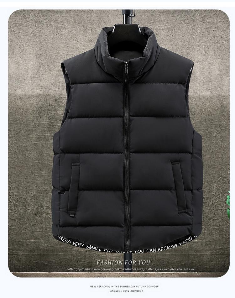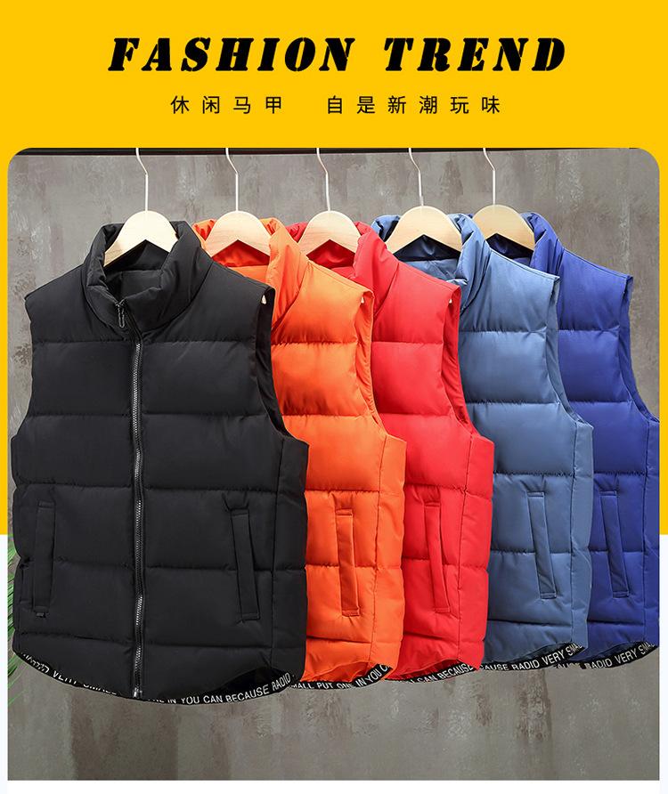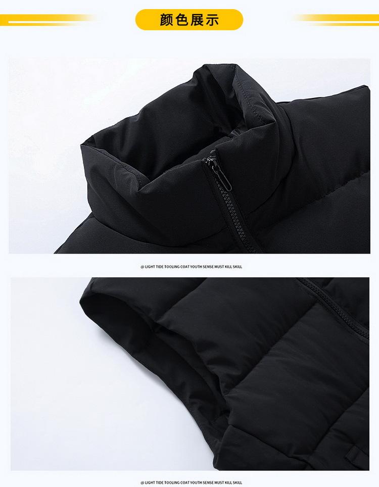 Chaleco de algodón de plumón de invierno para hombre, ropa de trabajo nueva, chaleco con estampado de logotipo, cuello vertical, abrigo grueso de algodón para mujer