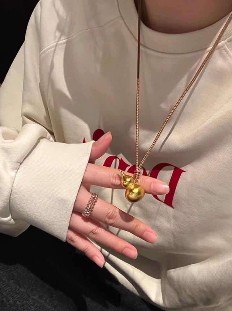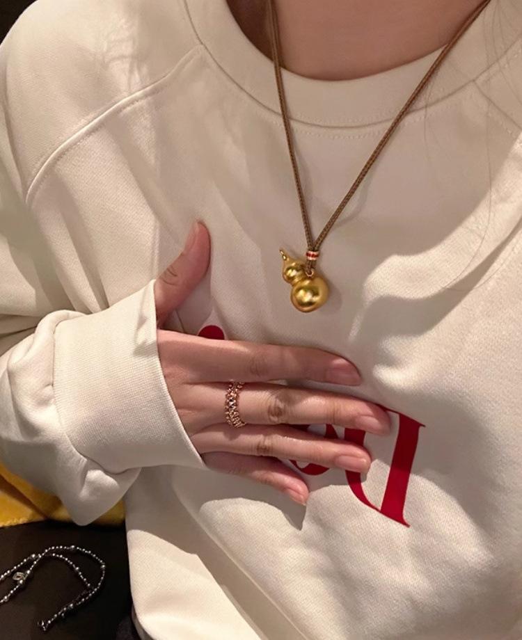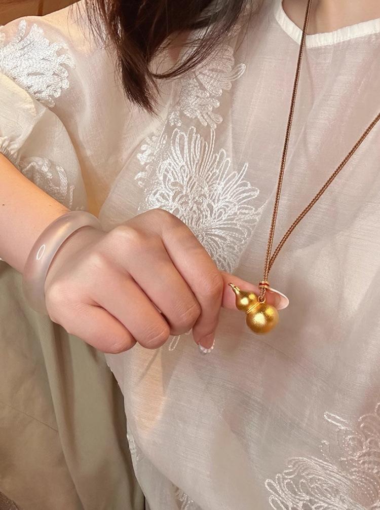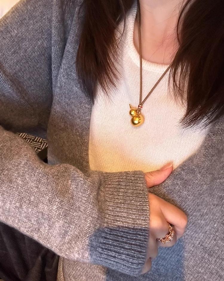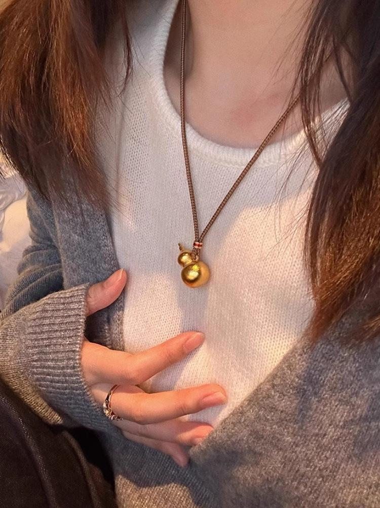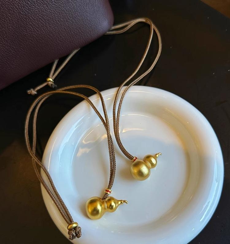 Nuevo collar de calabaza dorada de estilo chino de alta gama, elegante y con cuerda ancha, con diseño de calabaza, cadena de lana con nicho de la fortuna de Año Nuevo para mujer.