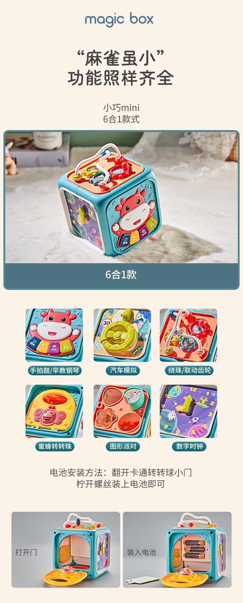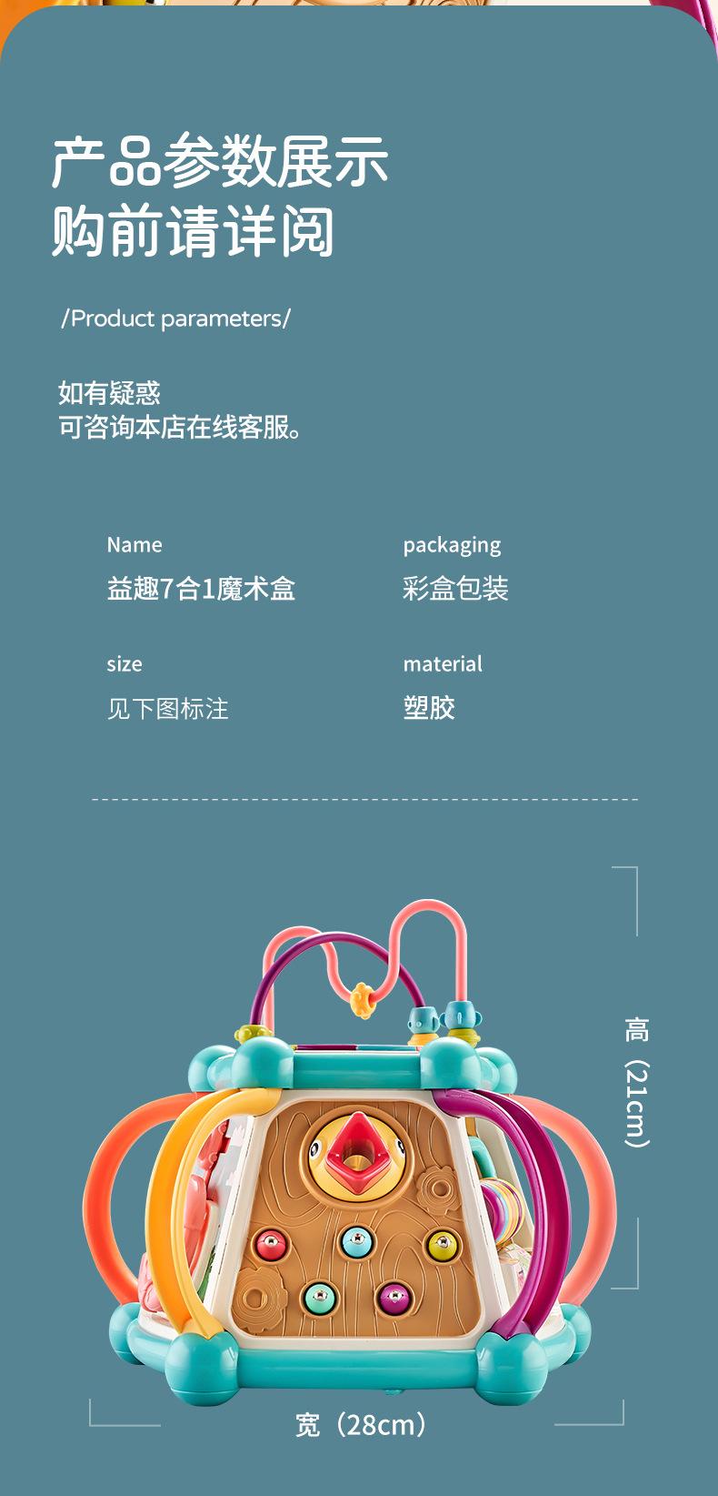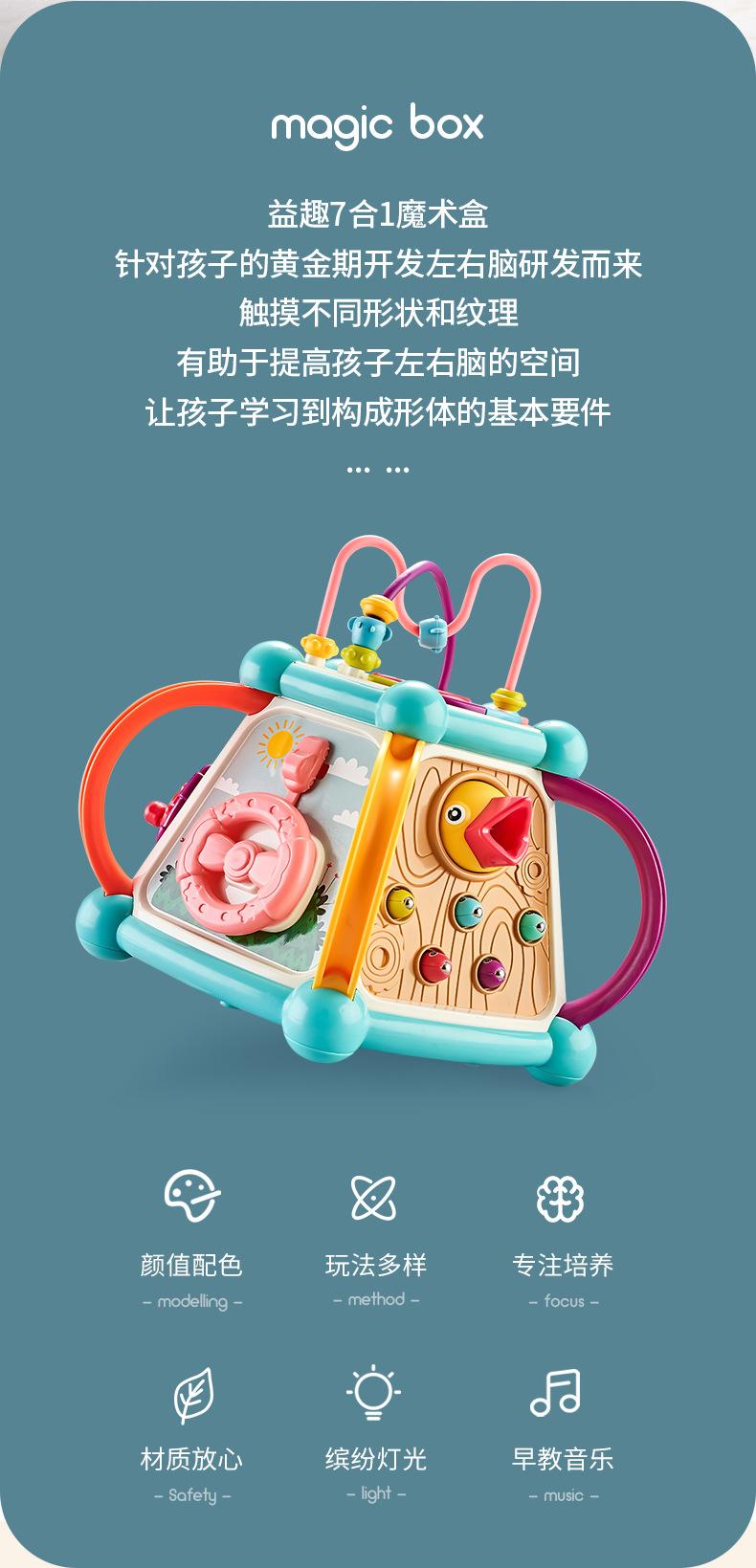 Tambor de mano infantil, iluminación interactiva, rompecabezas multifuncional 7 en 1, caja mágica, música vocal cognitiva, poesía antigua, juguetes de educación temprana