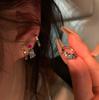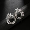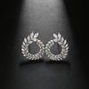 Pequeños aretes de botón de hoja de diente tierno para mujer, exquisitos aretes de botón pequeños de circonita, aretes asimétricos de gota de agua