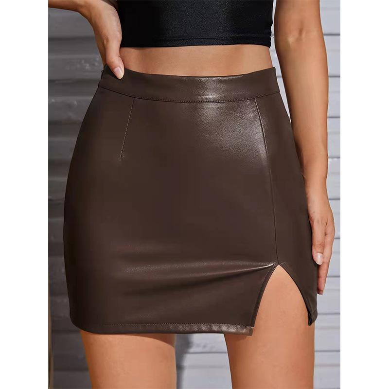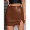 Amazon transfronterizo 2022 corte ajustado elegante para ir al trabajo europeo y americano encaje marrón cuidado máquina falda de cadera color sólido falda corta para mujer