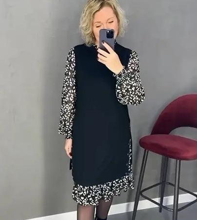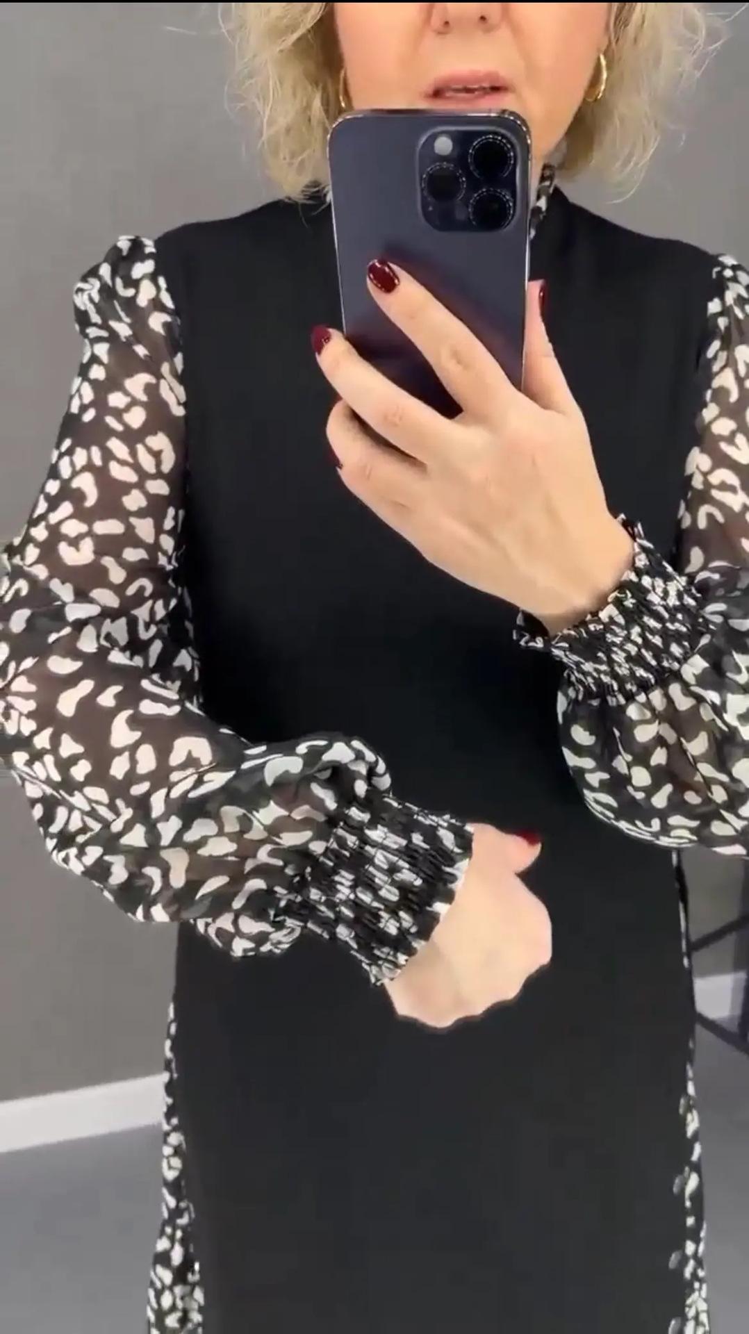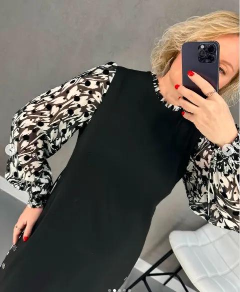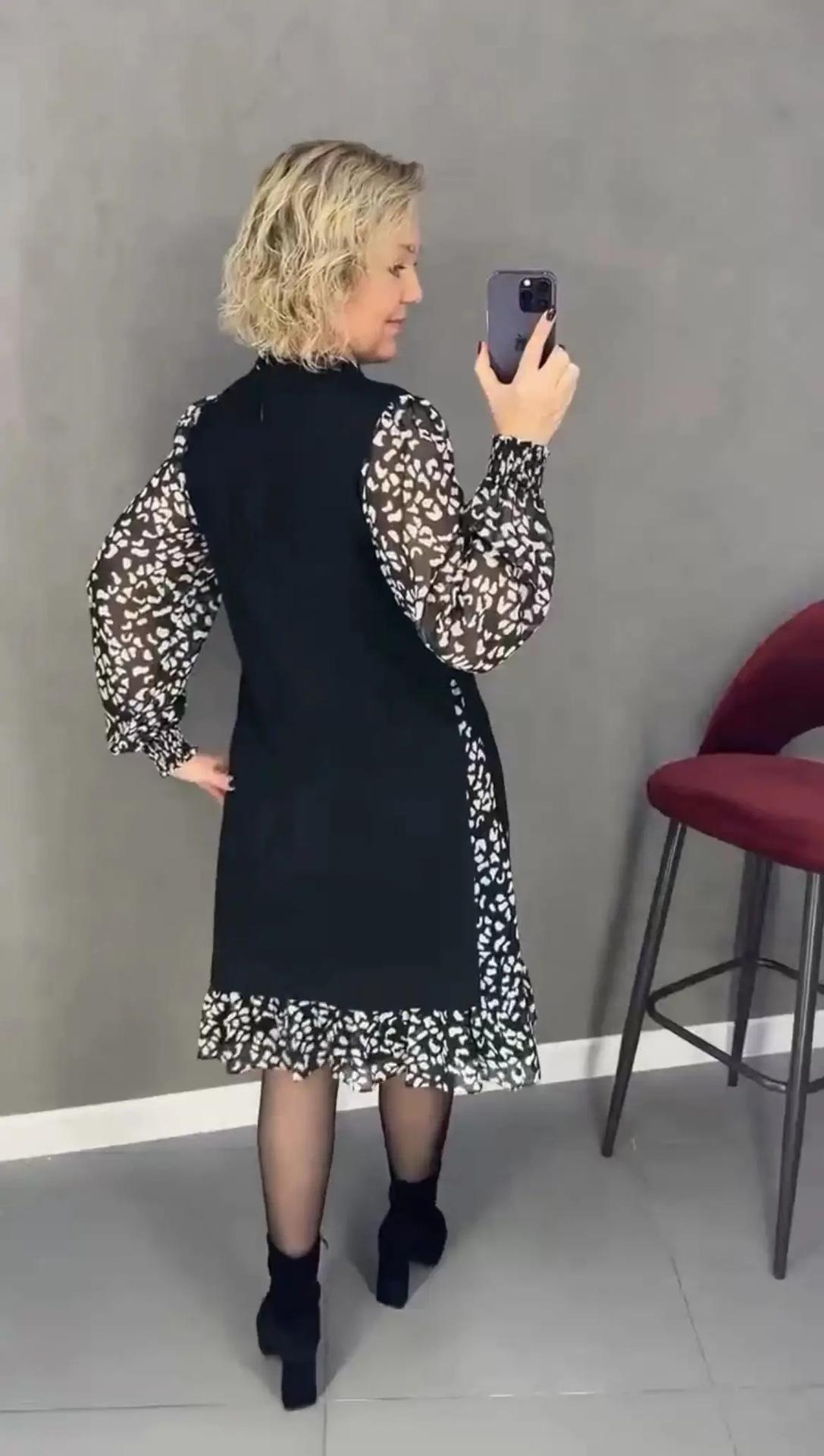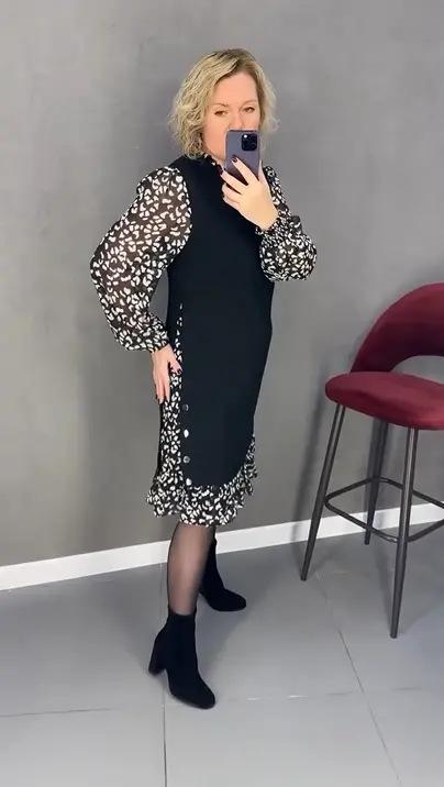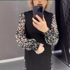 Estación europea 2023 nuevo chaleco para mujer que combina con todo conjunto de dos piezas falsas vestido de manga larga estampado