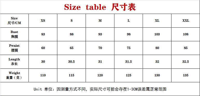 XS, S, M, L, XL, XXL