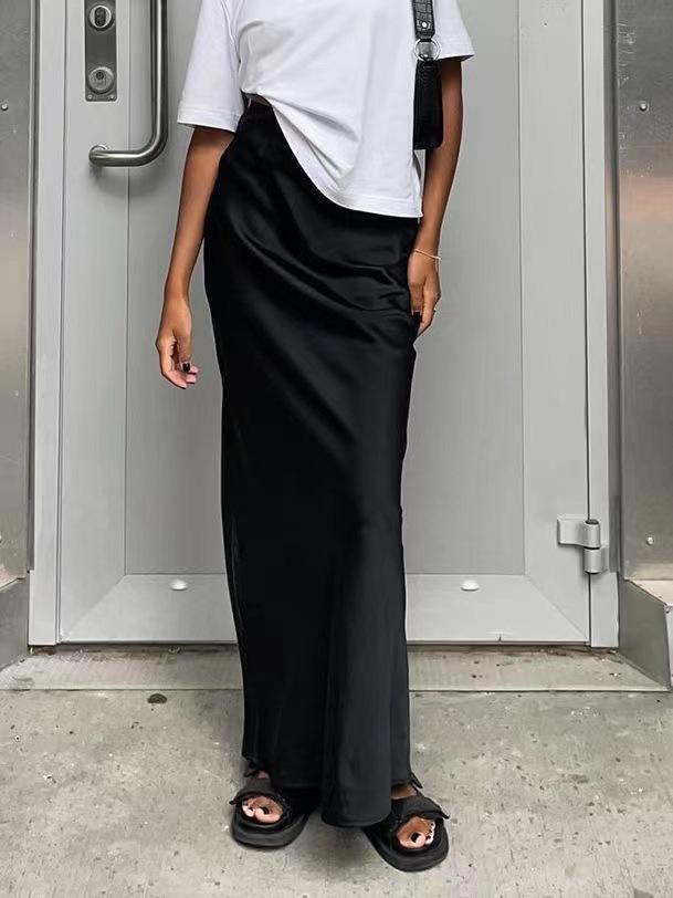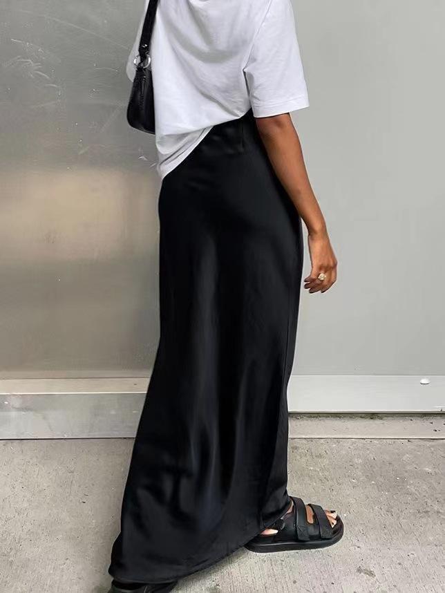 Falda de satén de seda para mujer, estilo europeo y americano, informal, con corte en la cadera, primavera y verano de 2024