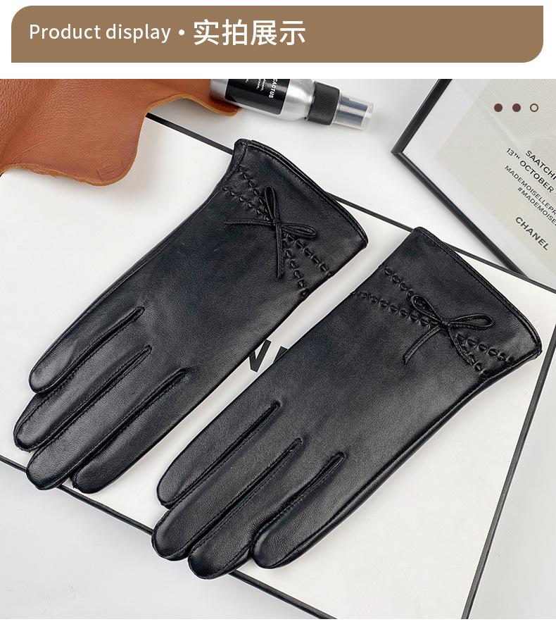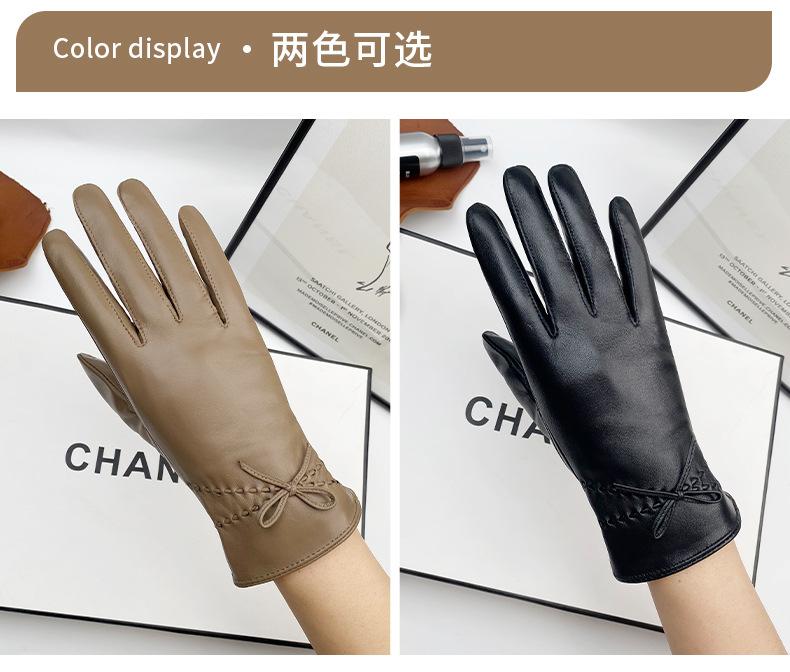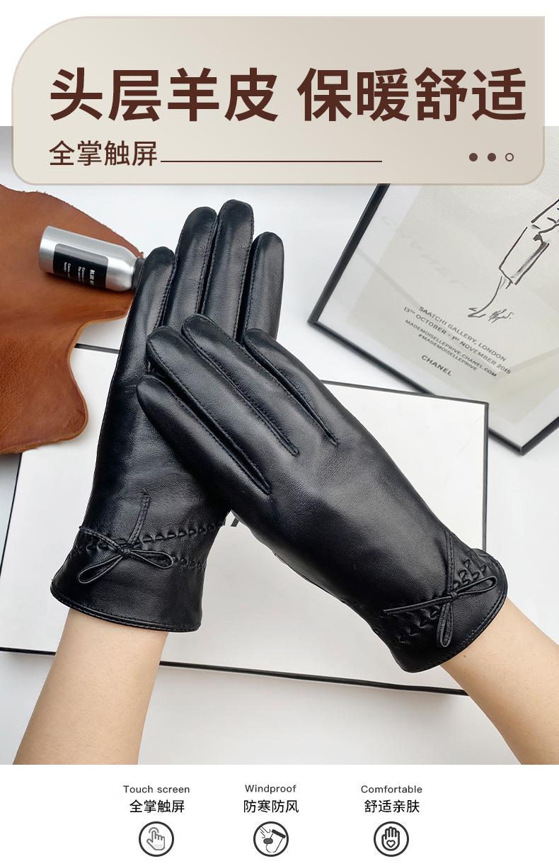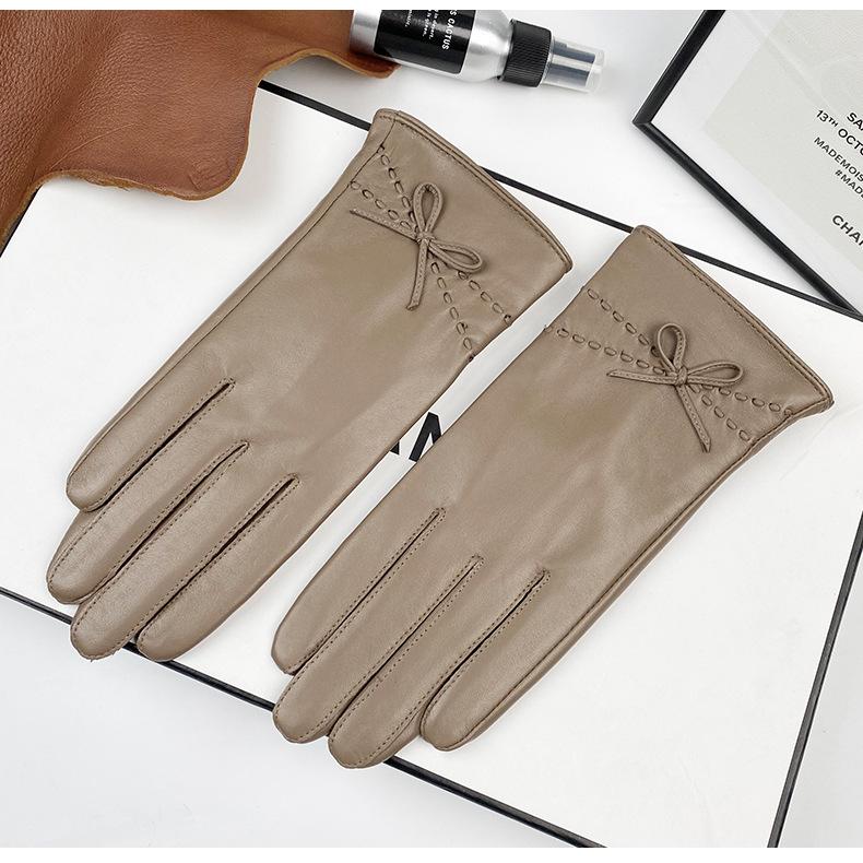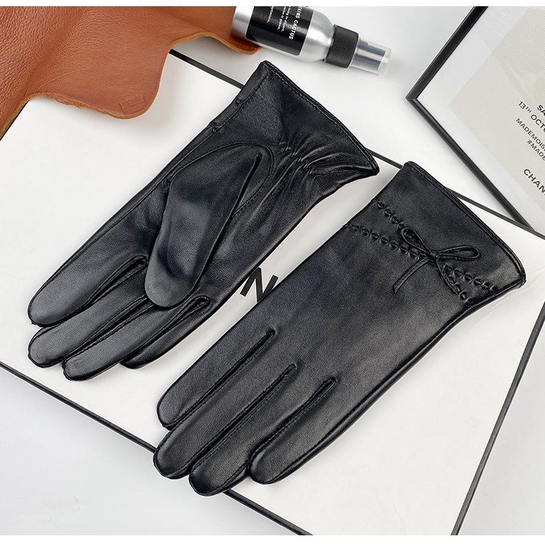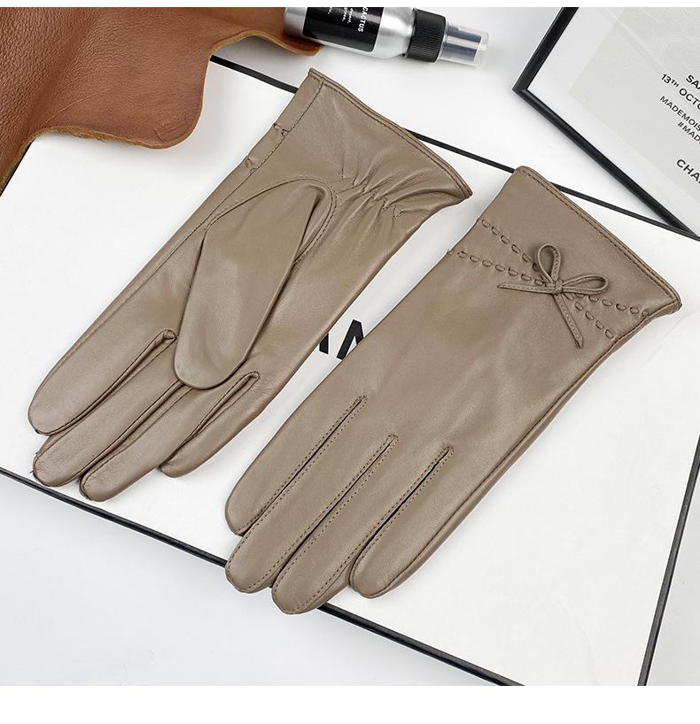Guantes de piel genuina para mujer otoño e invierno con forro polar engrosado a prueba de frío cálido a prueba de viento para conducir pantalla táctil primera capa piel de oveja lazo
