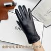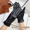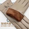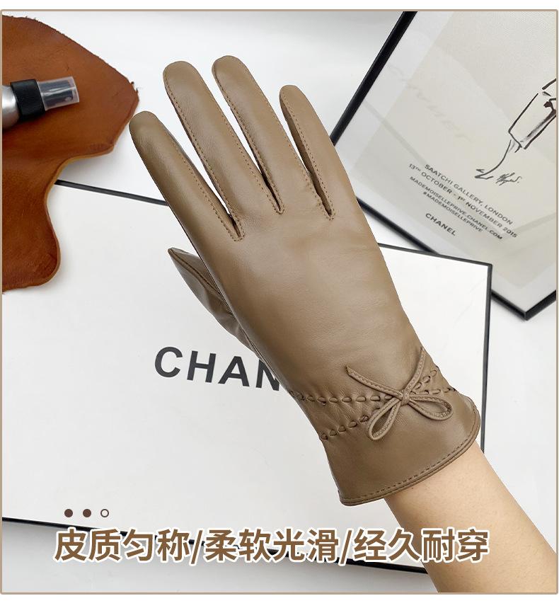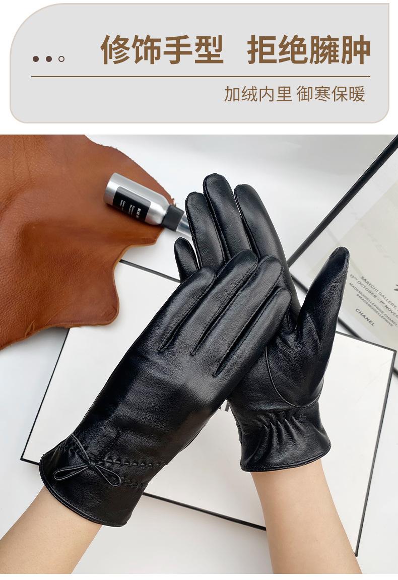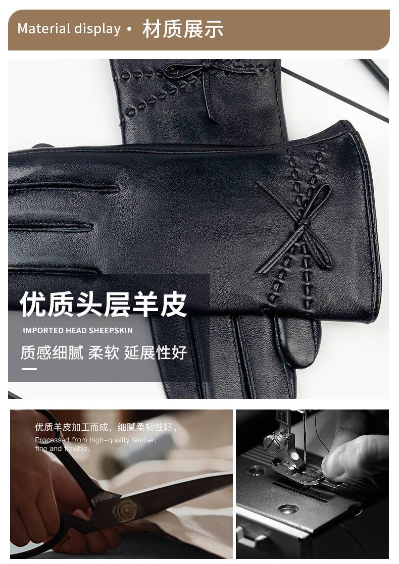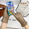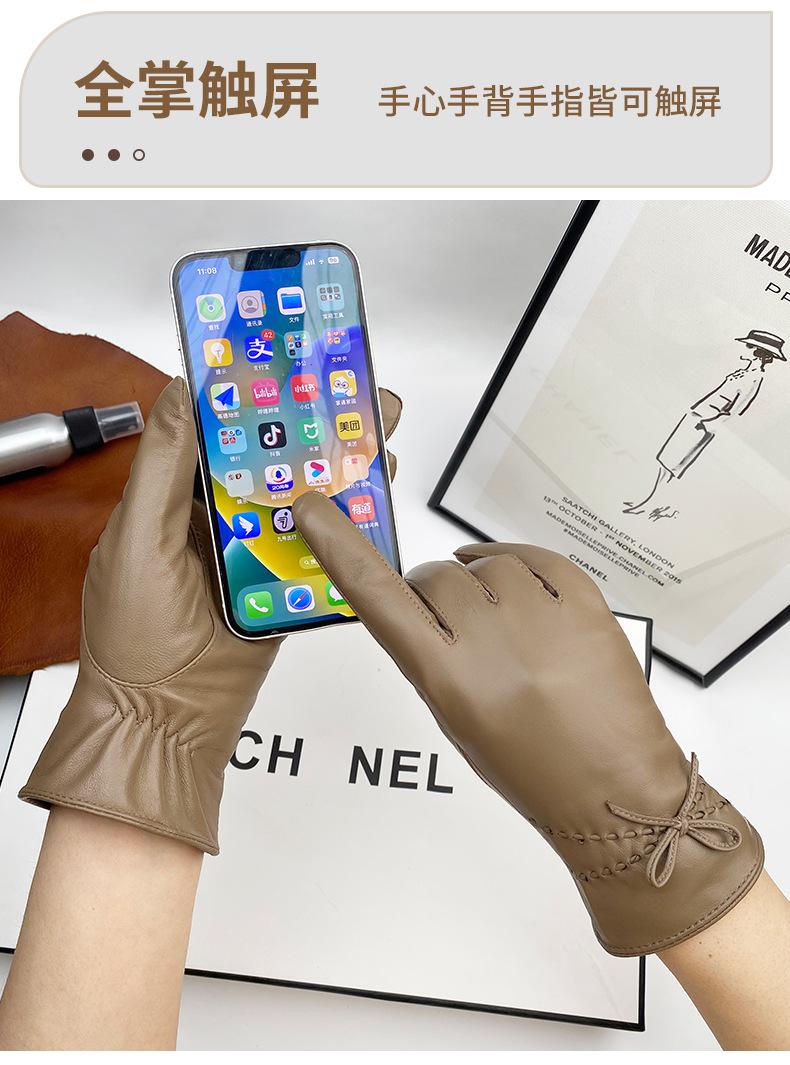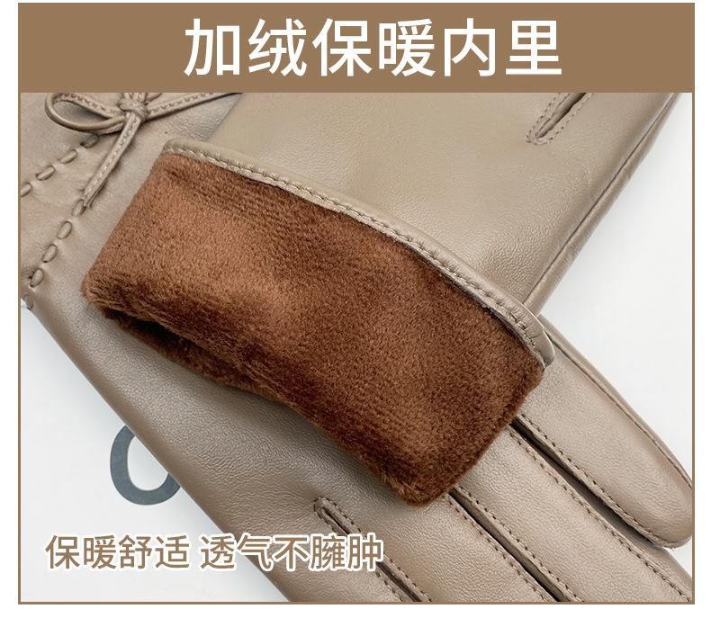 Guantes de piel genuina para mujer otoño e invierno con forro polar engrosado a prueba de frío cálido a prueba de viento para conducir pantalla táctil primera capa piel de oveja lazo