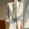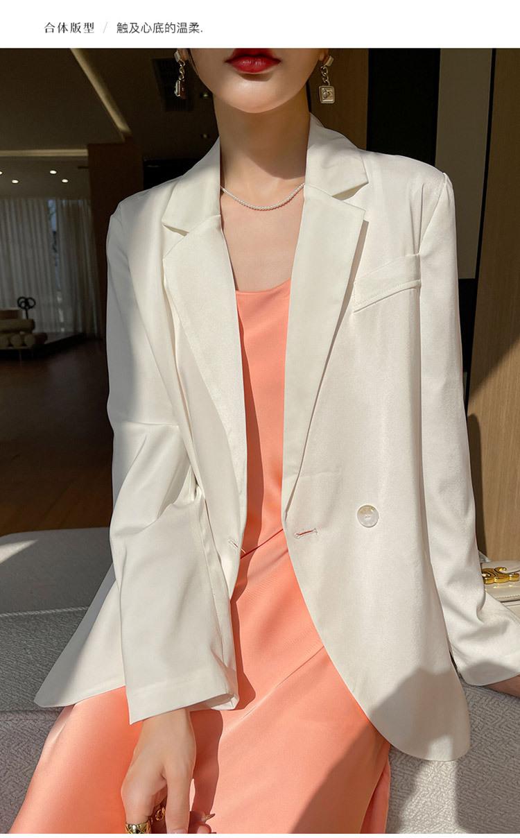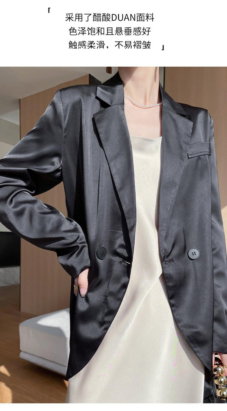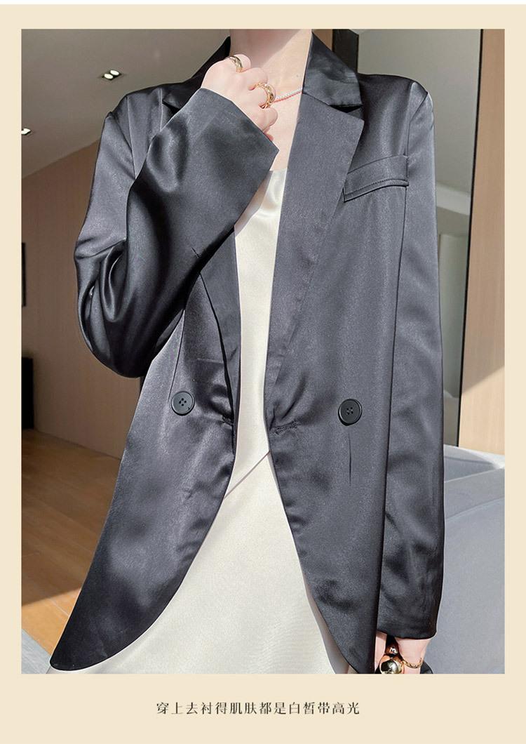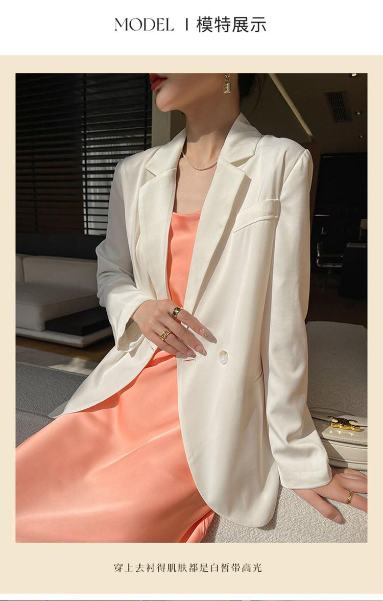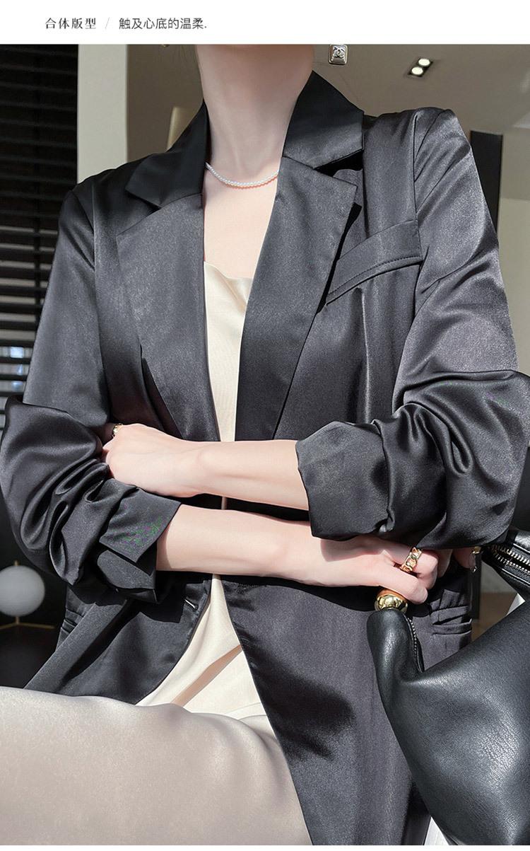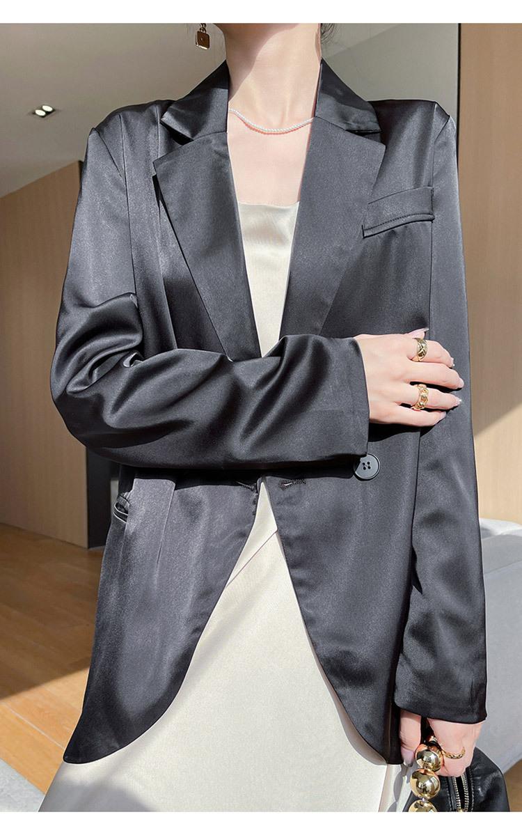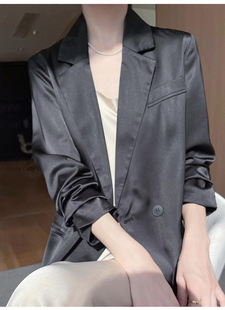 Satén de Seda 2025 Primavera y Verano para Mujer Nuevo Traje Cuello con Solapa Un Botón Color Puro Moderno Elegante Traje Top Chaqueta