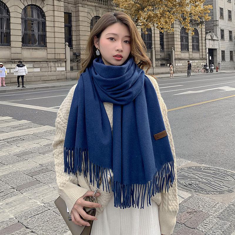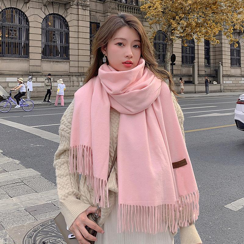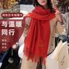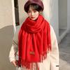 Bufanda Roja de Invierno Estilo Chino Color Sólido Imitación Cachemira Femenina Reunión Anual Bufanda Roja China Bordado de Lana Cálida Venta al por Mayor