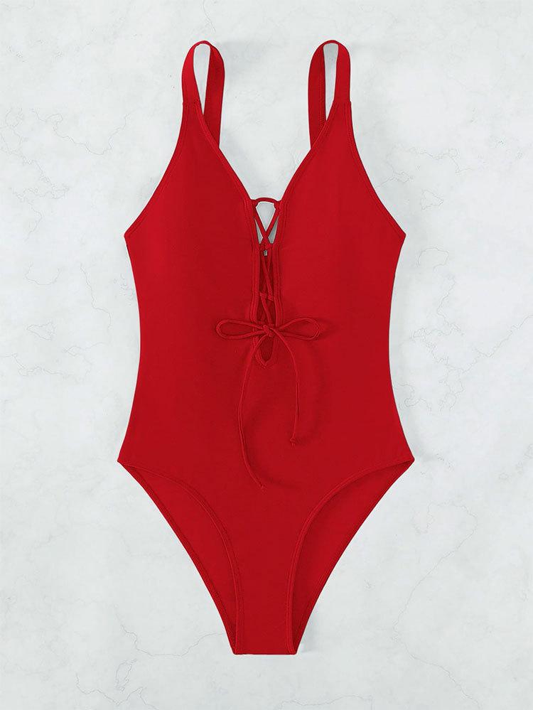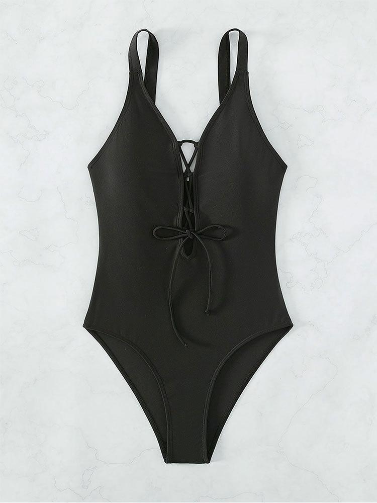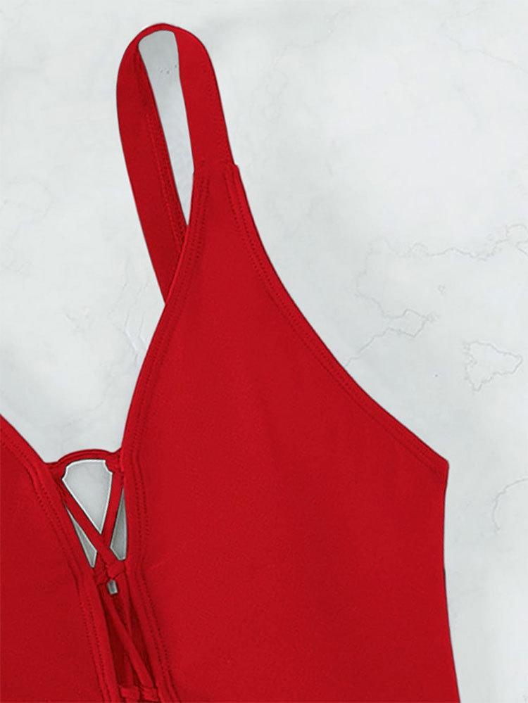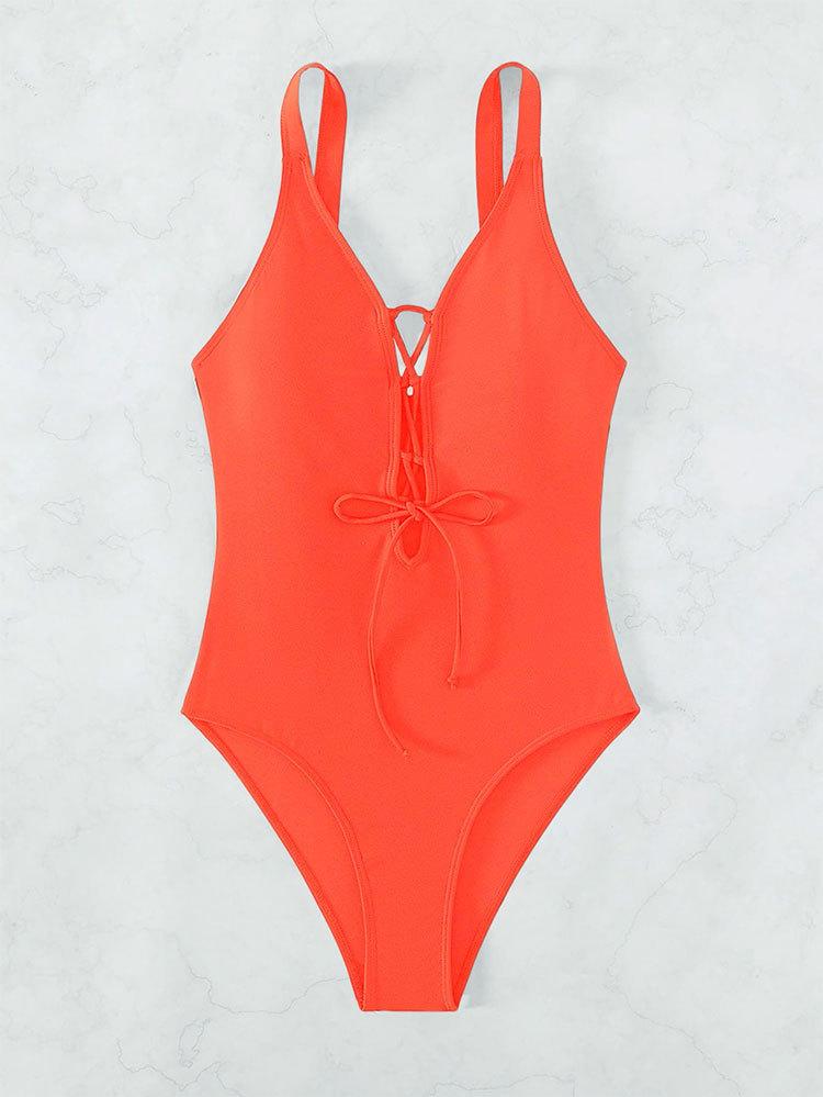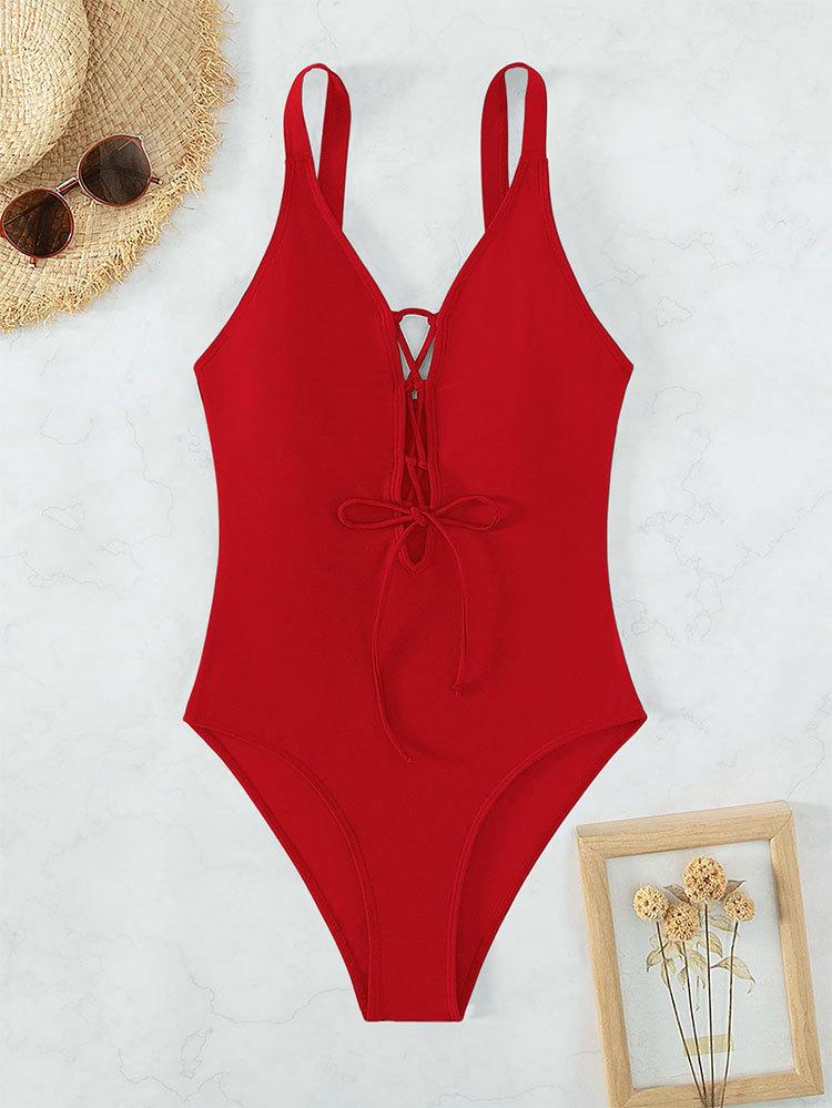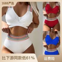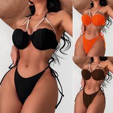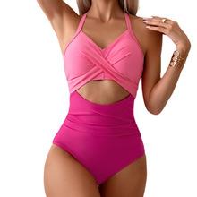 Traje de Baño Conservador Ajustado Nuevo 2024 Transfronterizo Color Sólido Tirantes Multicolor Hueco Bikini de Playa Traje de Baño