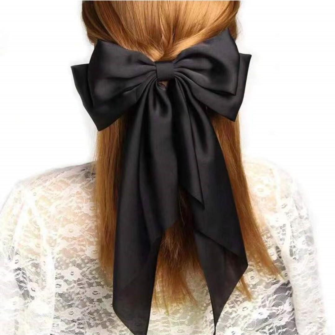 Accesorio para el cabello con lazo de cinta de satén elegante e informal, horquilla de lazo de moda para mujer, horquilla con clip de resorte en la parte posterior de la cabeza