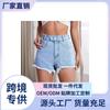 Amazon 2024 Verano Europeo y Americano Transfronterizo Nuevo Shorts de Mezclilla para Mujer de Alta Elasticidad Lavados de Cintura Alta con Orilla Cruda