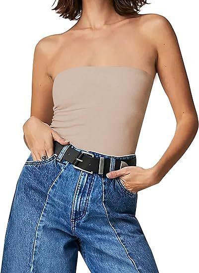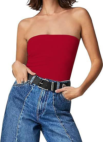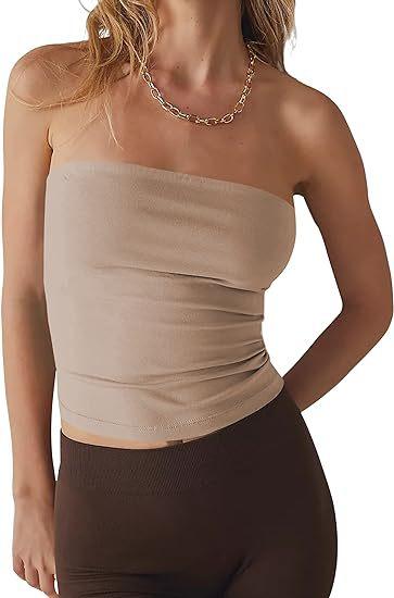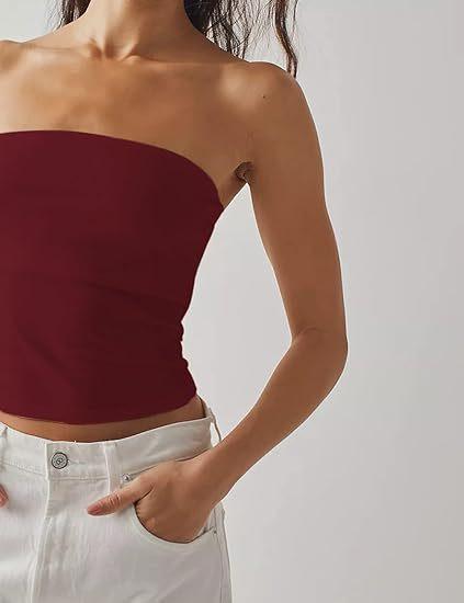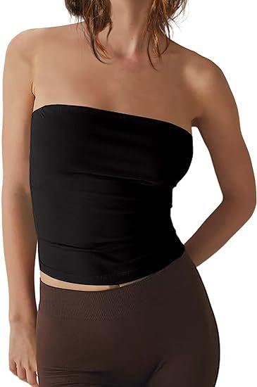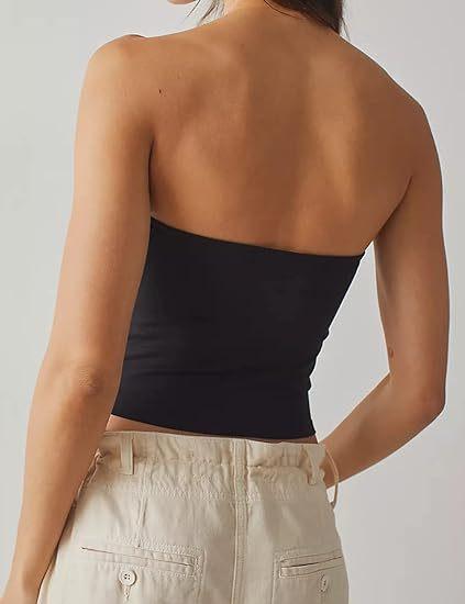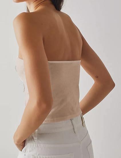 Top de tubo sin tirantes de color sólido para mujer europea y americana 2023, top de tubo sin mangas con espalda descubierta, top básico informal ajustado