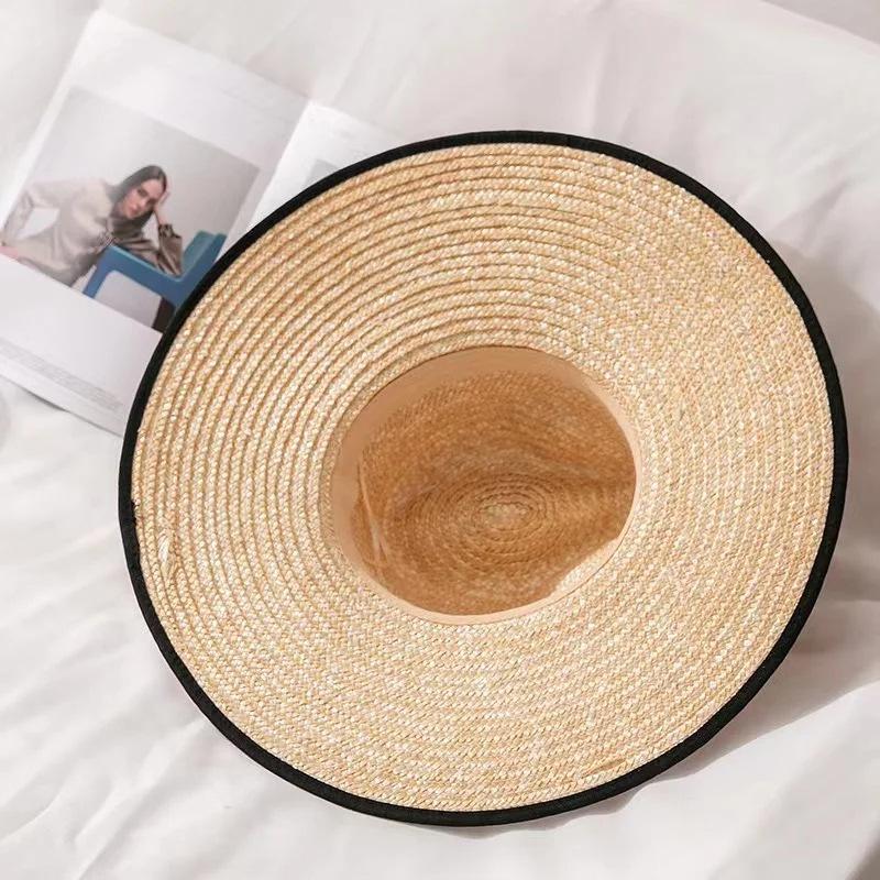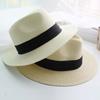 Sombrero de paja panameño retro francés con protección solar y sombrilla de verano para mujer