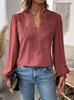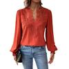 Ropa de Mujer de Comercio Exterior Europea y Americana Transfronteriza Amazon Otoño e Invierno Nuevo Cuello en V Empalme de Encaje Camisa Casual de Manga Larga Tops de Mujer
