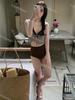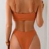 Nuevo Bikini de Dos Piezas de Color Sólido Estilo Europeo y Americano para Mujer, Bikini Sexy Triangular Calado para Natación en la Playa