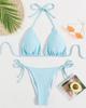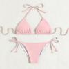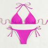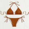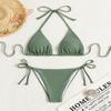 Compra Bikini de color liso con cuello en V y cordones para mujer, traje de baño de tres piezas con abertura en la playa, Amazon, 2024 al por mayor en Joom.pro