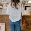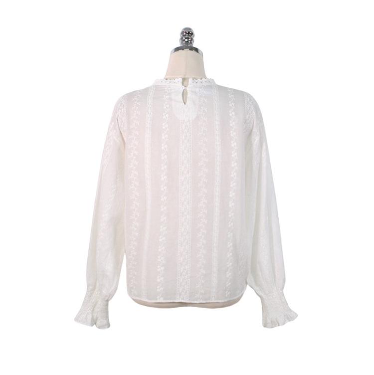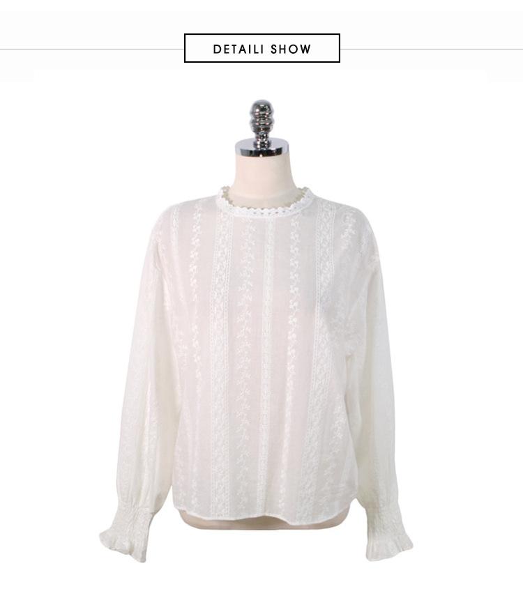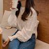 Camisa de Encaje de Manga Larga para Mujer, Primavera 2025 Estilo Coreano Empalmada Cuello Redondo, Top Elegante de Manga Larga