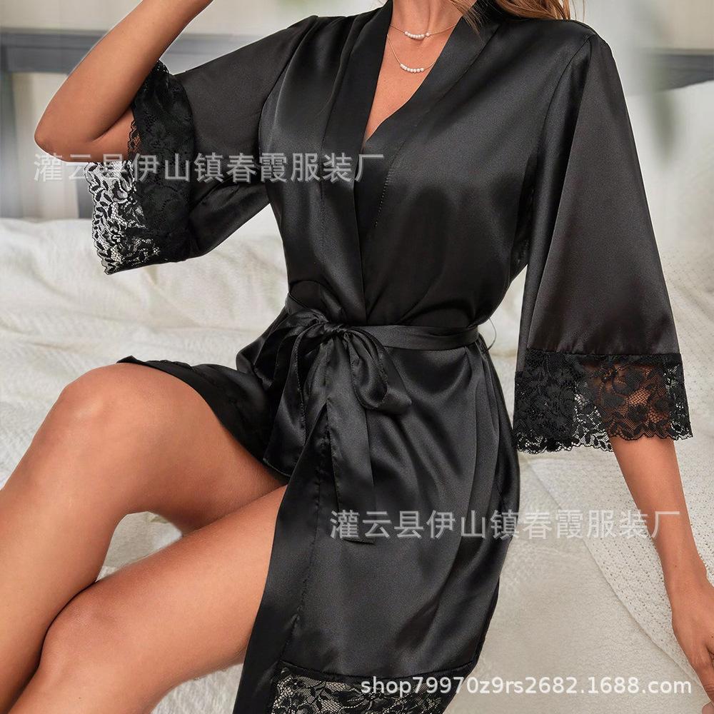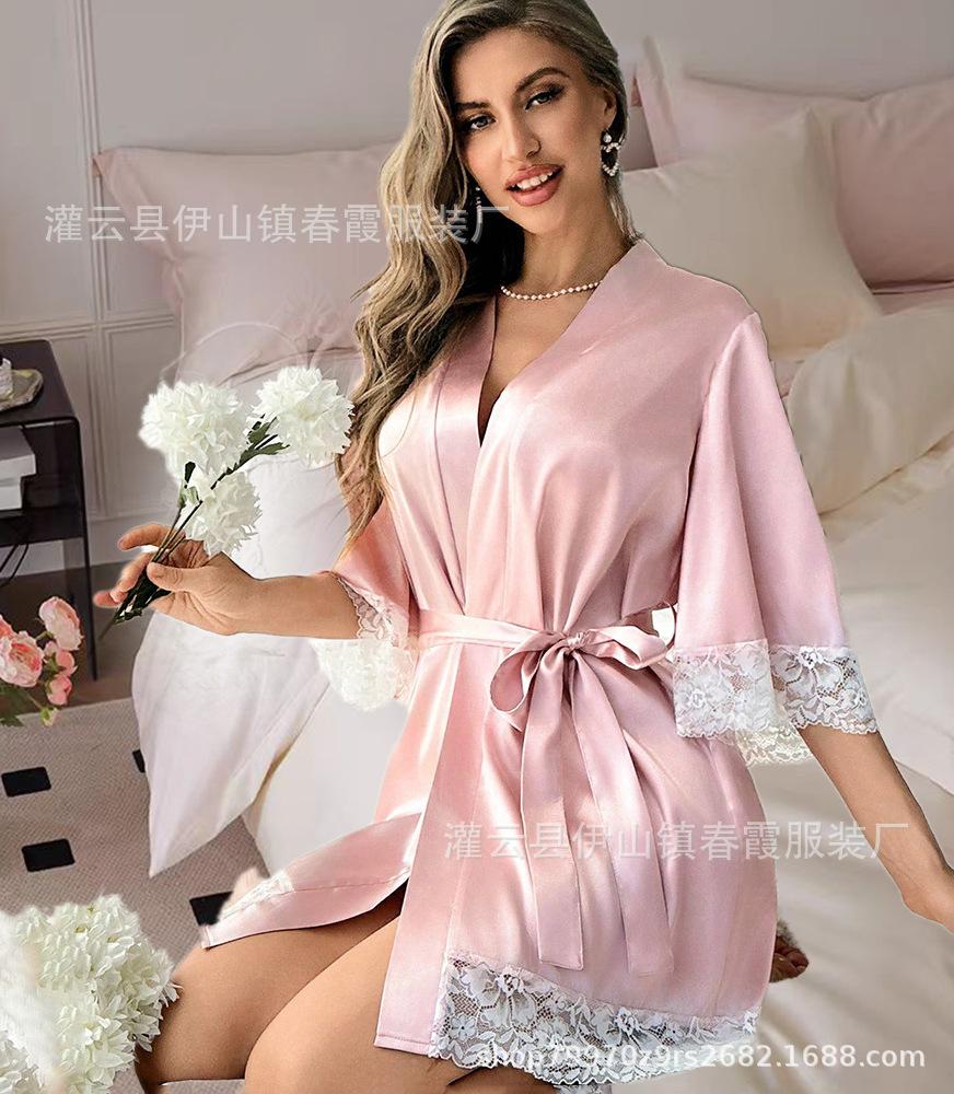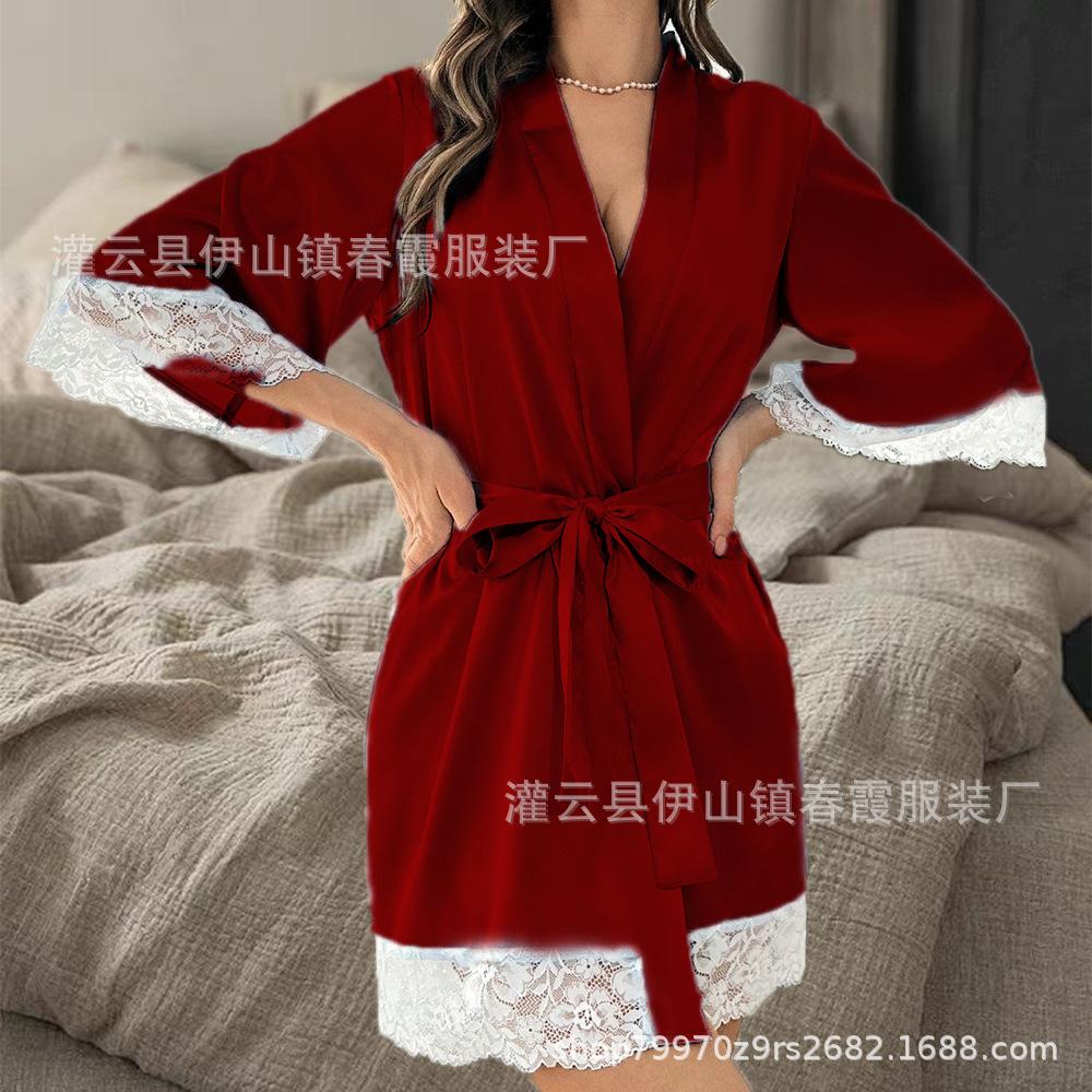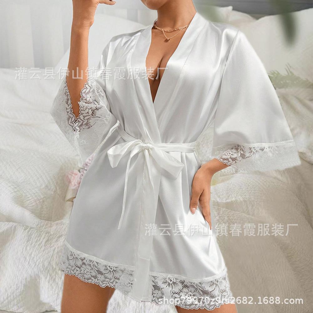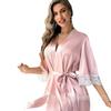 Bata de baño nupcial europea y americana transfronteriza, bata de vestir para dama de honor, manga media, larga, de encaje, pijama de encaje con cordones, camisón casual para el hogar