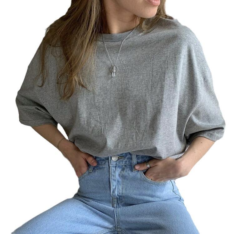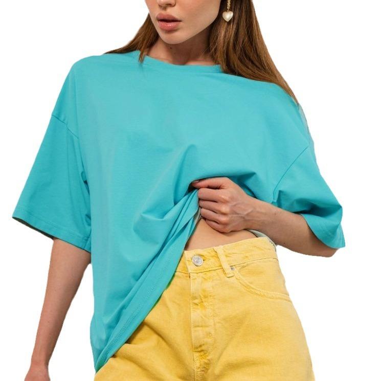 Transfronterizo 2024 Europa y Estados Unidos desean comercio exterior Amazon camiseta de mujer nueva primavera y verano casual color sólido holgada manga corta
