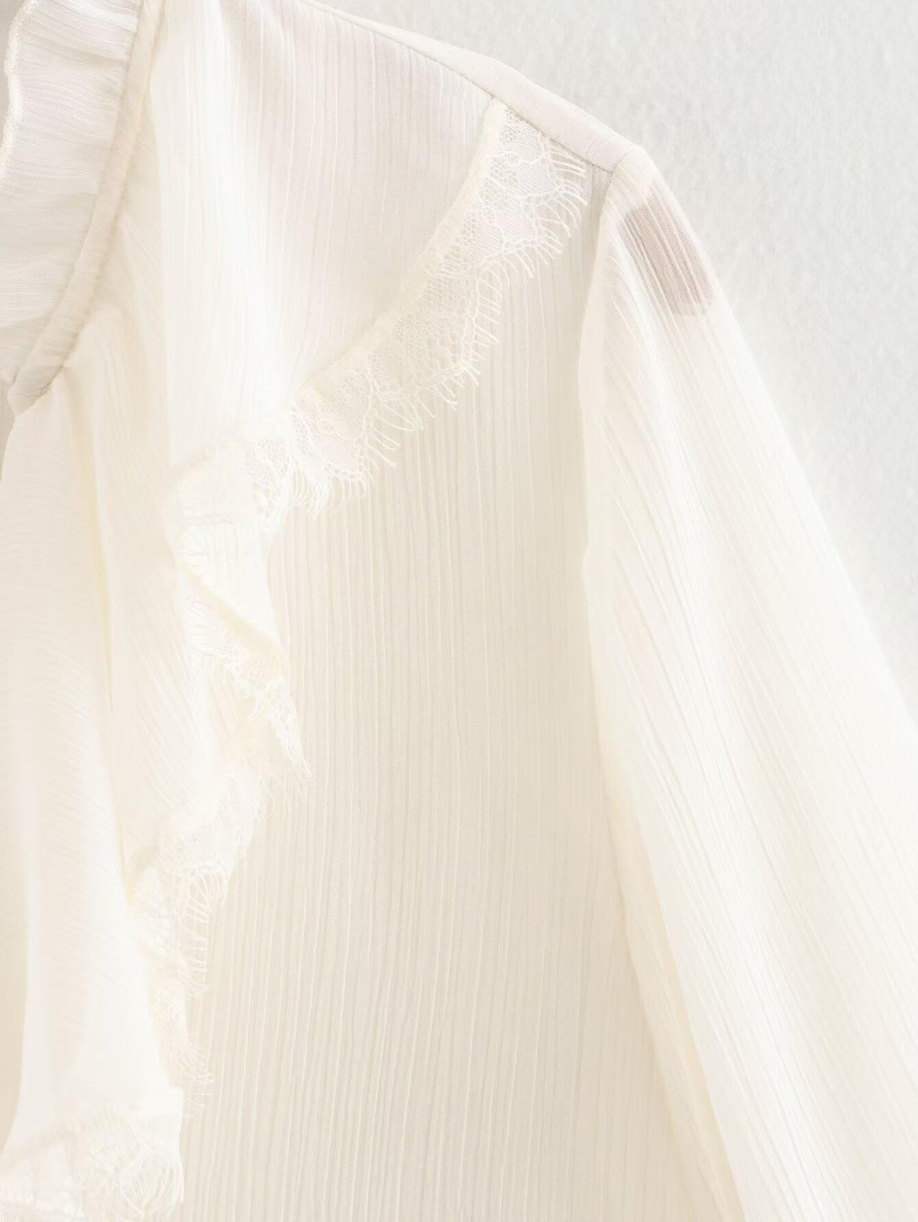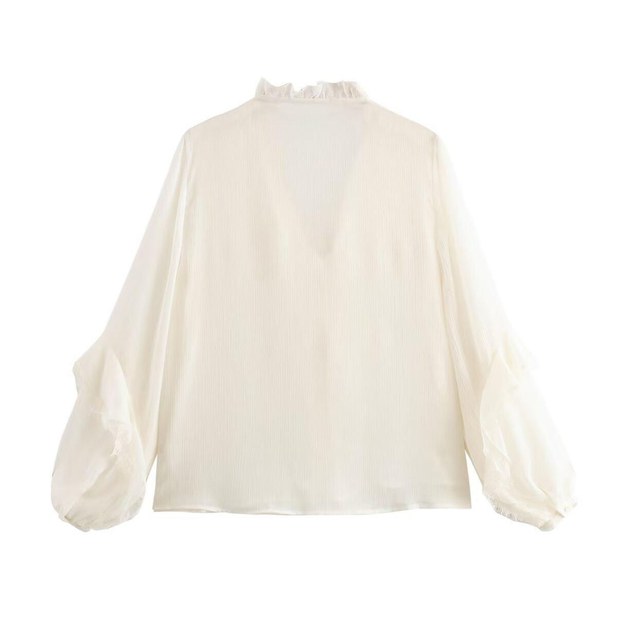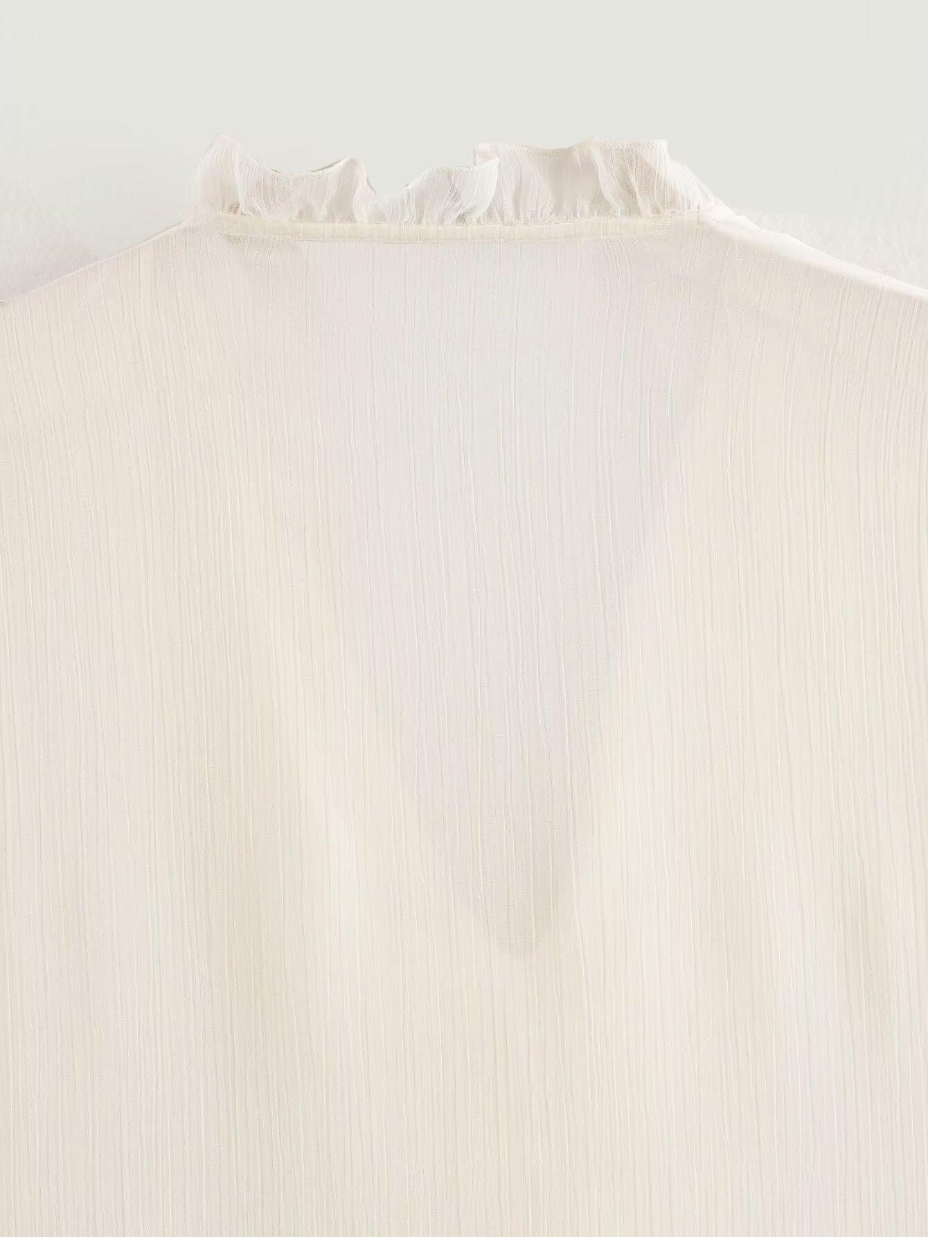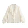 Otoño 2024 Nueva ropa de mujer, estilo europeo y americano, camisa sencilla con decoración laminada y combinable, 5029175