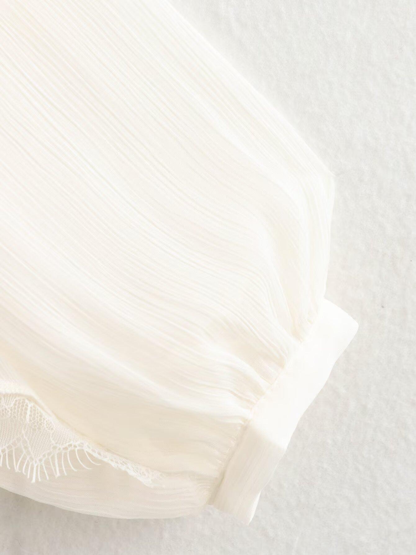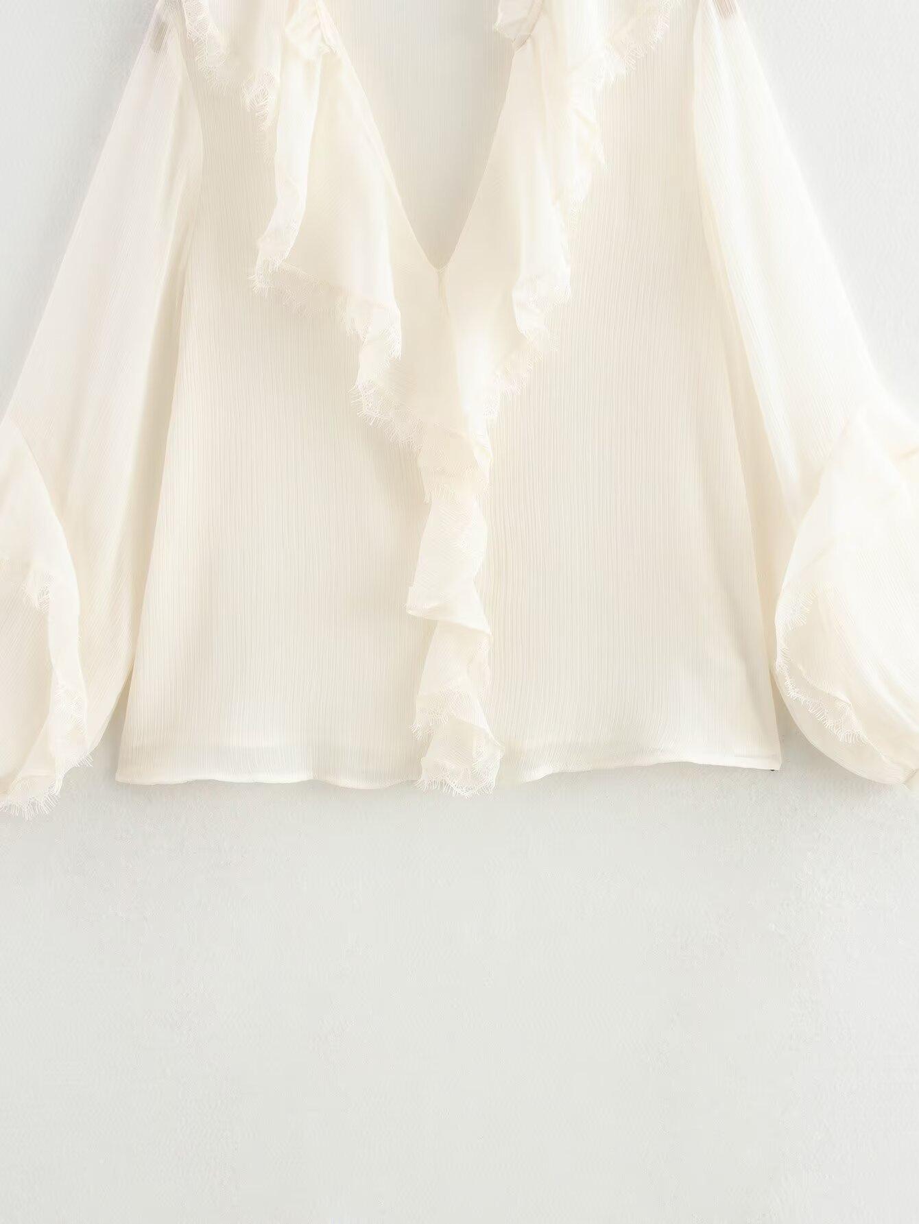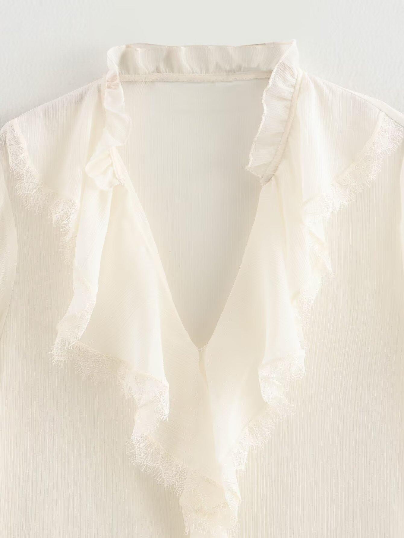 Otoño 2024 Nueva ropa de mujer, estilo europeo y americano, camisa sencilla con decoración laminada y combinable, 5029175