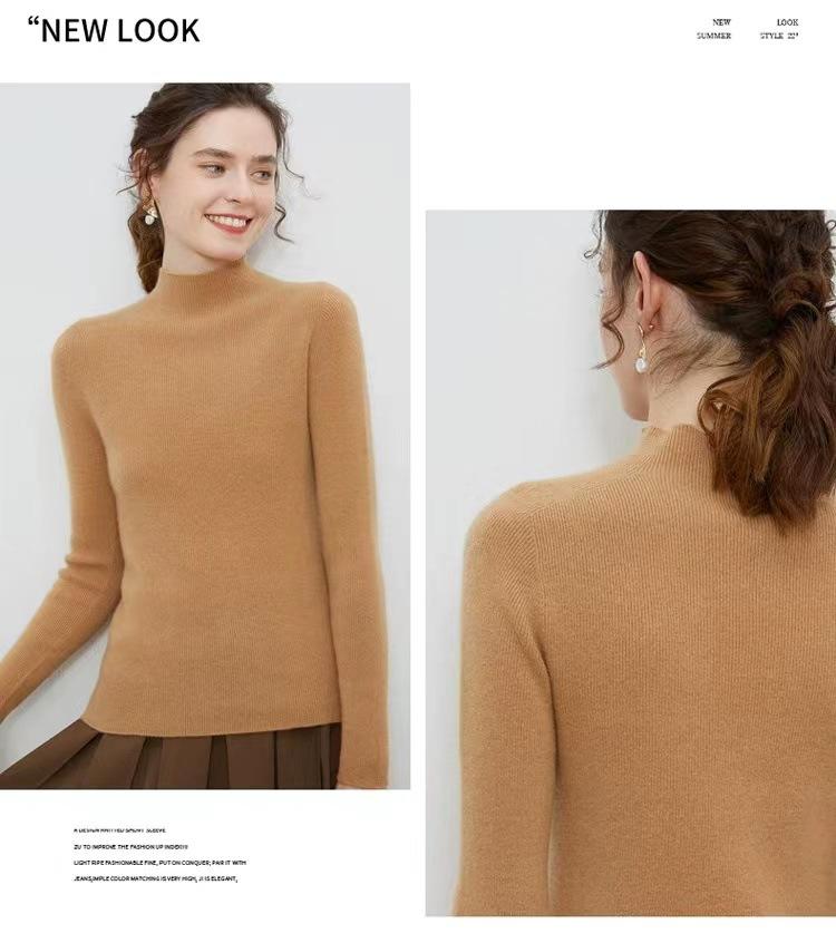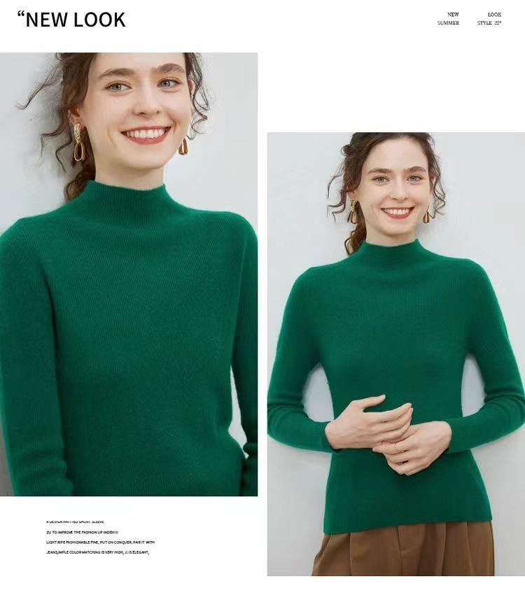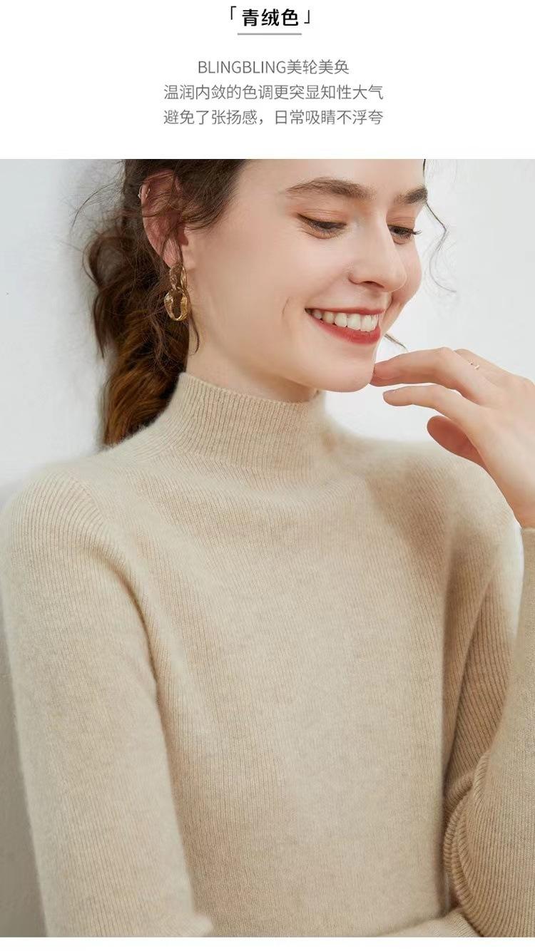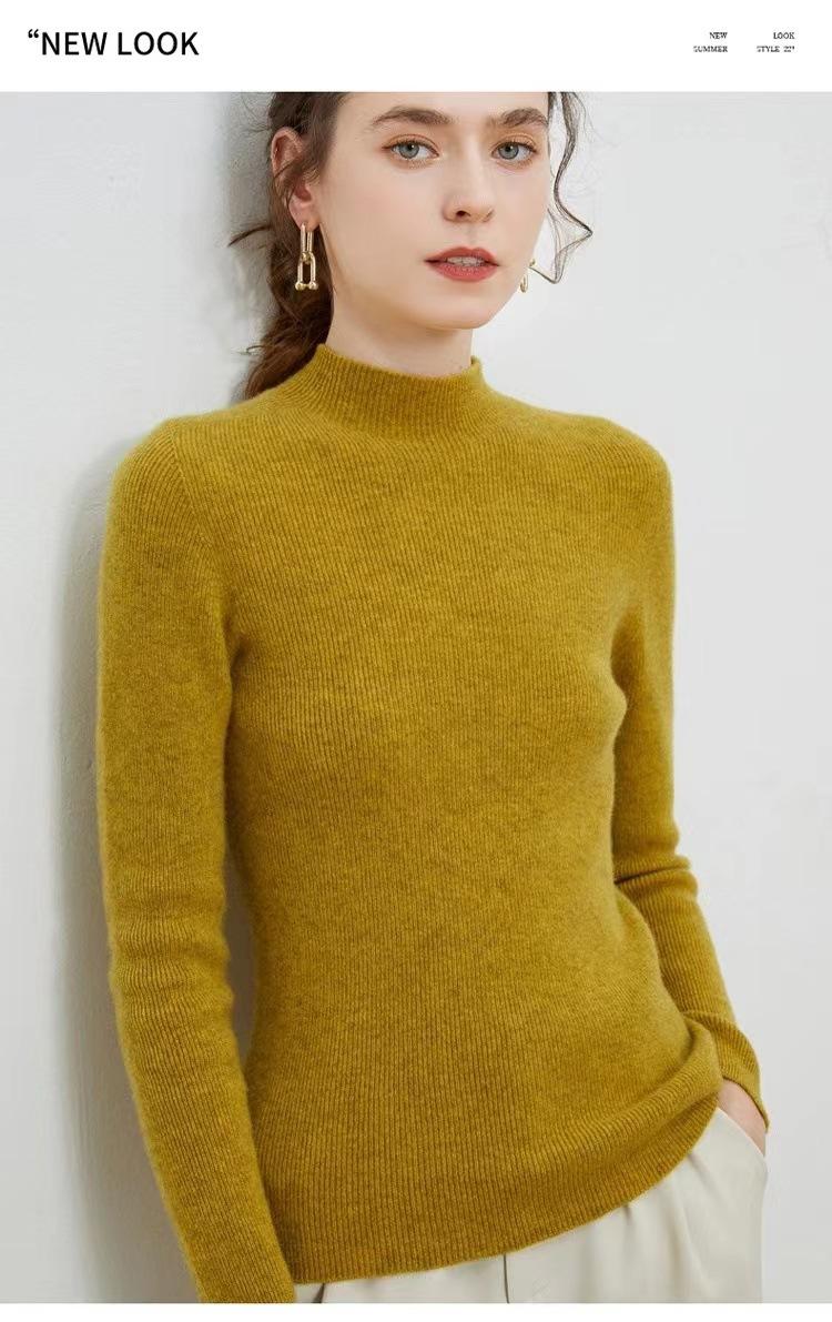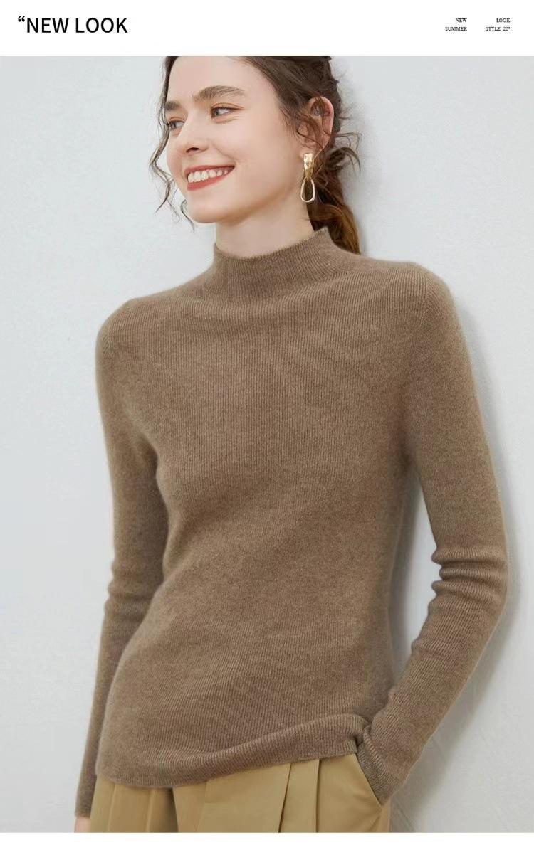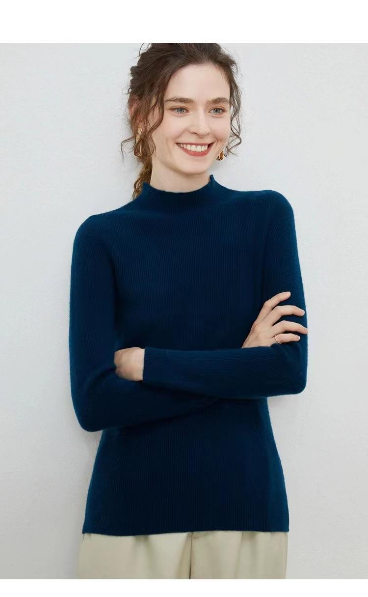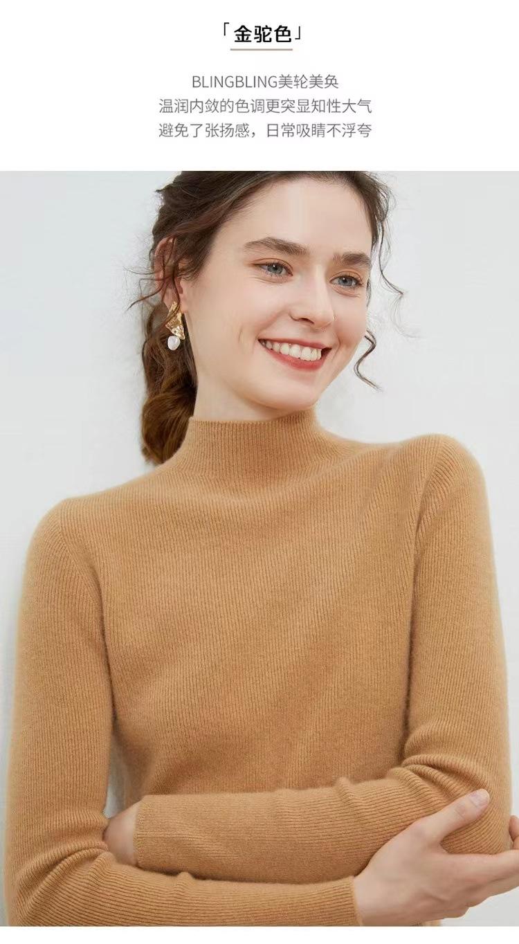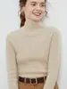 Suéter de cuello alto medio para mujer 100% lana pura ropa de primera línea corte ajustado cachemira tejido fondo ajustado suéter interior
