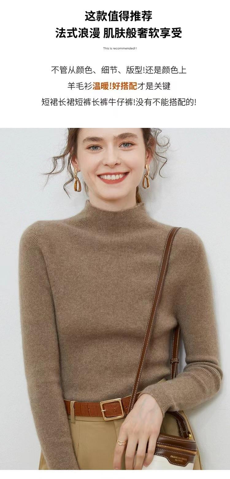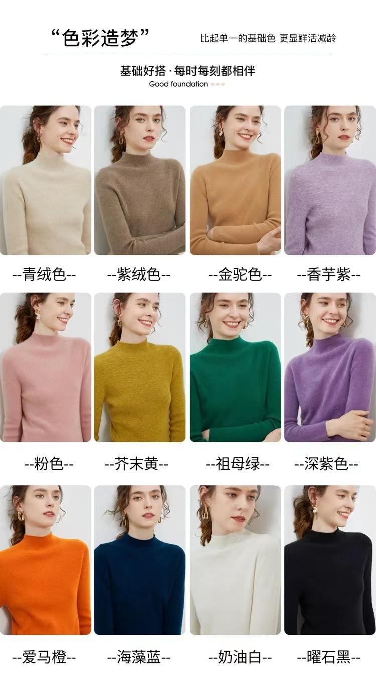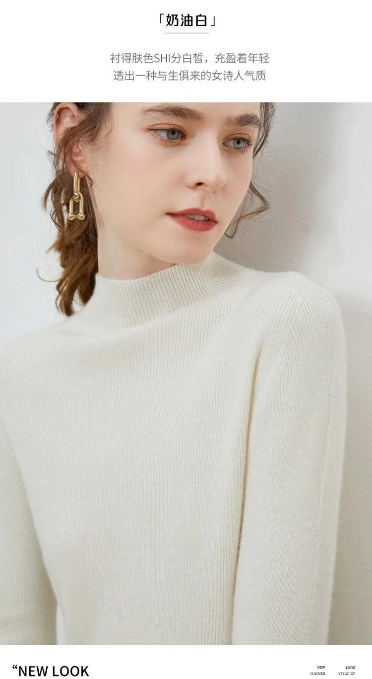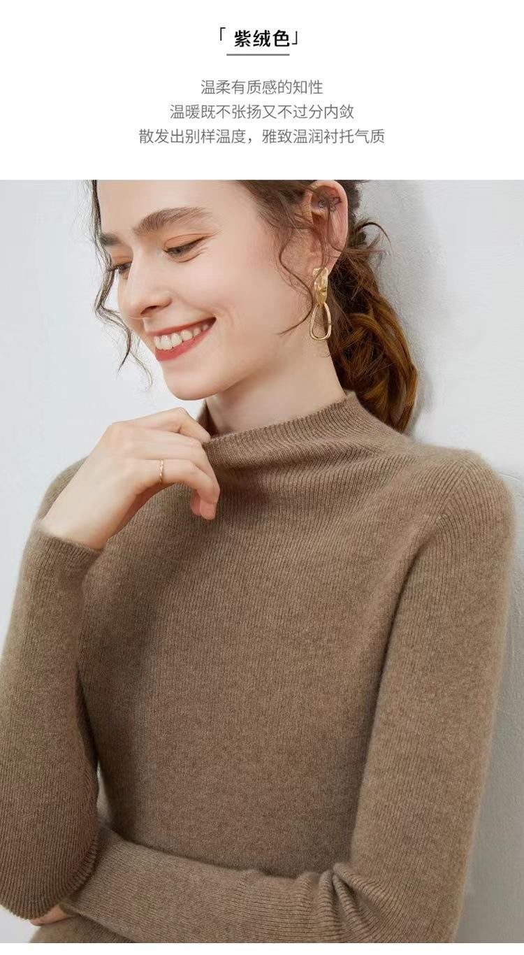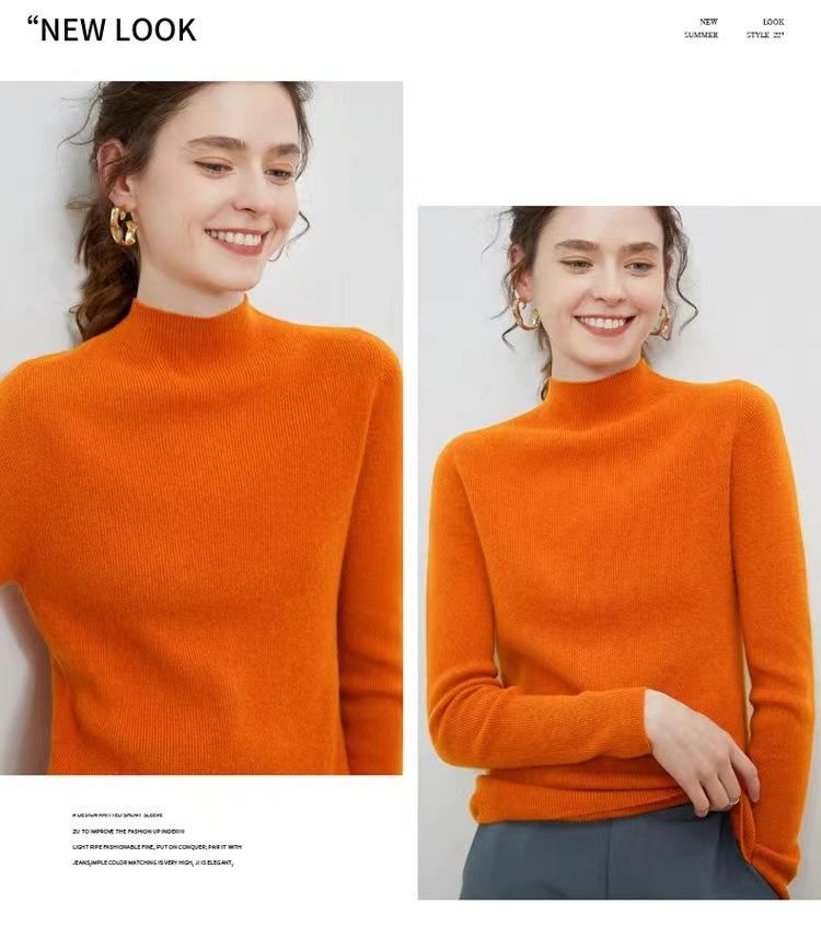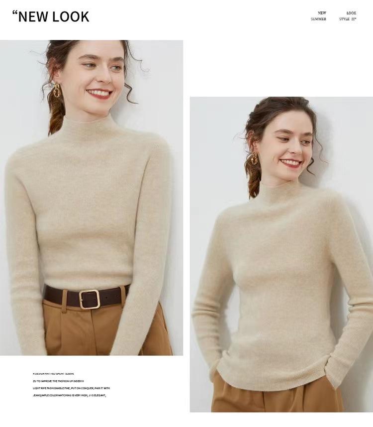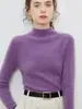 Suéter de cuello alto medio para mujer 100% lana pura ropa de primera línea corte ajustado cachemira tejido fondo ajustado suéter interior