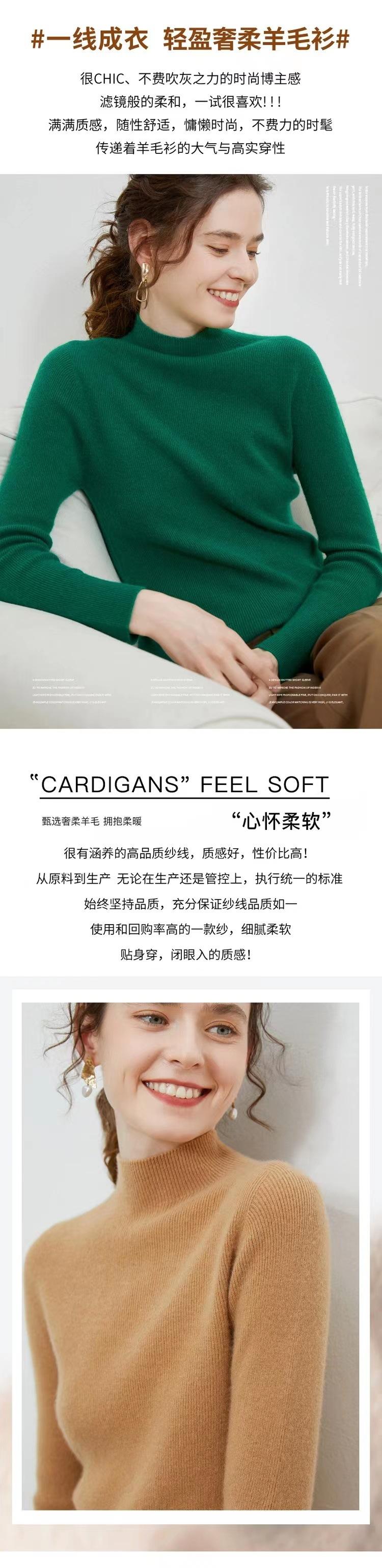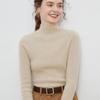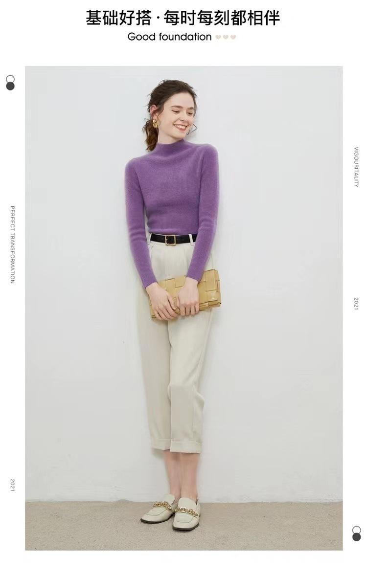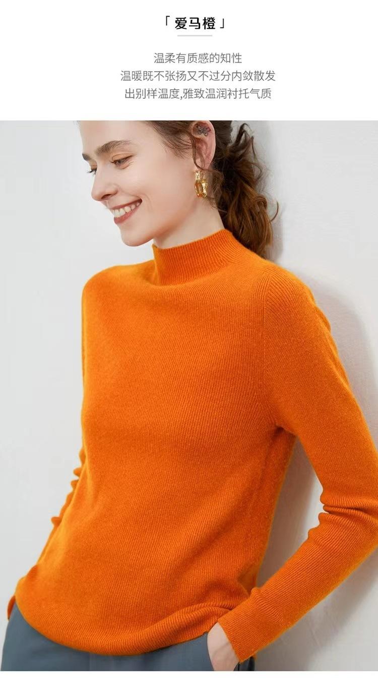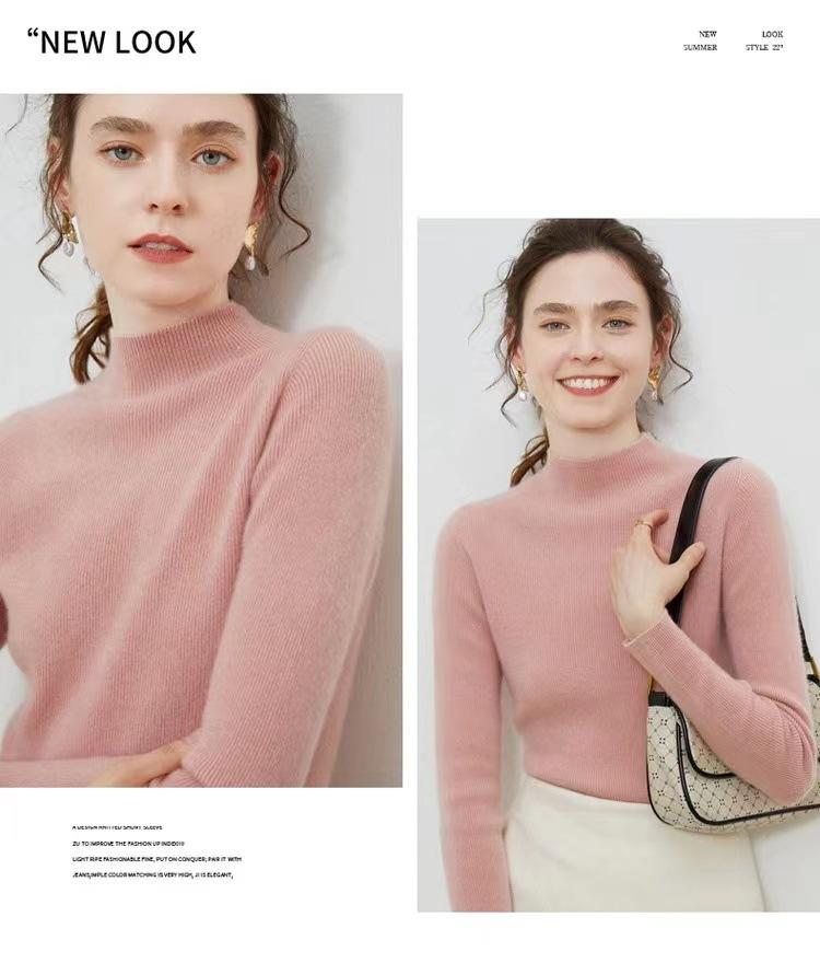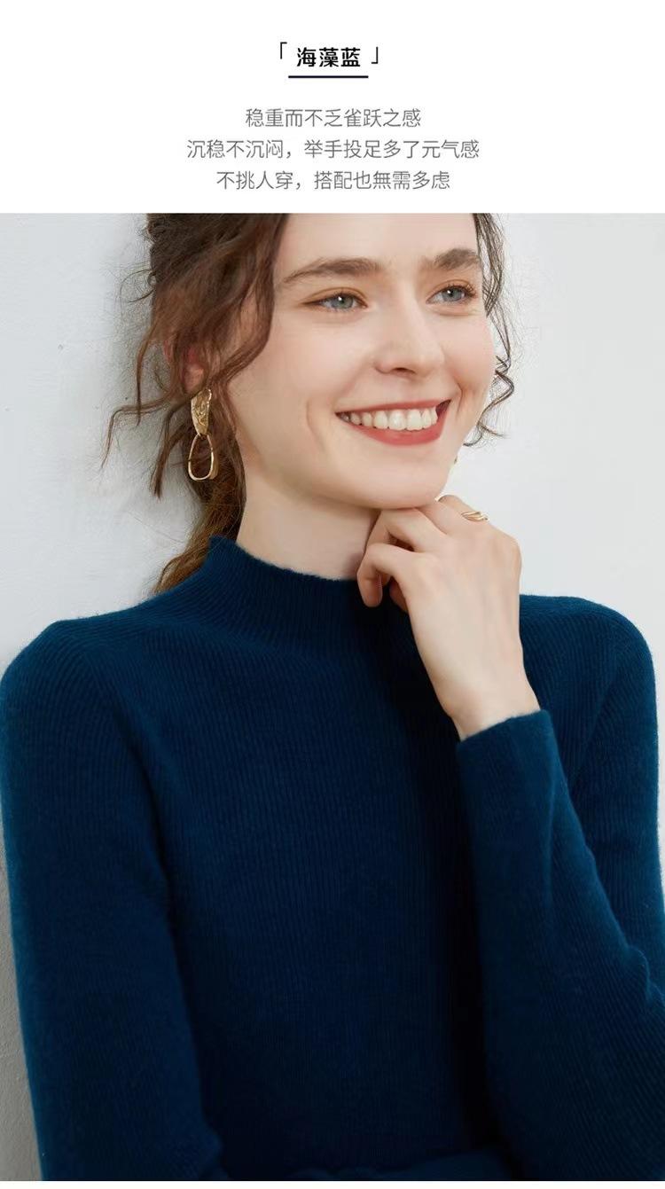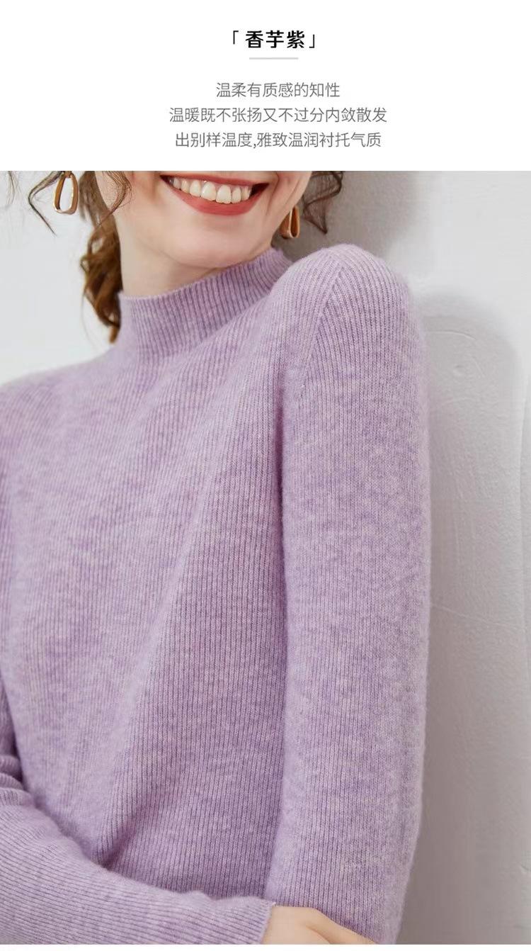 Suéter de cuello alto medio para mujer 100% lana pura ropa de primera línea corte ajustado cachemira tejido fondo ajustado suéter interior