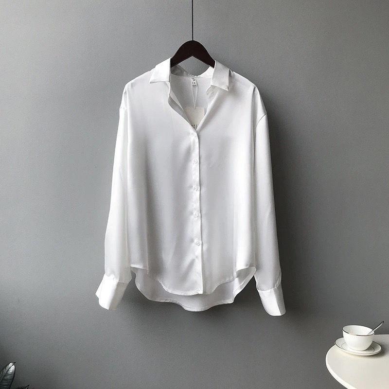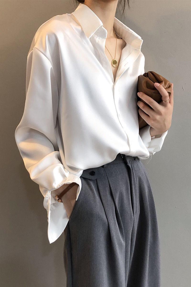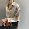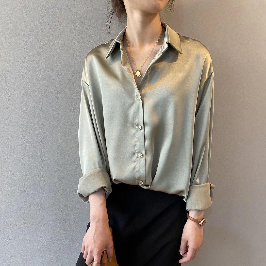 Camisa blanca para mujer, diseño de otoño e invierno, camisa de satén con sentido del estilo retro de Hong Kong, elegante blusa drapeada de manga larga