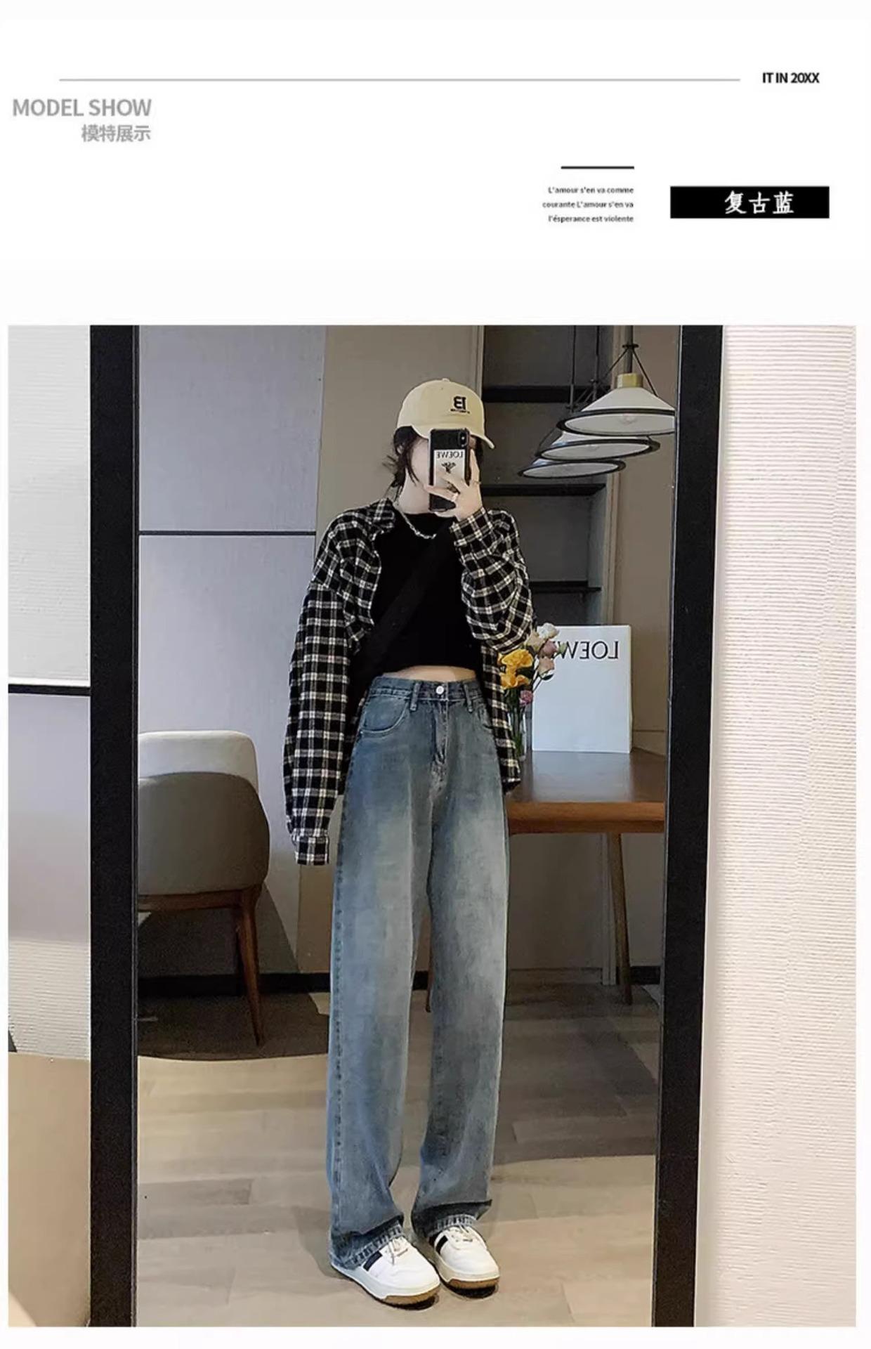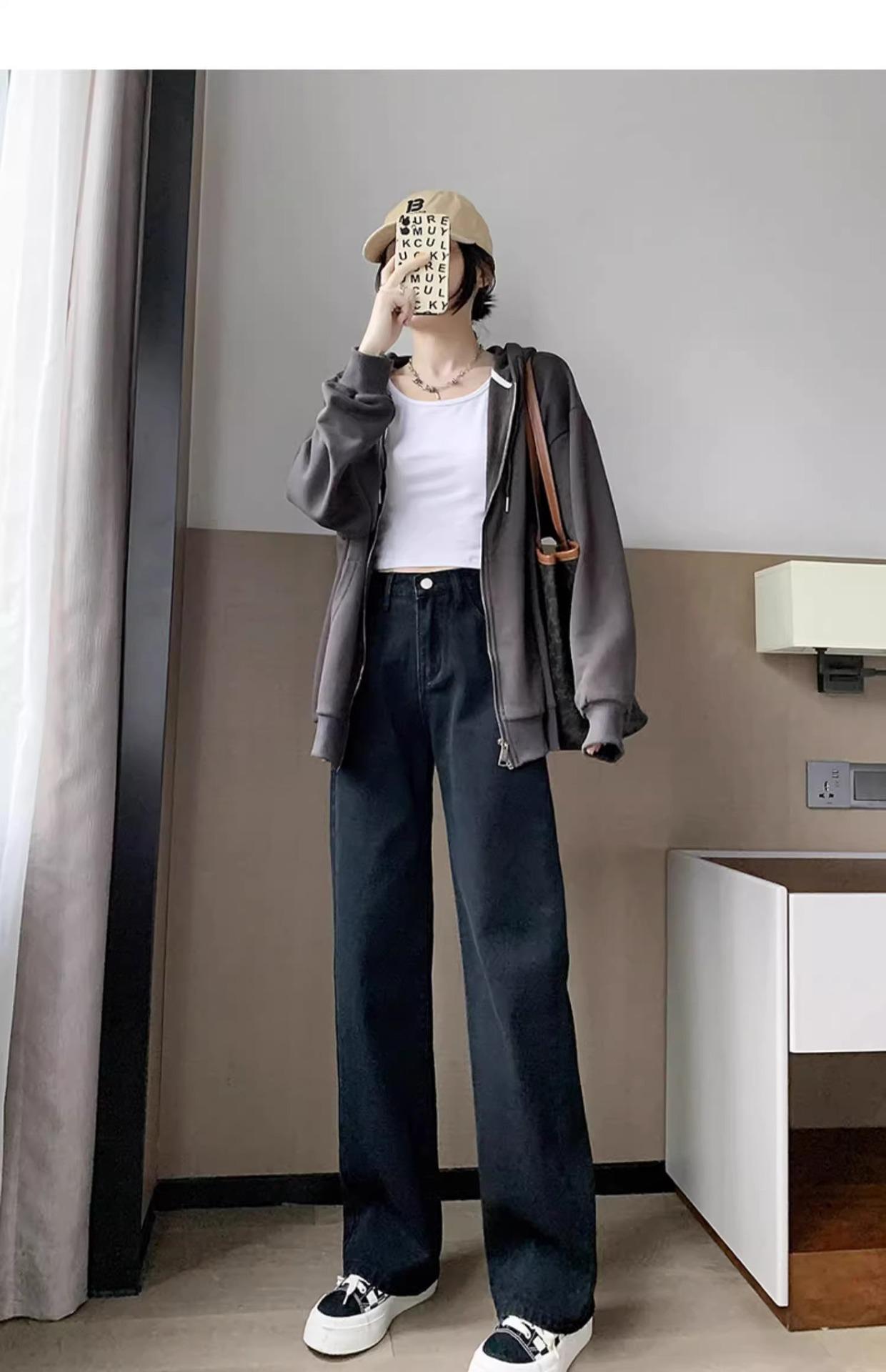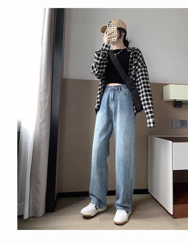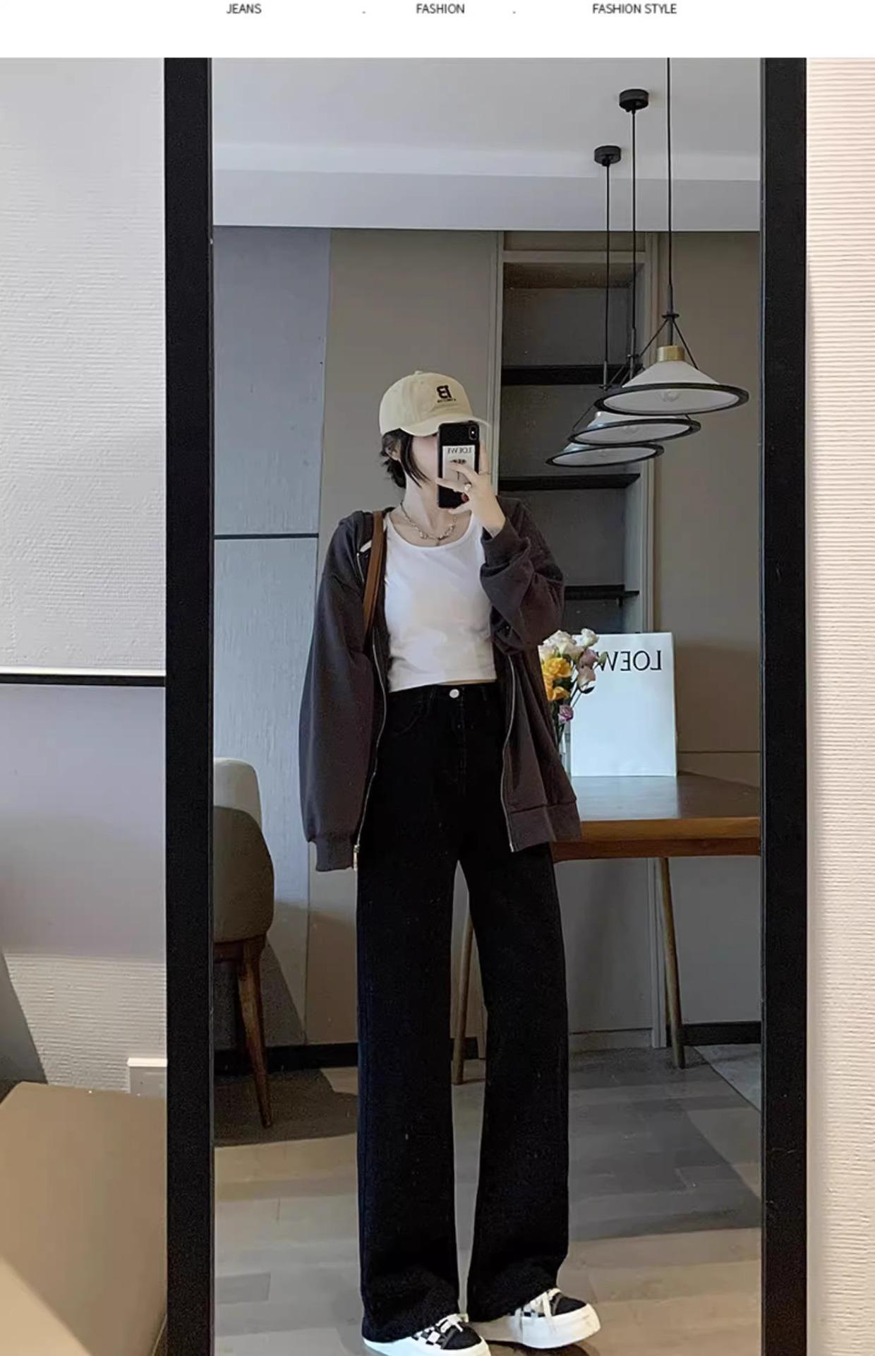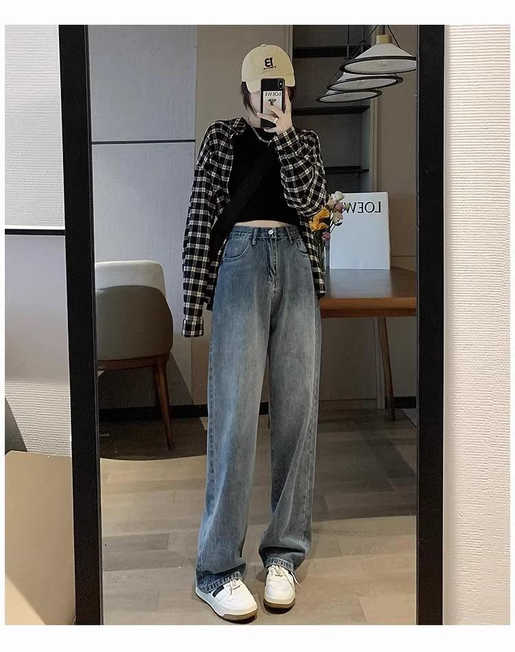 Pantalones vaqueros sencillos de talla grande para mujer, modernos, combinables con todo, de cintura alta, informales, rectos y adelgazantes, para otoño