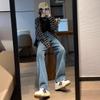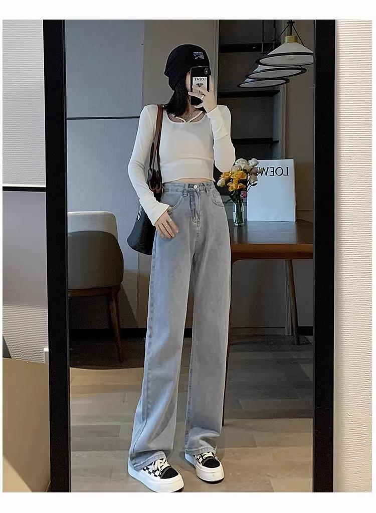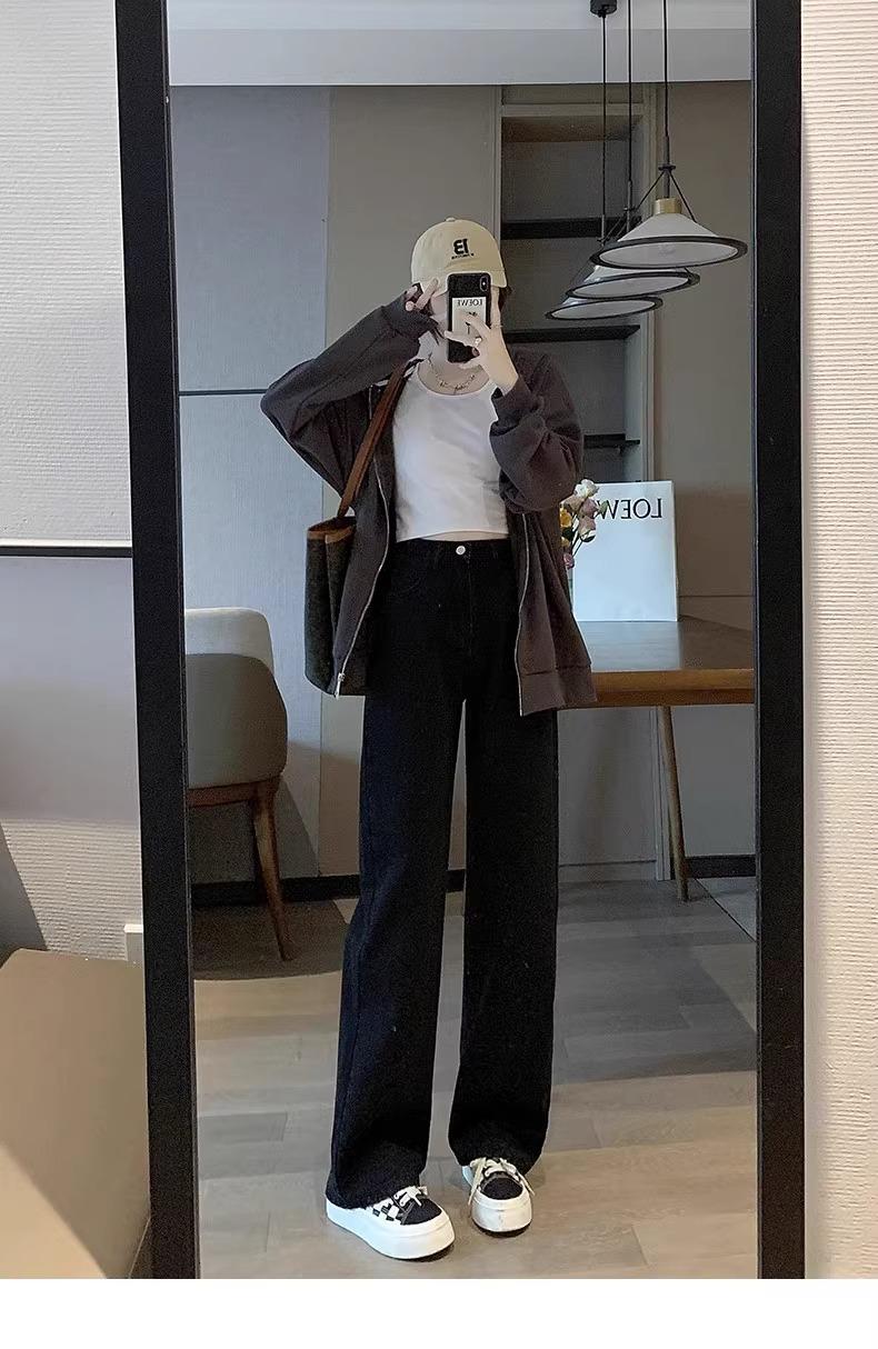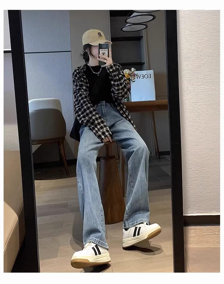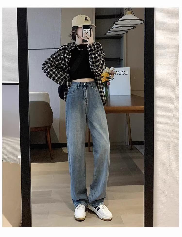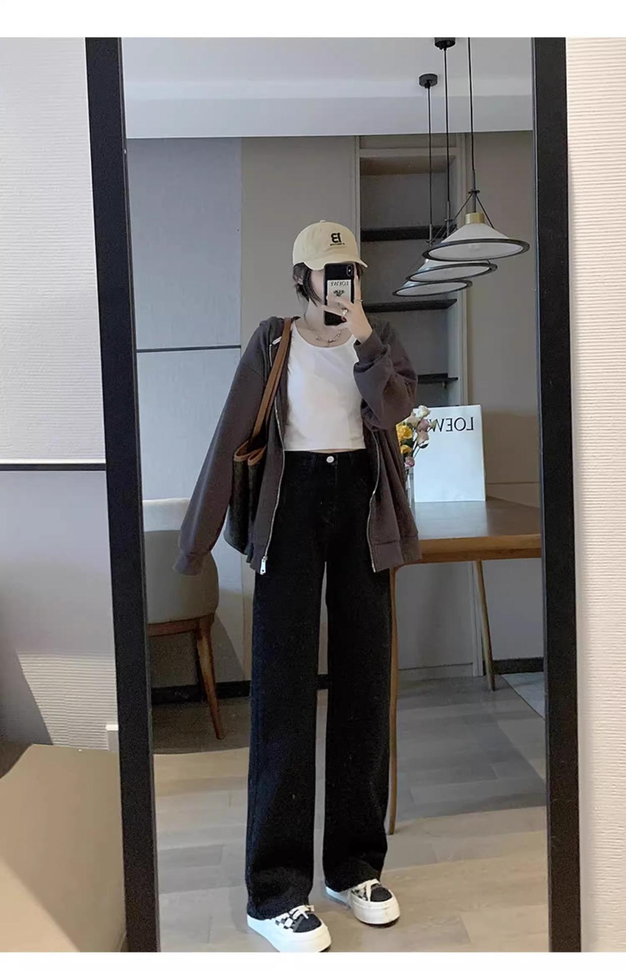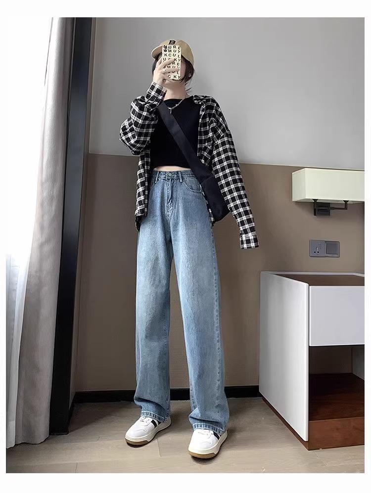 Pantalones vaqueros sencillos de talla grande para mujer, modernos, combinables con todo, de cintura alta, informales, rectos y adelgazantes, para otoño