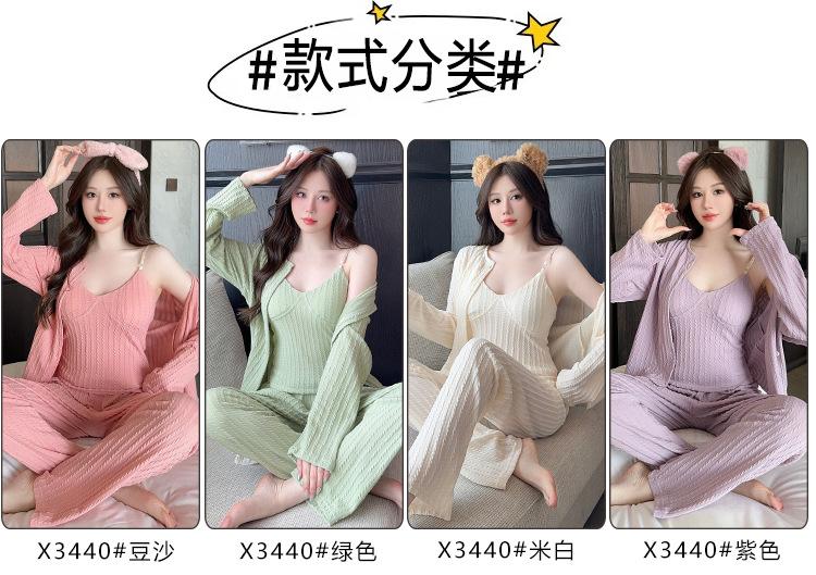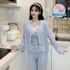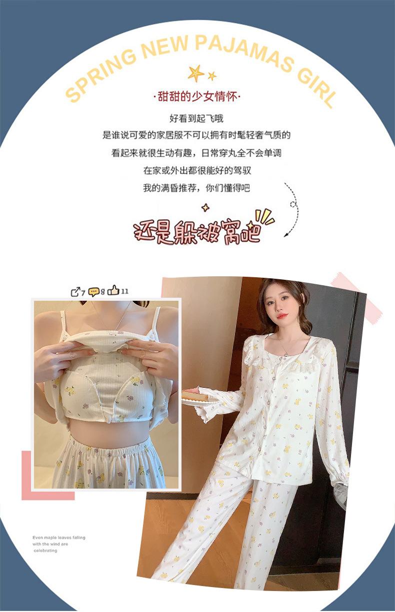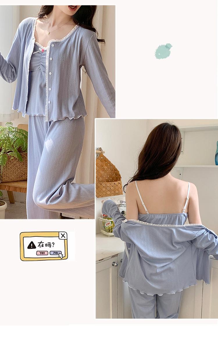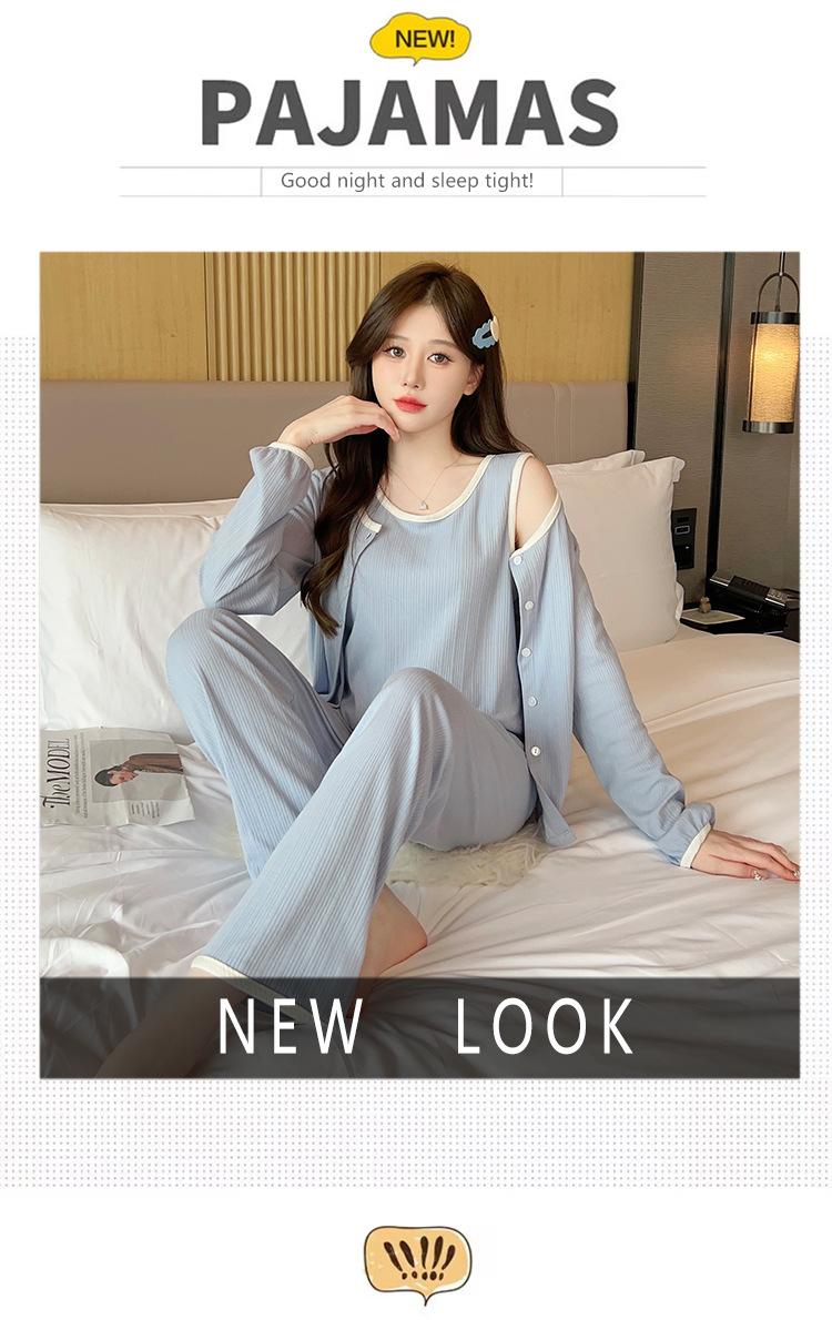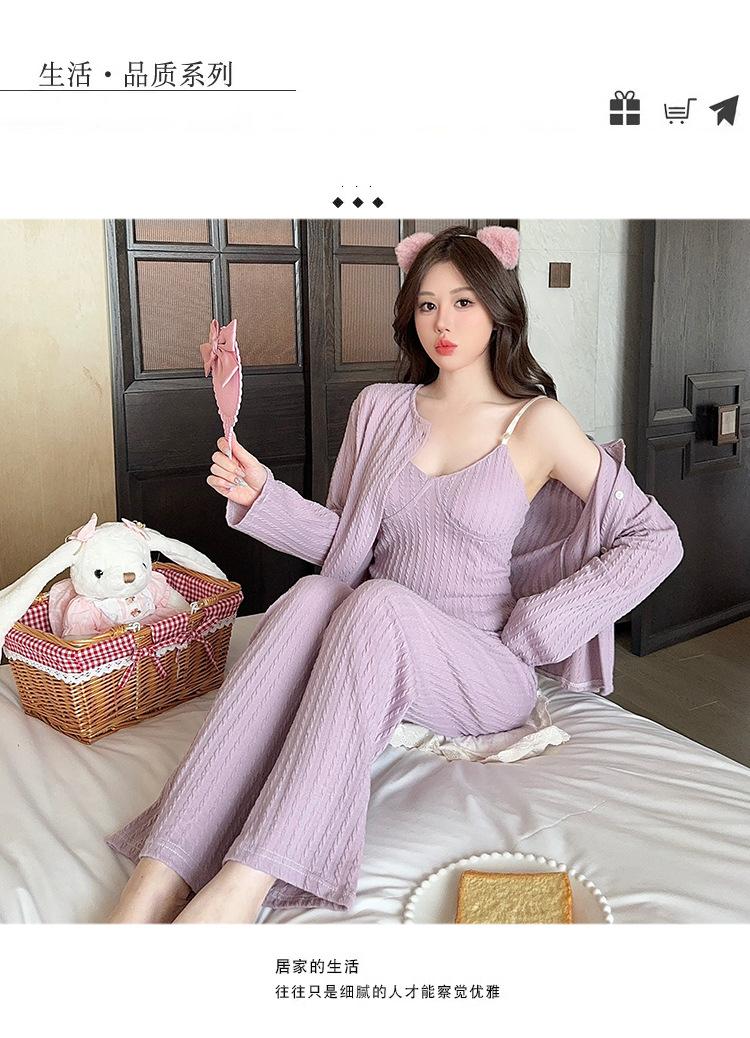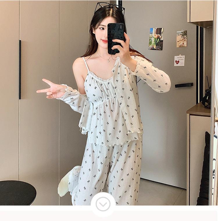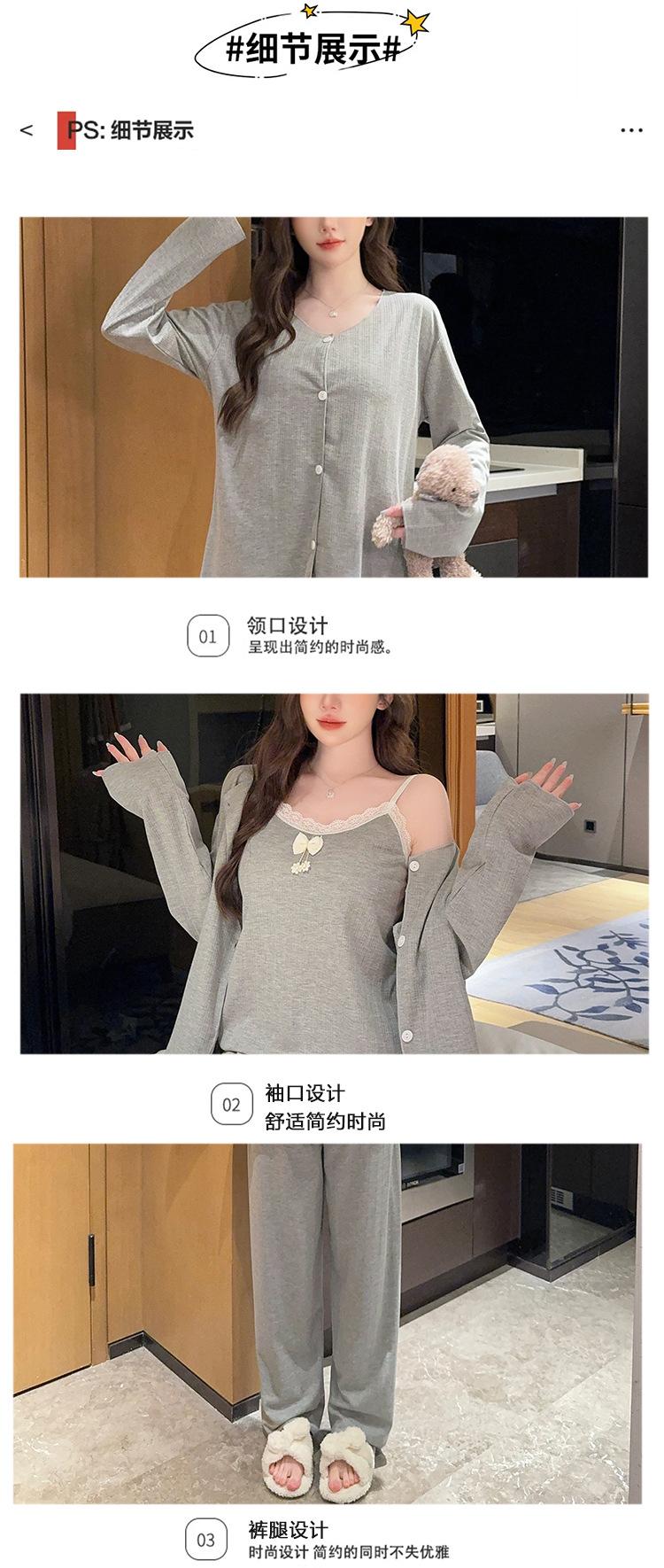 Conjunto nuevo de tres piezas para primavera y verano 2025 6535 Algodón con chaleco desmontable con almohadilla en el pecho + mangas largas + pantalones Pijama de mujer