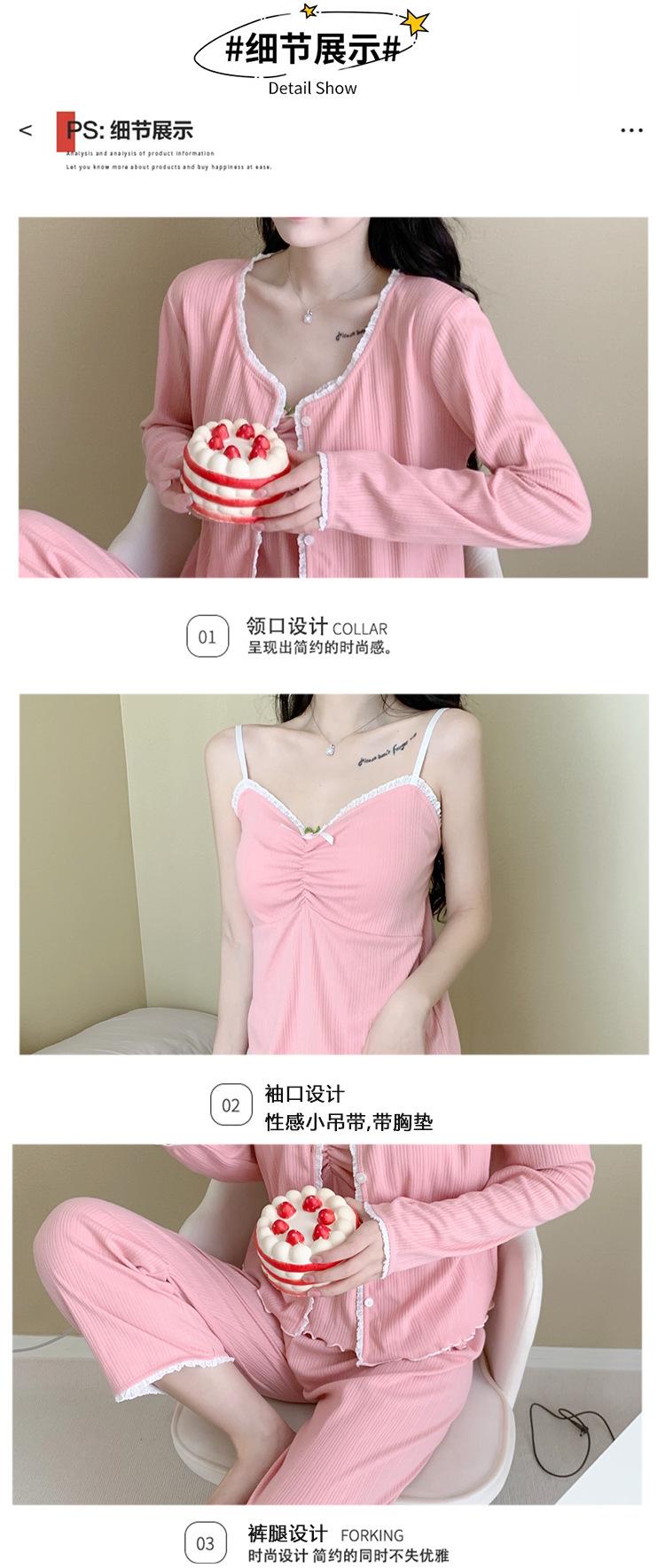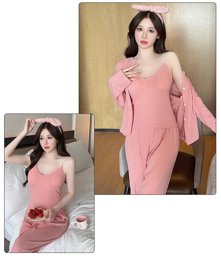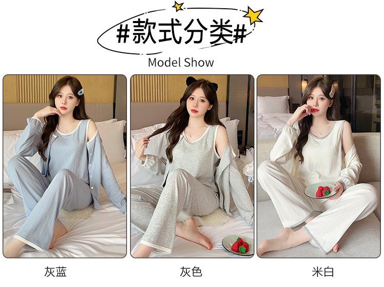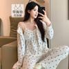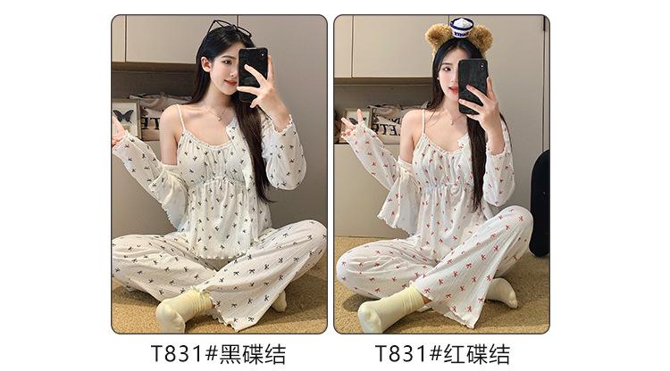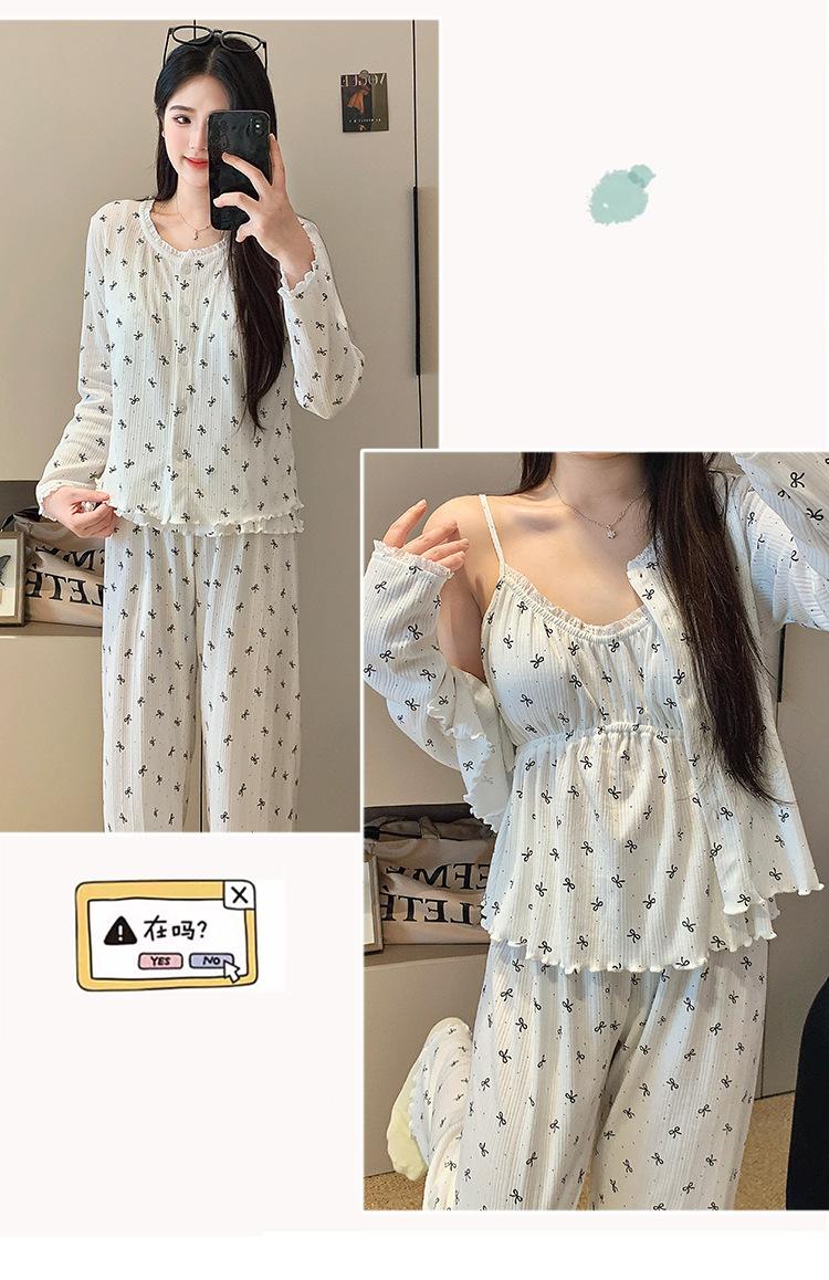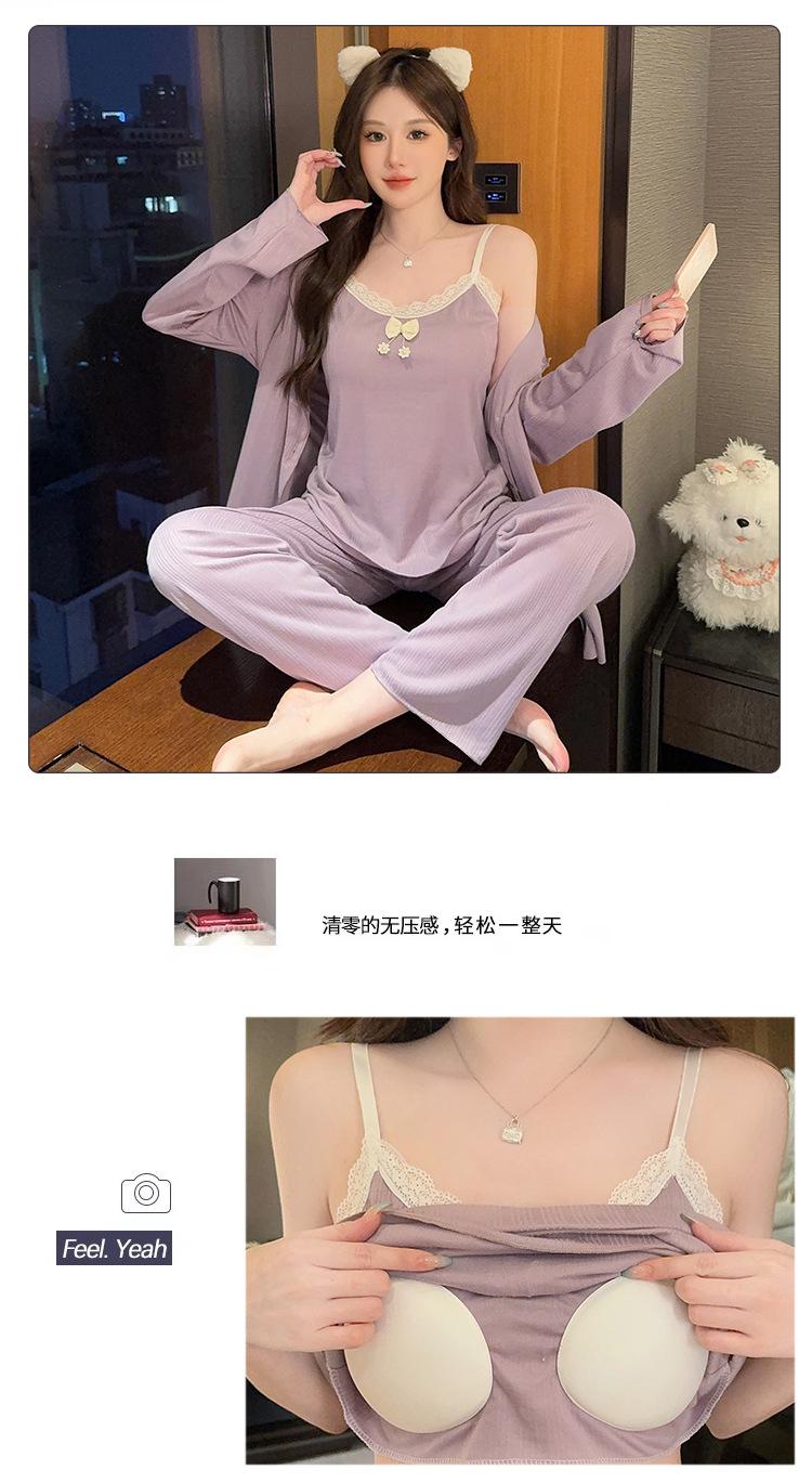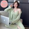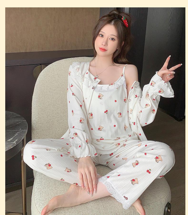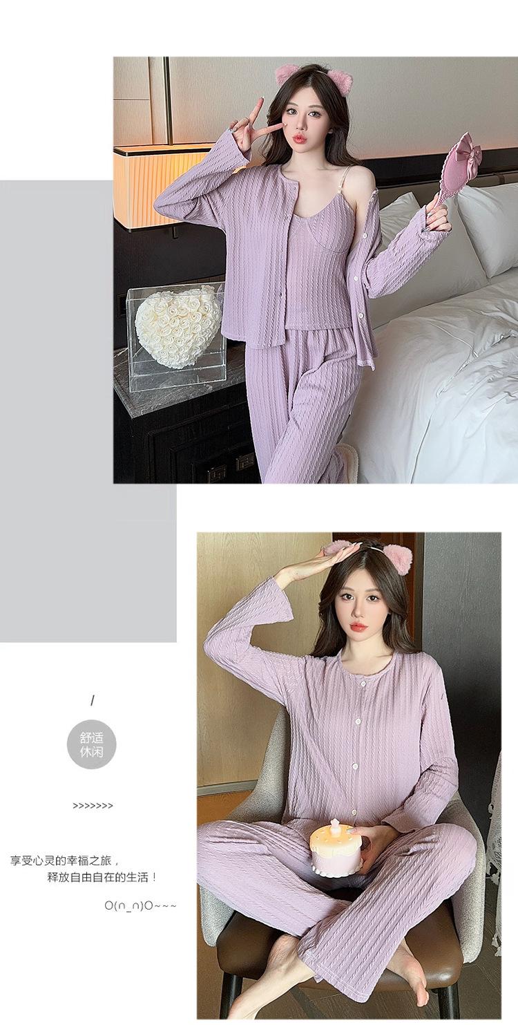 Conjunto nuevo de tres piezas para primavera y verano 2025 6535 Algodón con chaleco desmontable con almohadilla en el pecho + mangas largas + pantalones Pijama de mujer