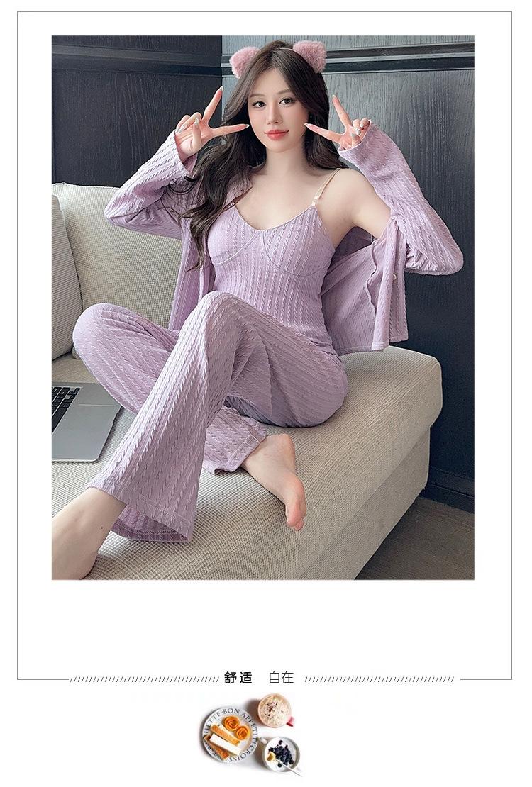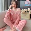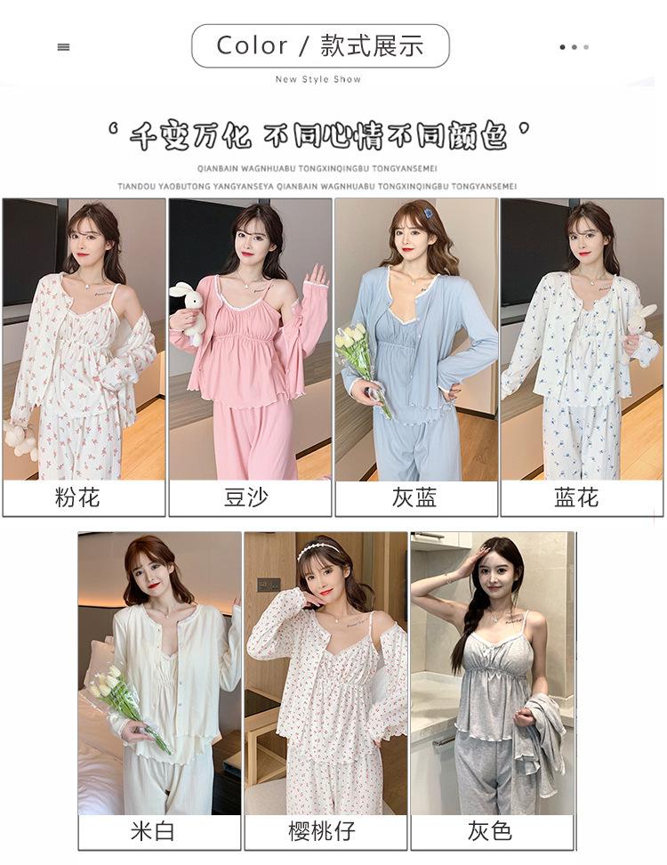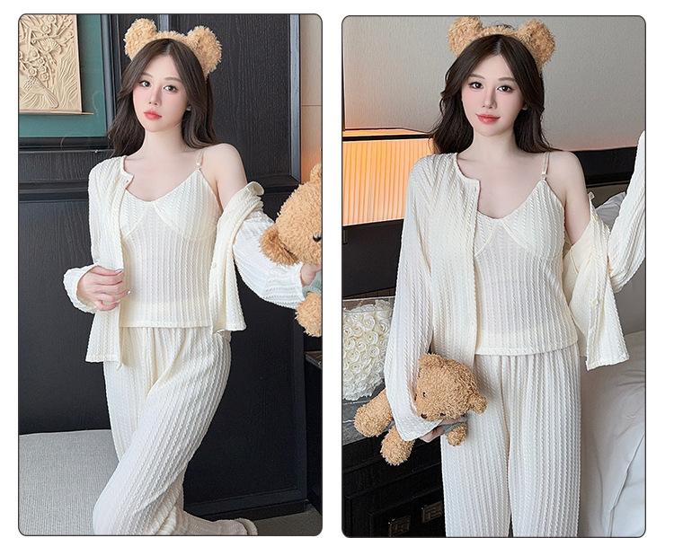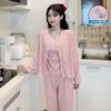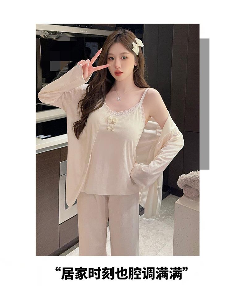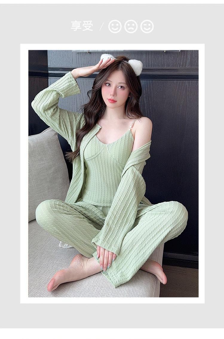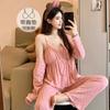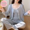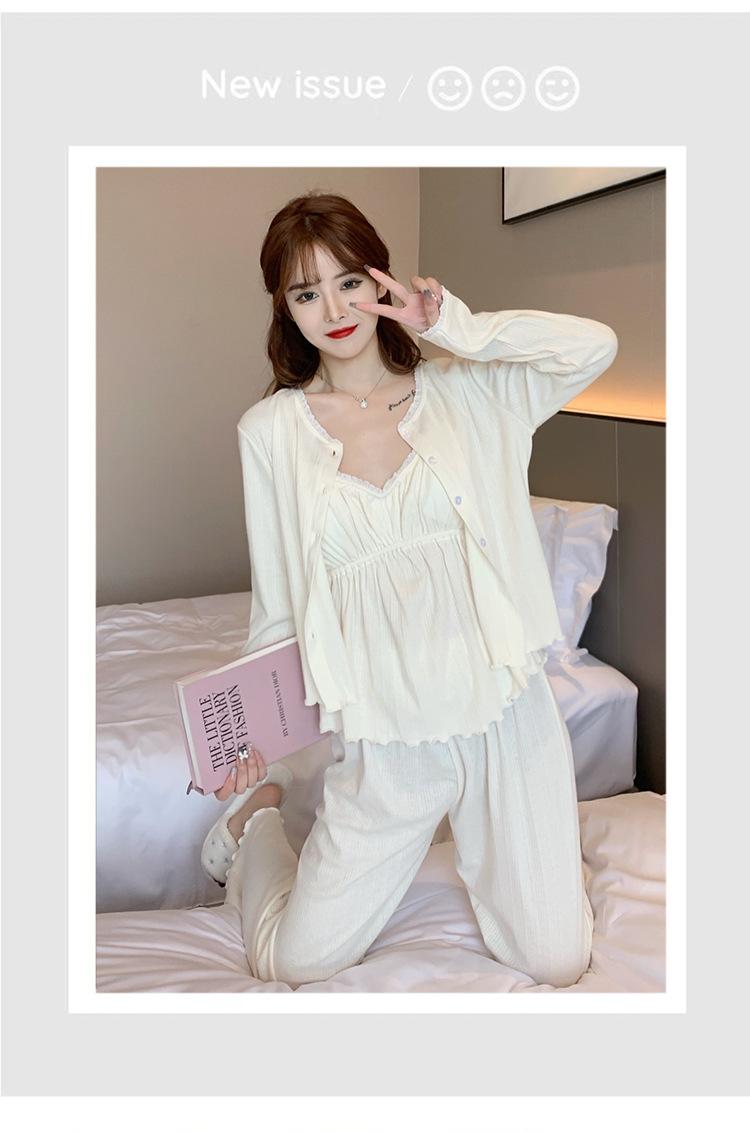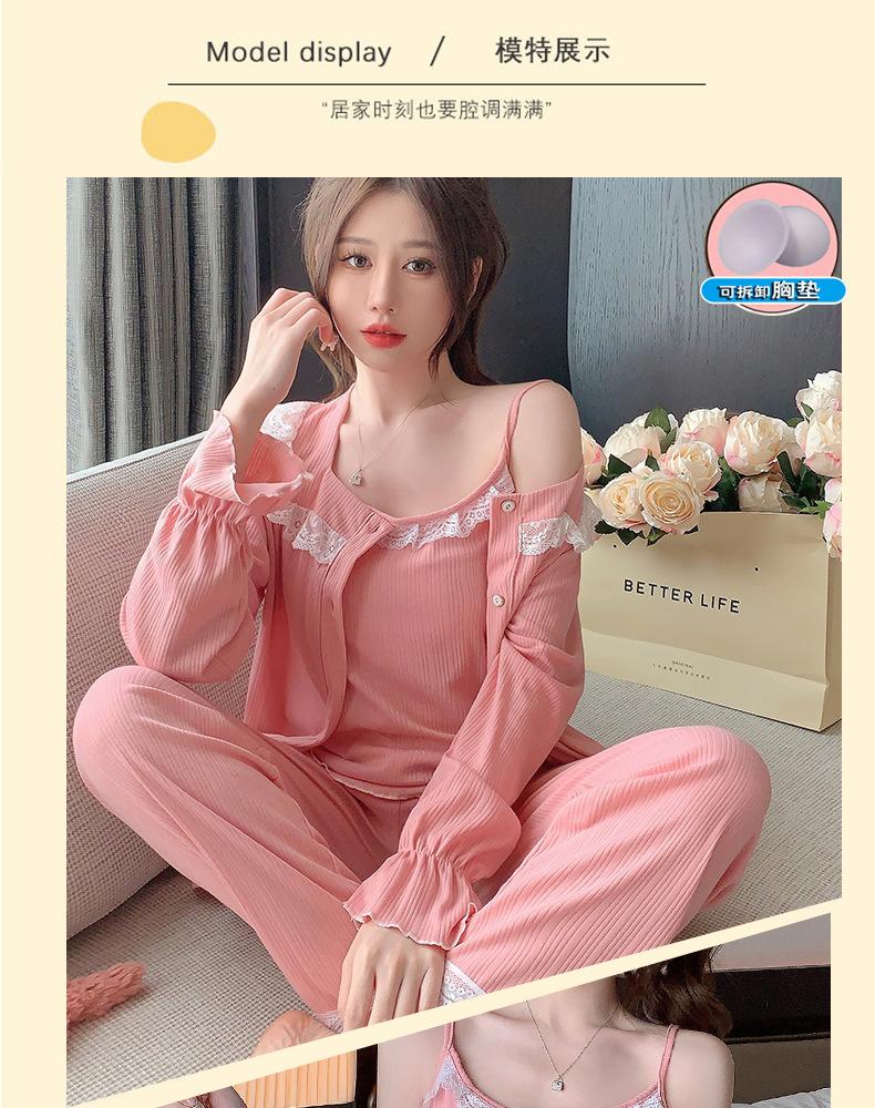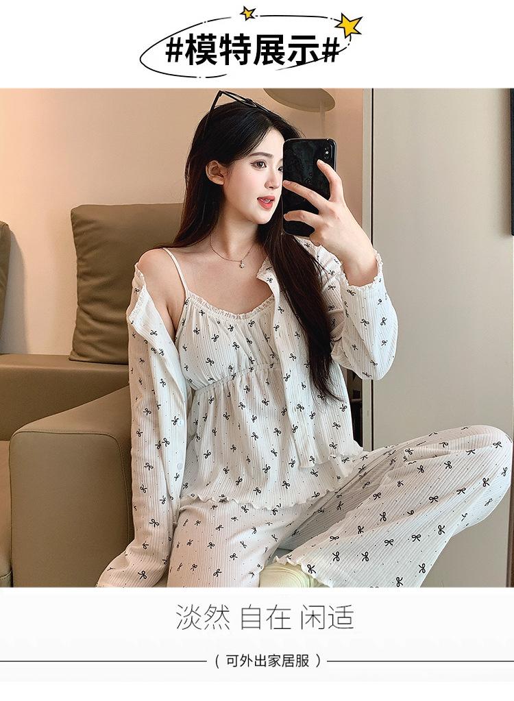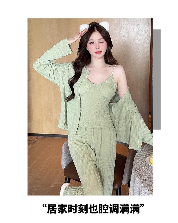 Conjunto nuevo de tres piezas para primavera y verano 2025 6535 Algodón con chaleco desmontable con almohadilla en el pecho + mangas largas + pantalones Pijama de mujer