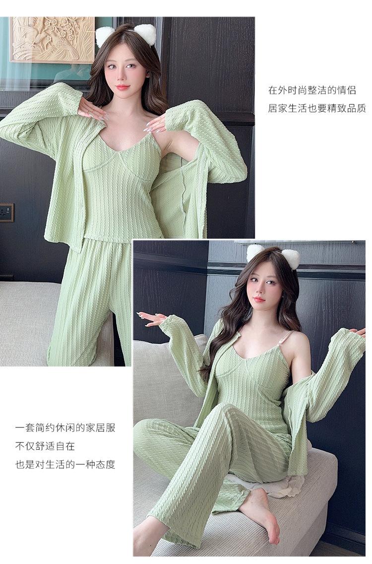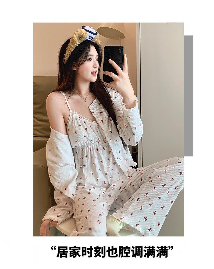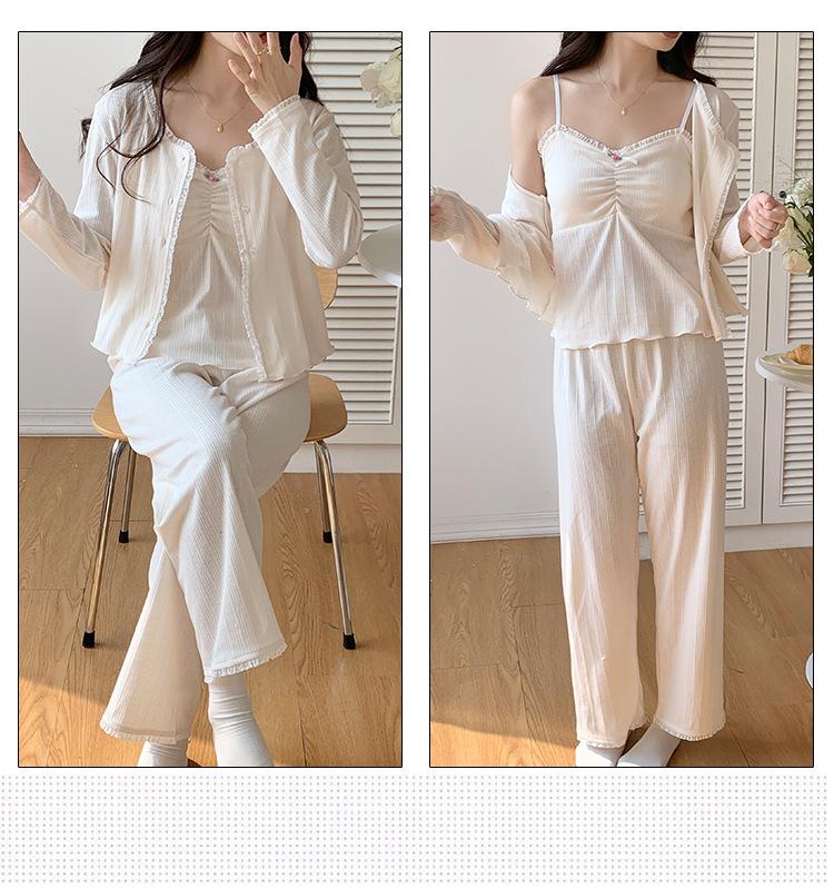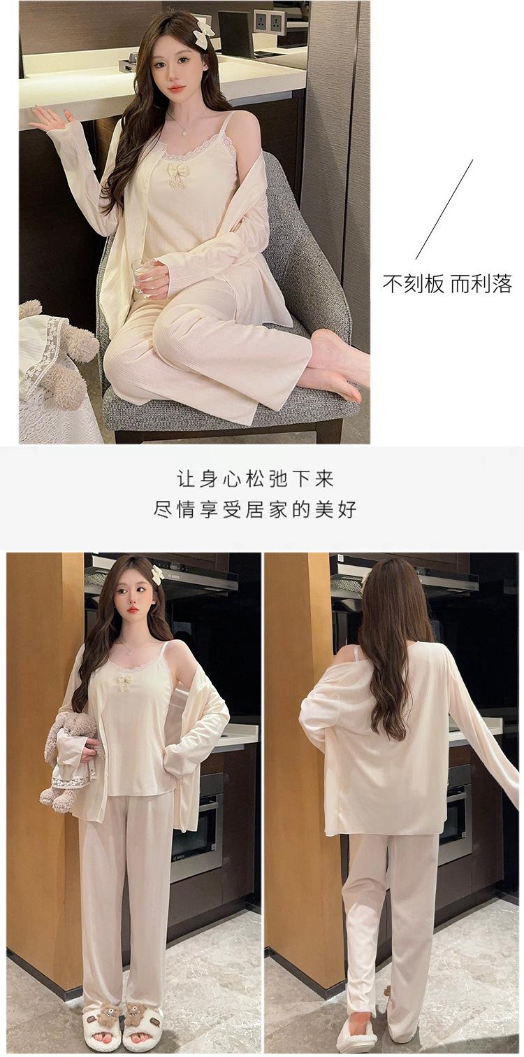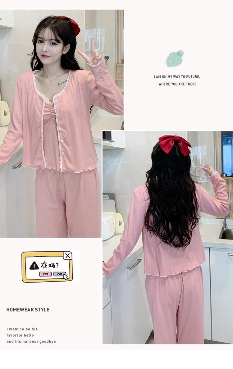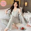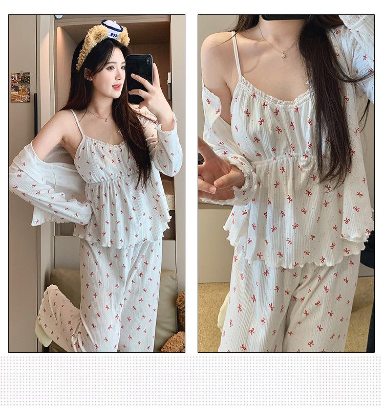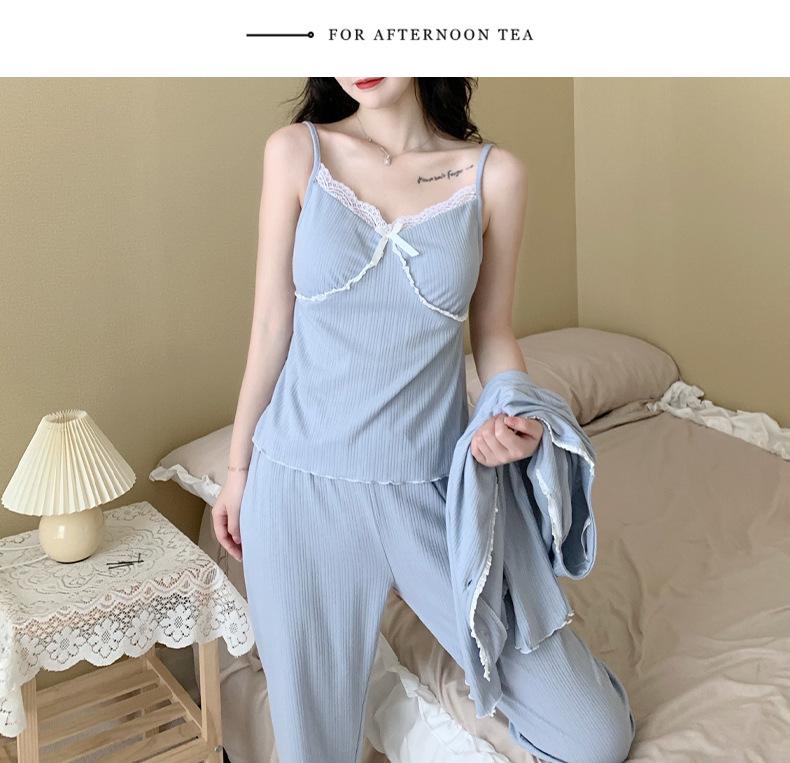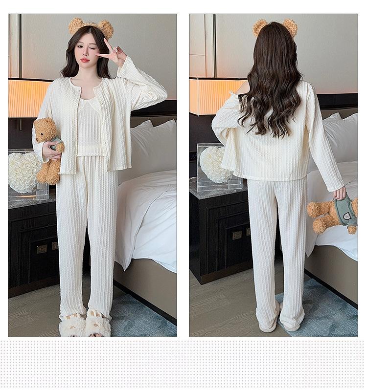 Conjunto nuevo de tres piezas para primavera y verano 2025 6535 Algodón con chaleco desmontable con almohadilla en el pecho + mangas largas + pantalones Pijama de mujer