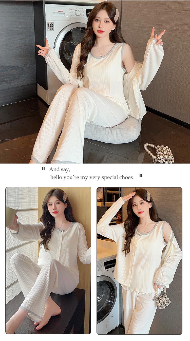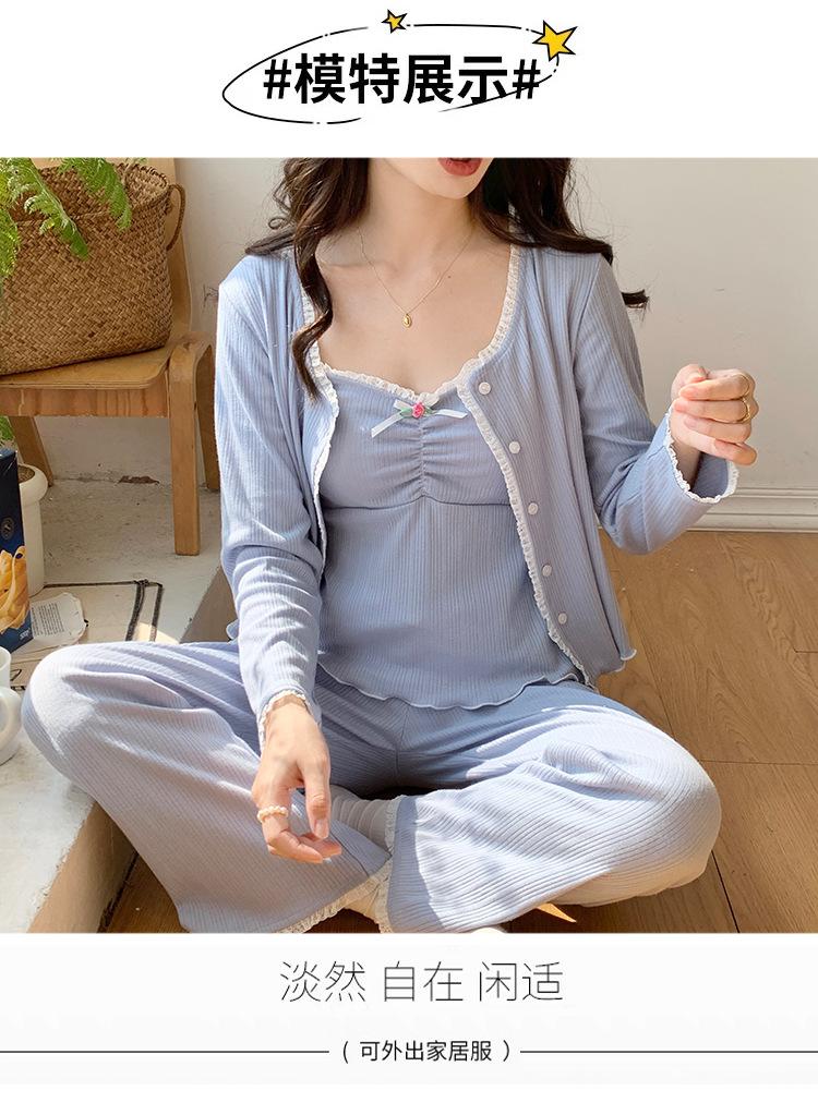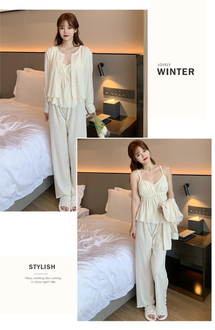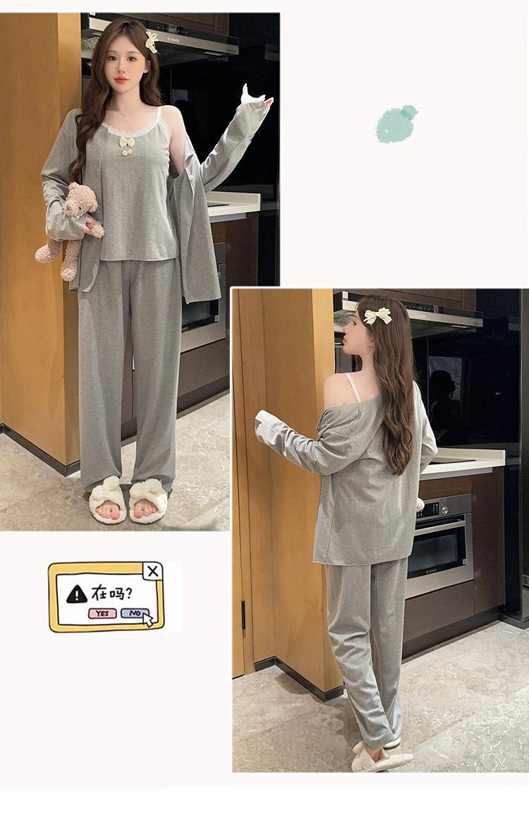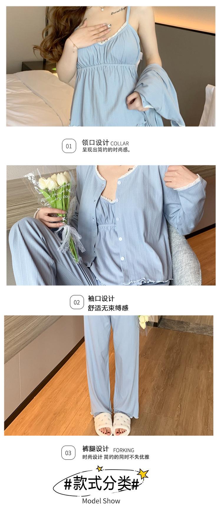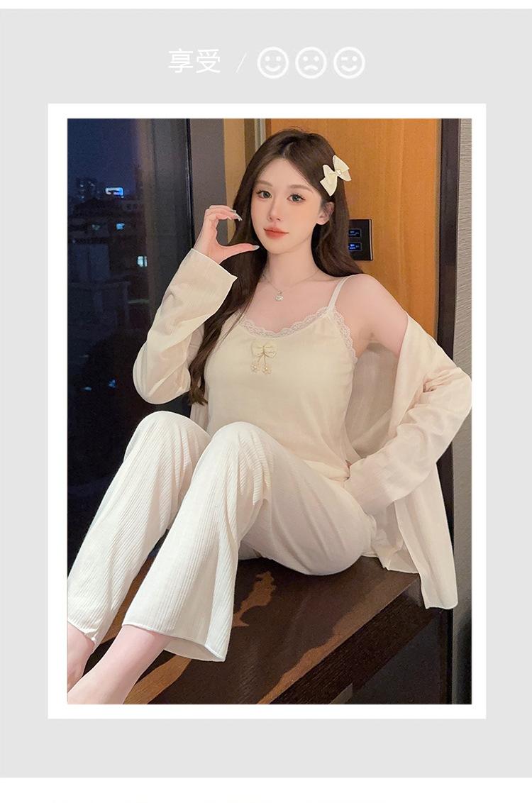 Conjunto nuevo de tres piezas para primavera y verano 2025 6535 Algodón con chaleco desmontable con almohadilla en el pecho + mangas largas + pantalones Pijama de mujer