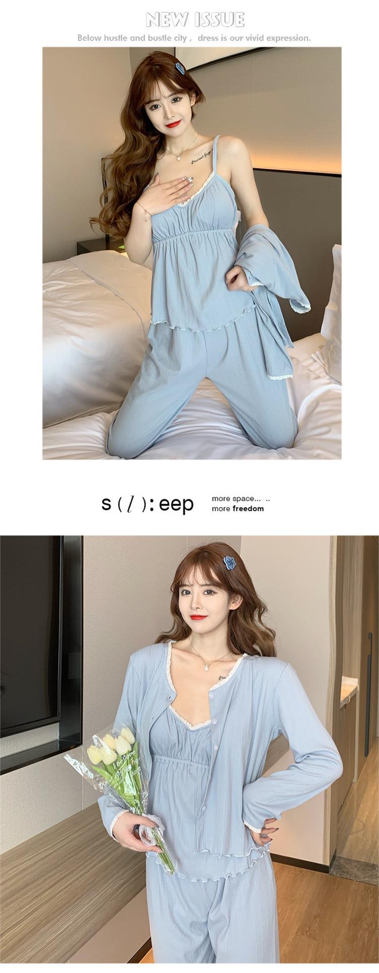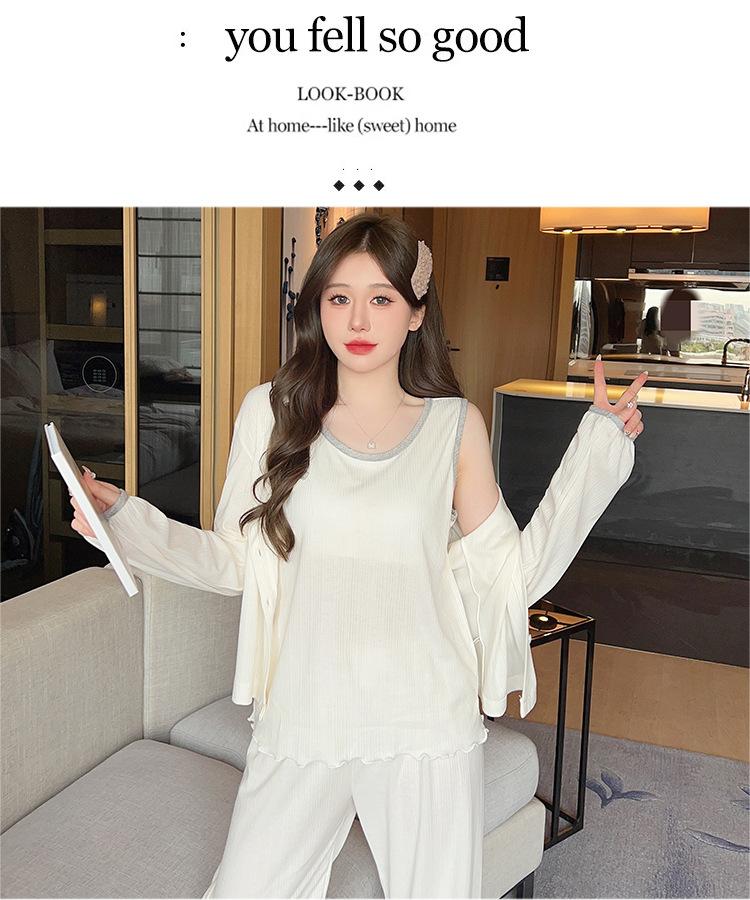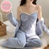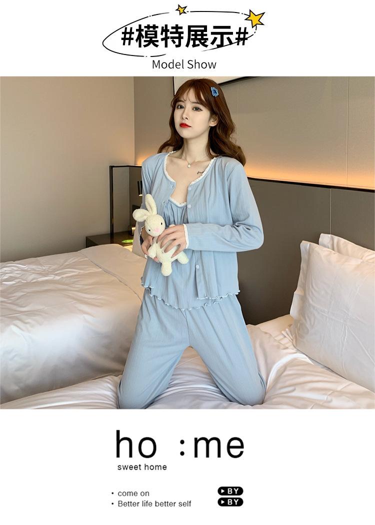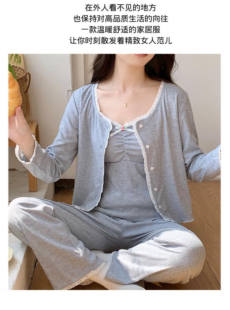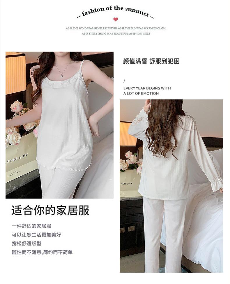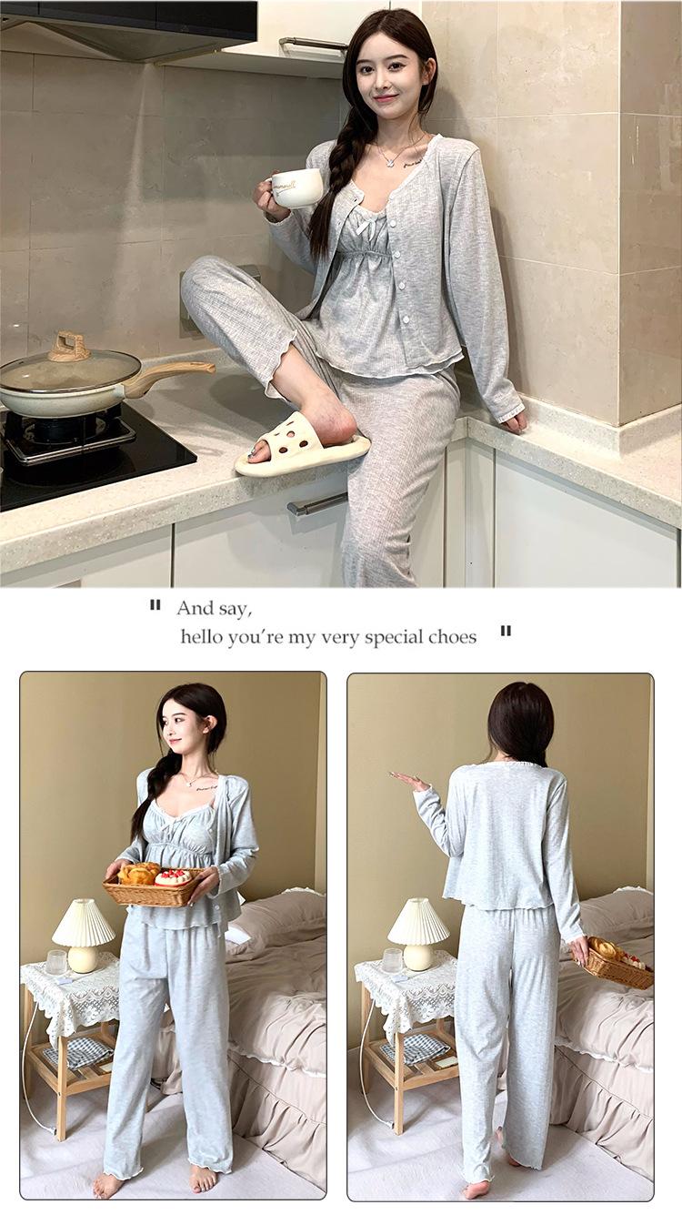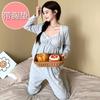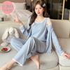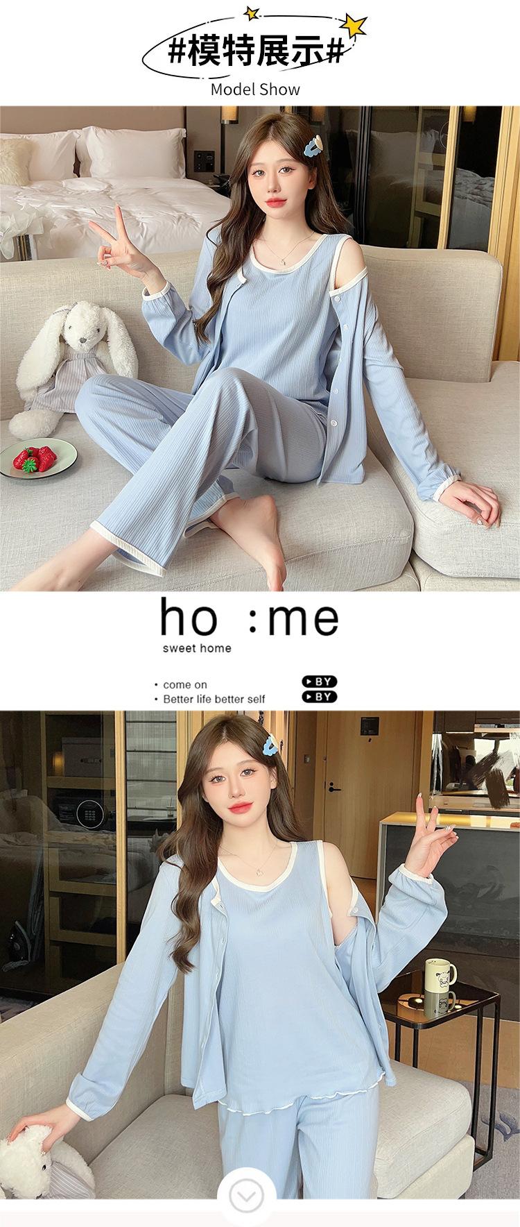 Conjunto nuevo de tres piezas para primavera y verano 2025 6535 Algodón con chaleco desmontable con almohadilla en el pecho + mangas largas + pantalones Pijama de mujer