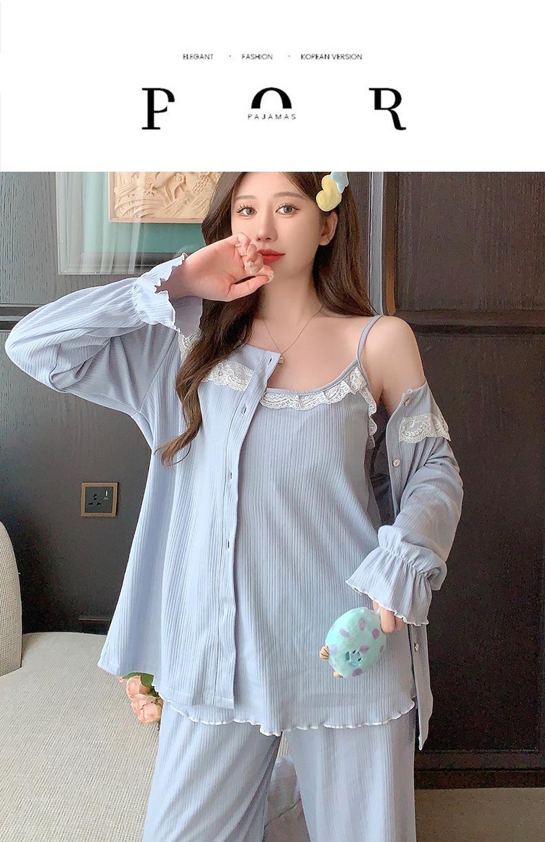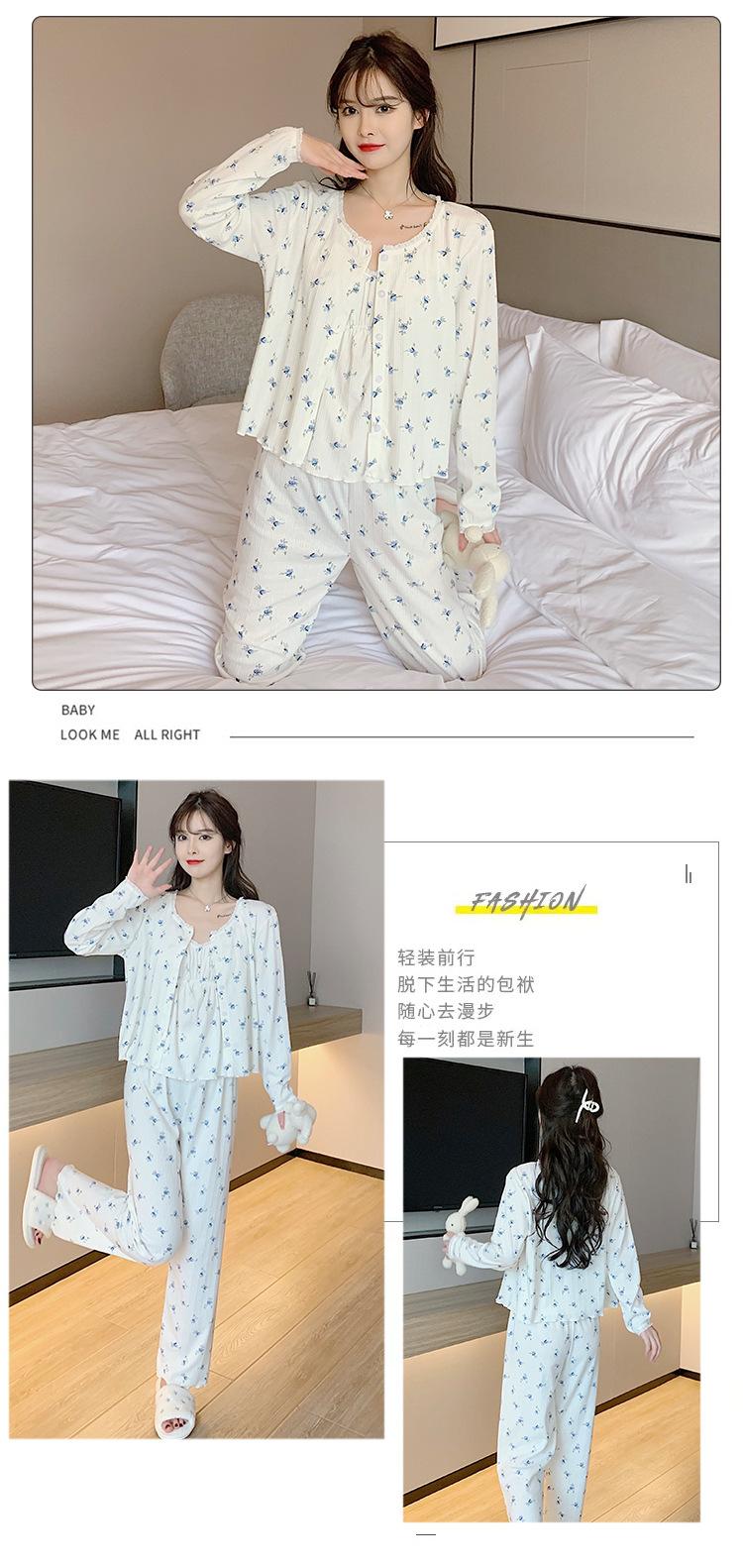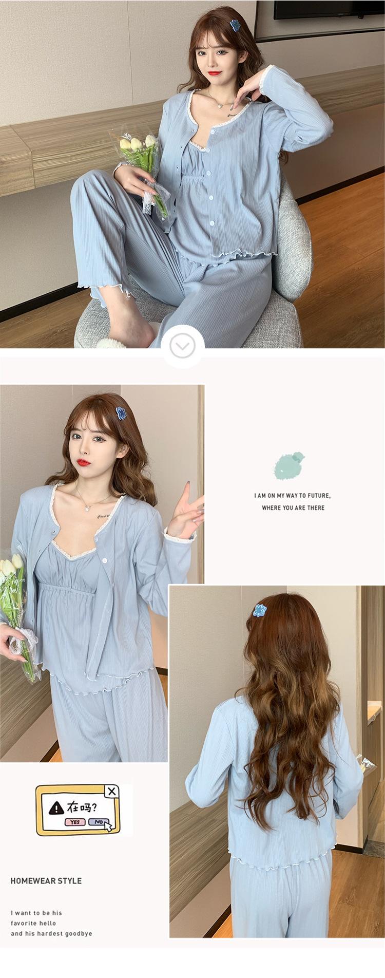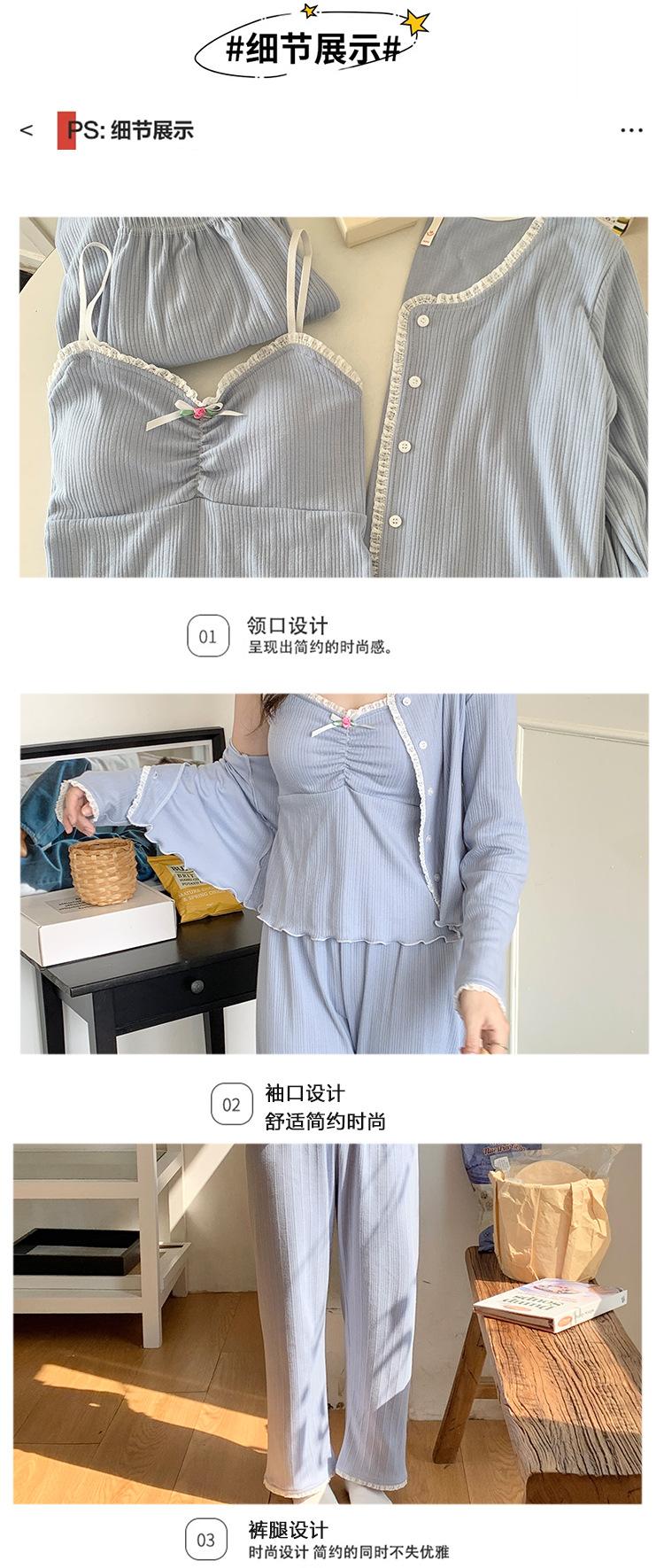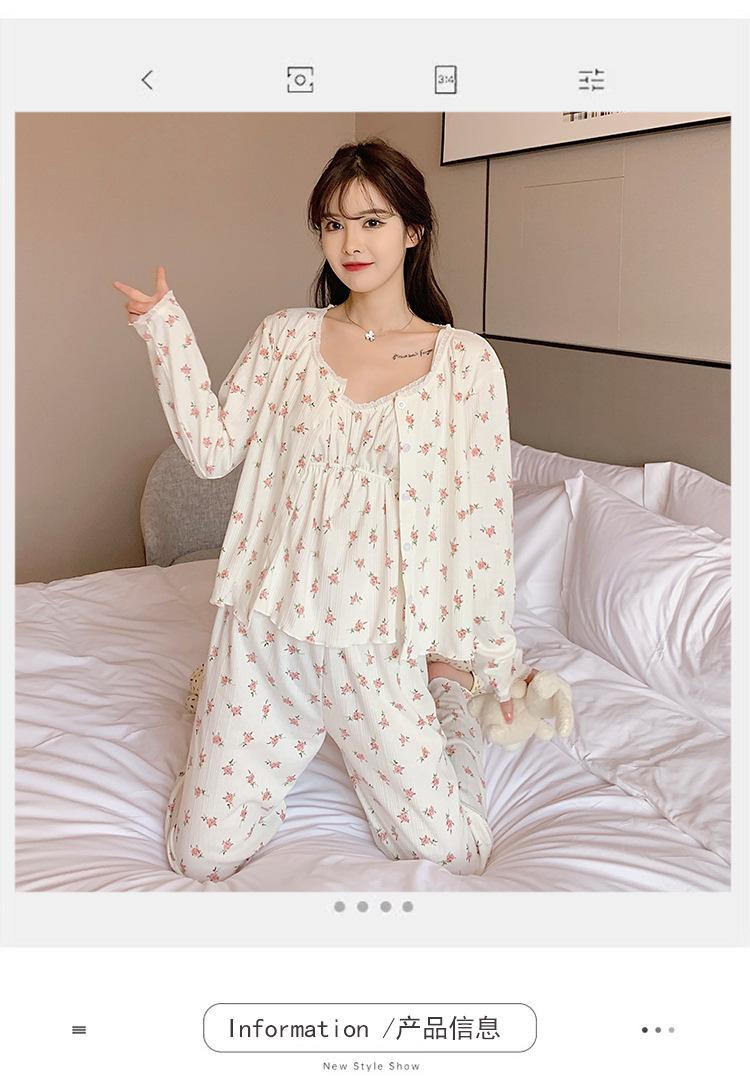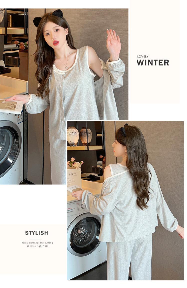 Conjunto nuevo de tres piezas para primavera y verano 2025 6535 Algodón con chaleco desmontable con almohadilla en el pecho + mangas largas + pantalones Pijama de mujer
