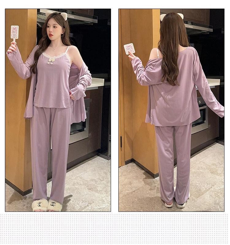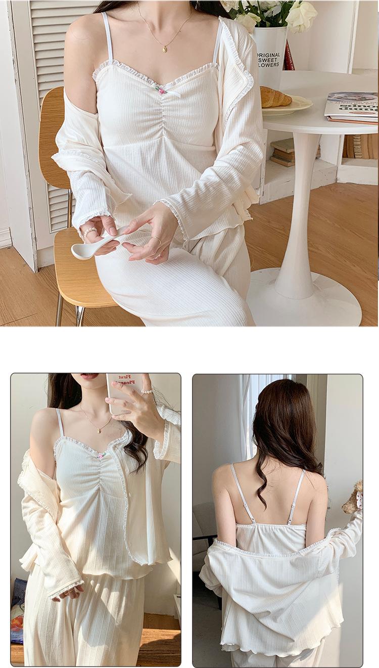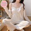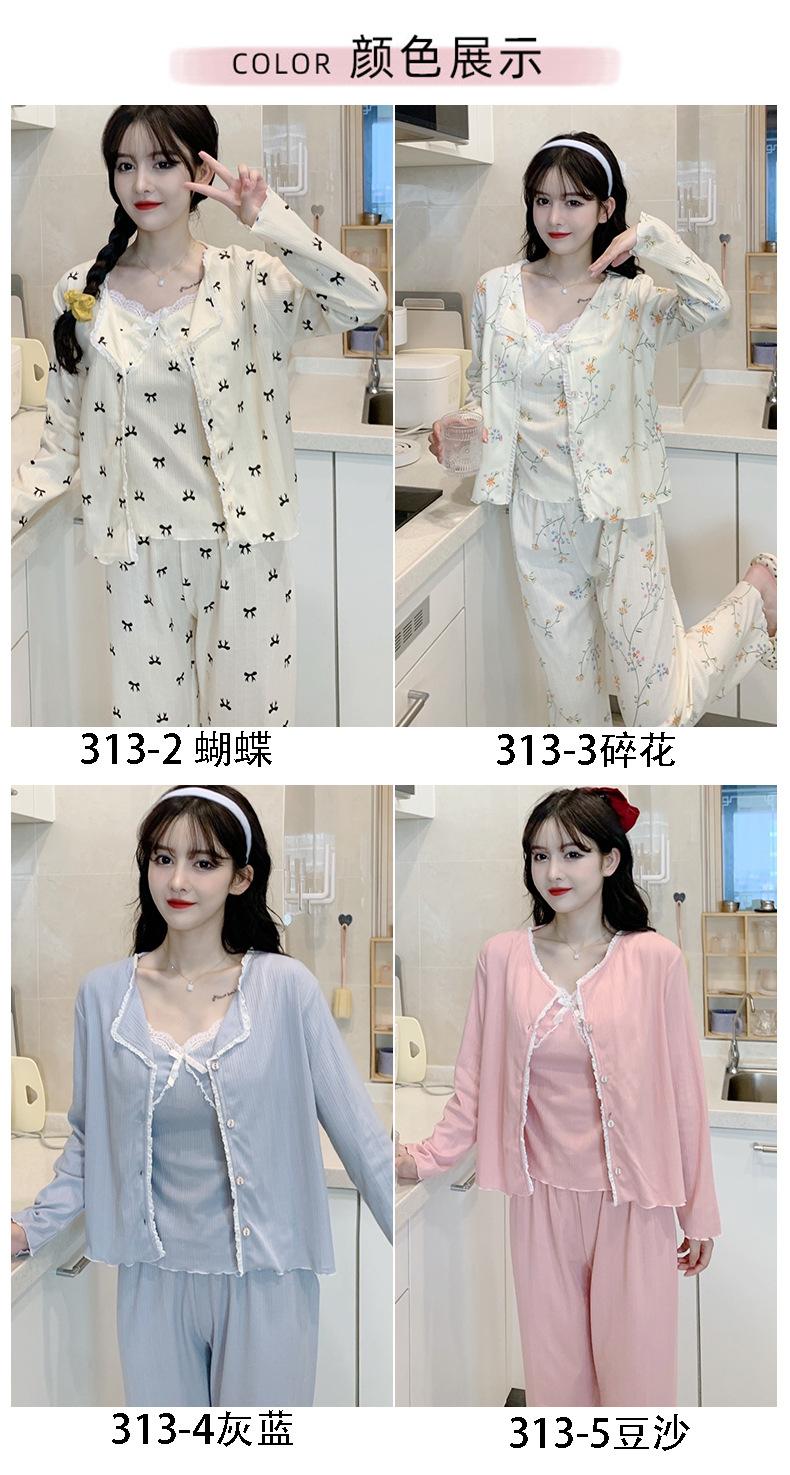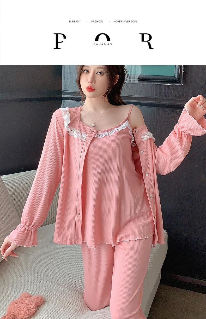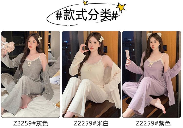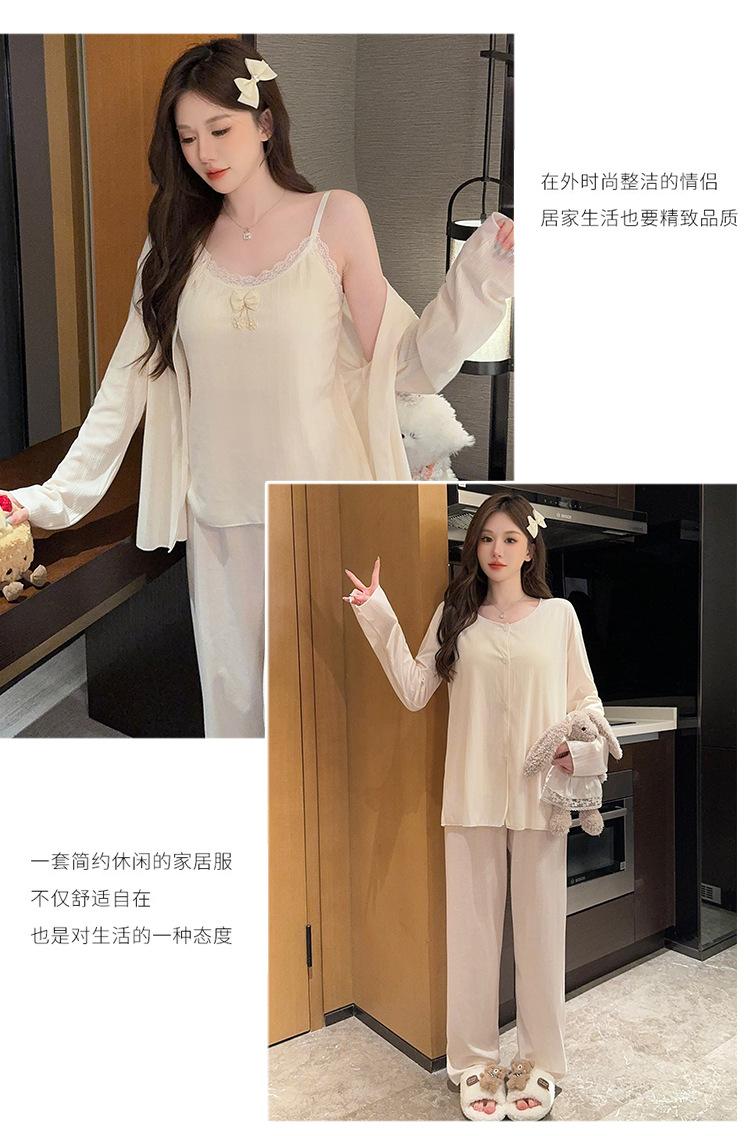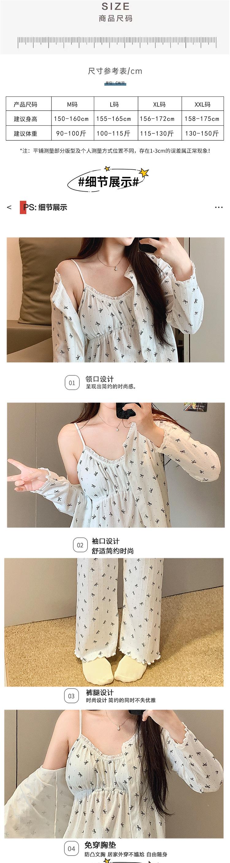 Conjunto nuevo de tres piezas para primavera y verano 2025 6535 Algodón con chaleco desmontable con almohadilla en el pecho + mangas largas + pantalones Pijama de mujer