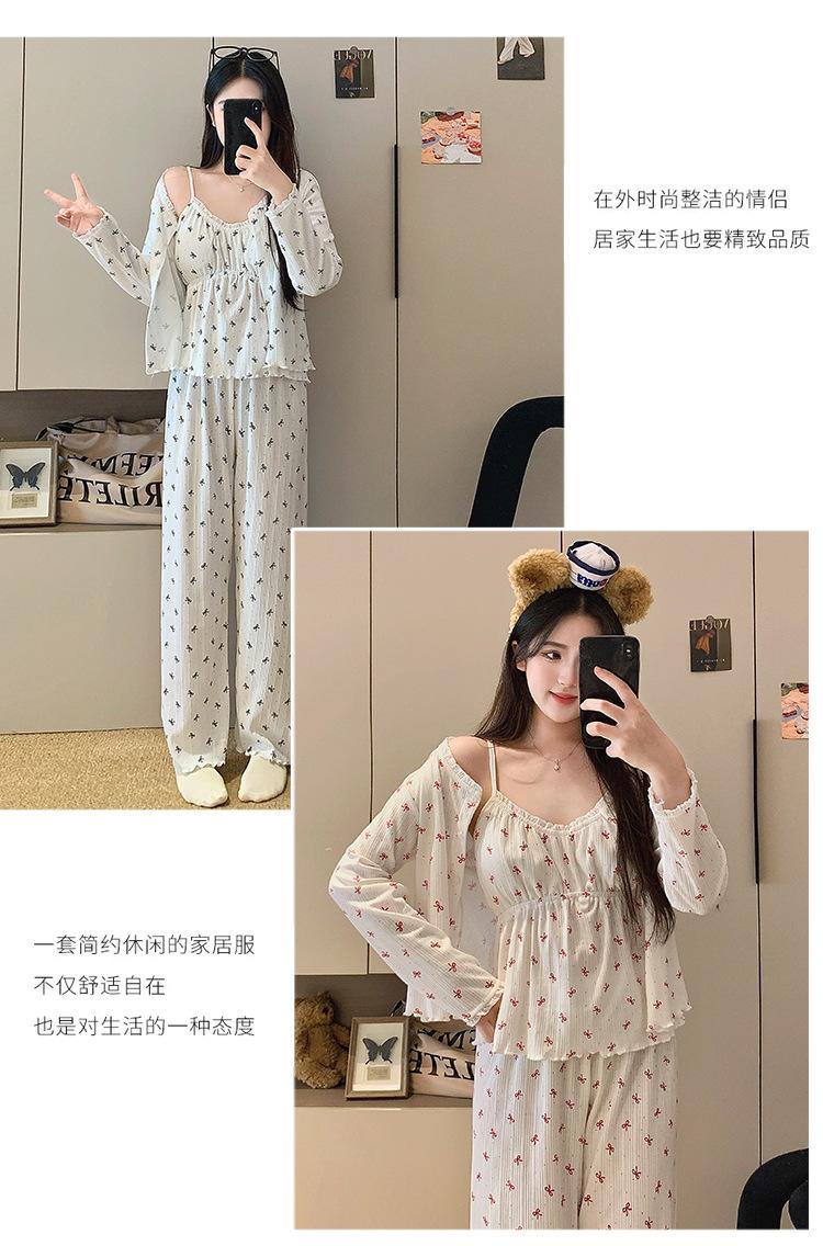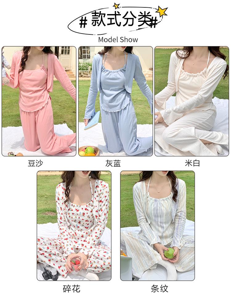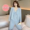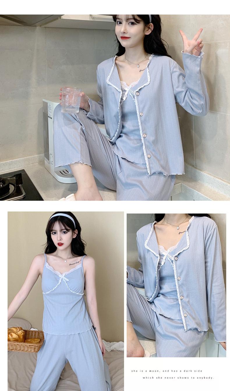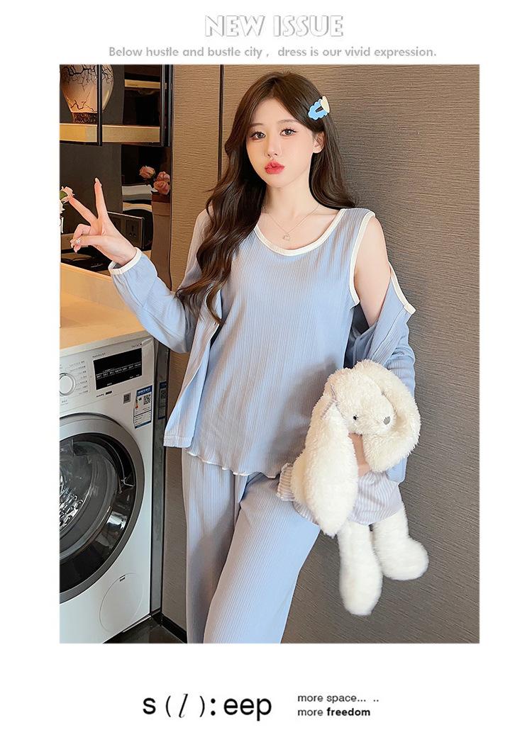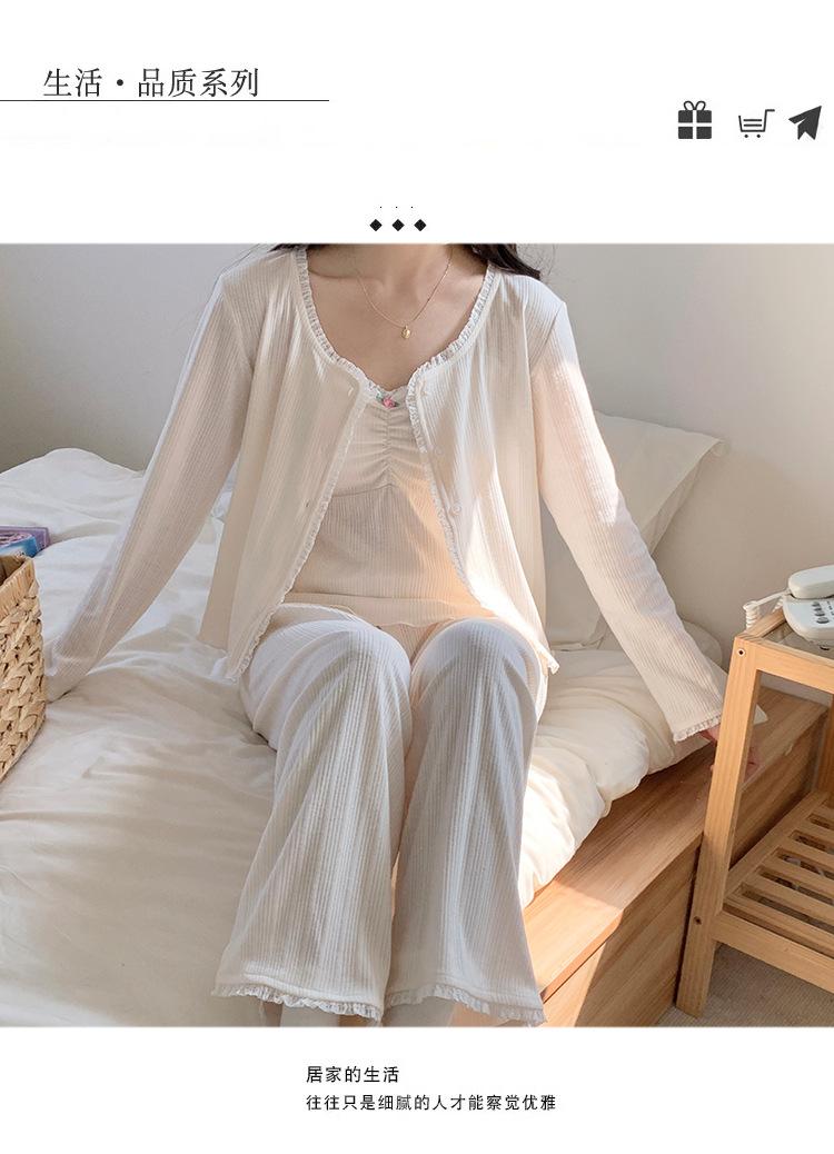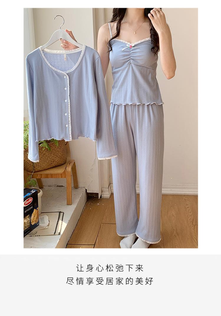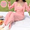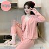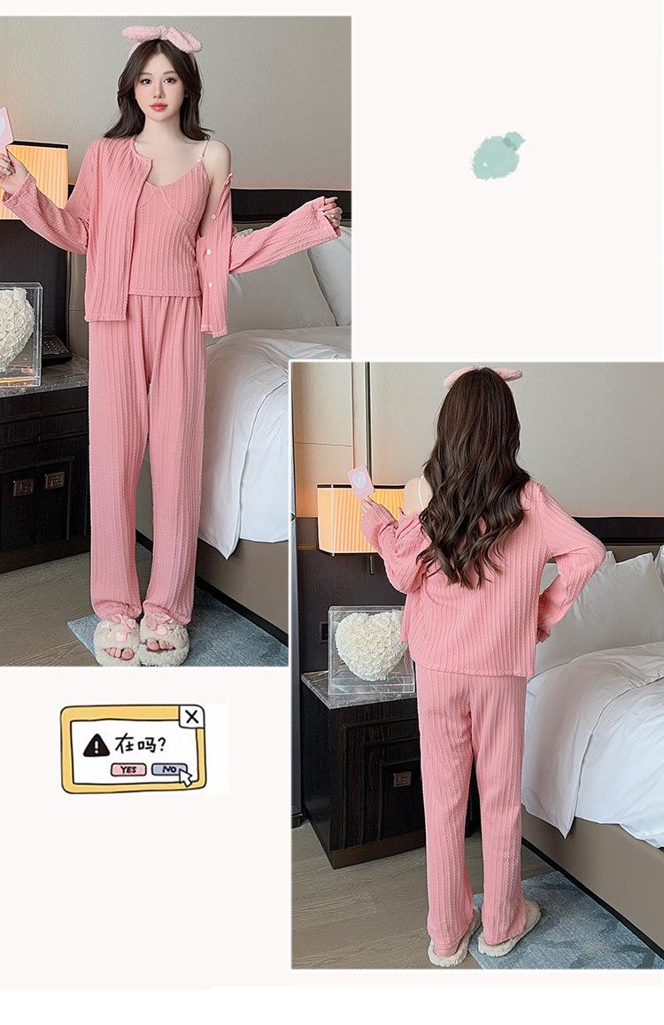 Conjunto nuevo de tres piezas para primavera y verano 2025 6535 Algodón con chaleco desmontable con almohadilla en el pecho + mangas largas + pantalones Pijama de mujer